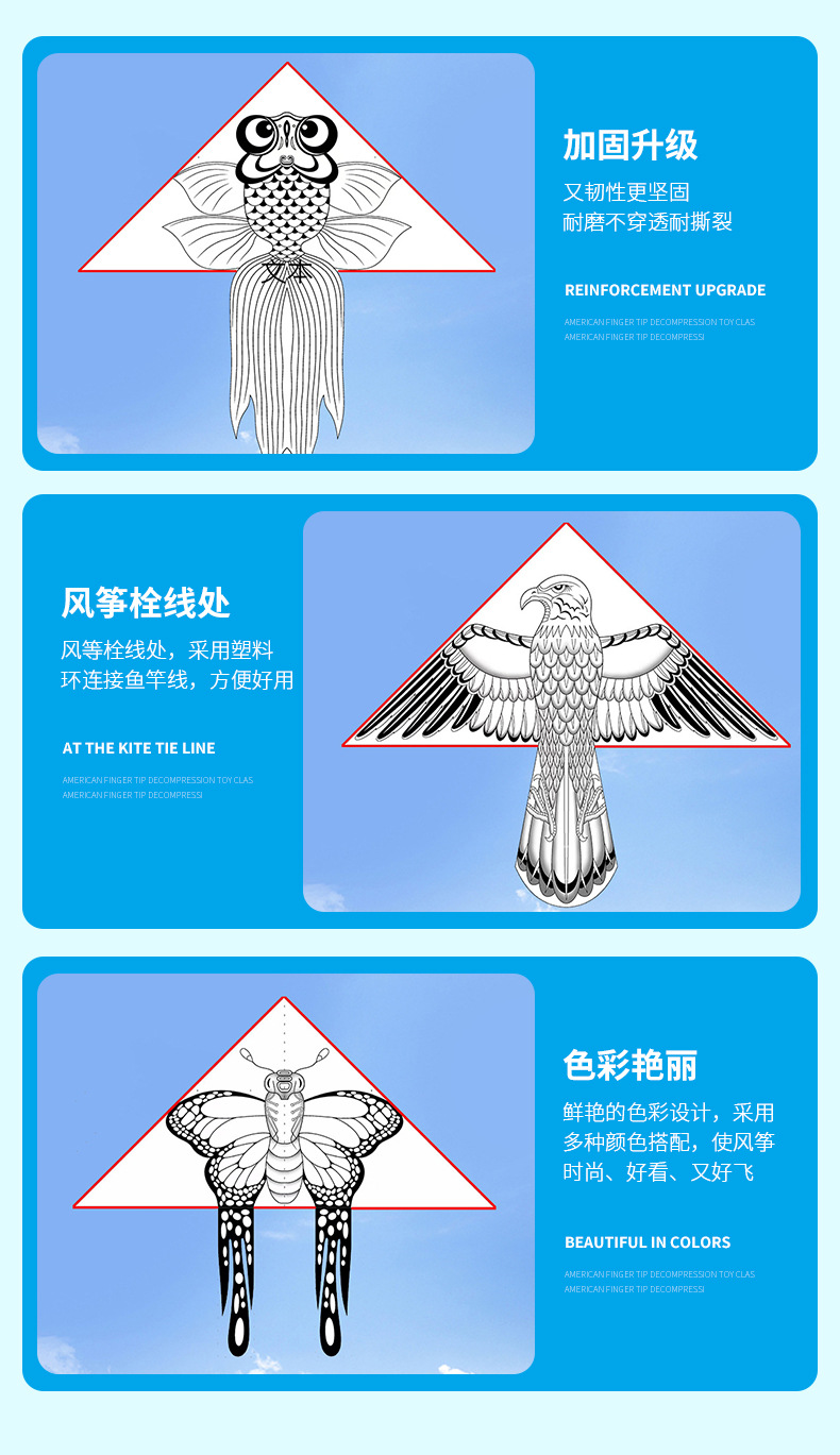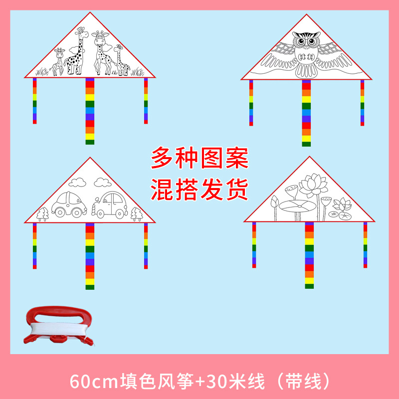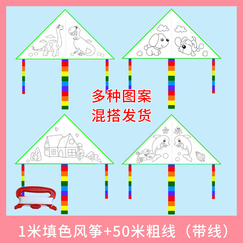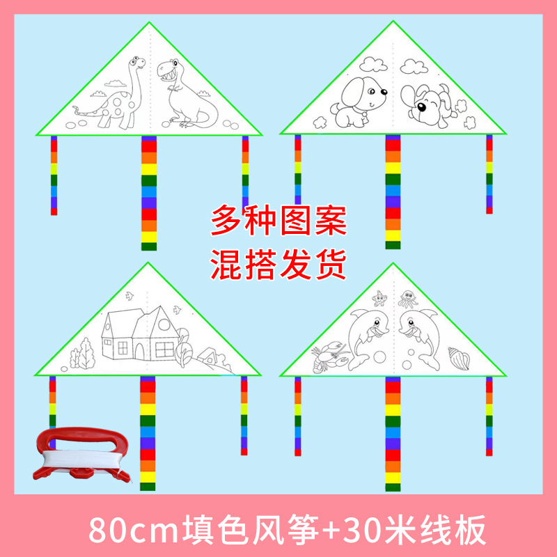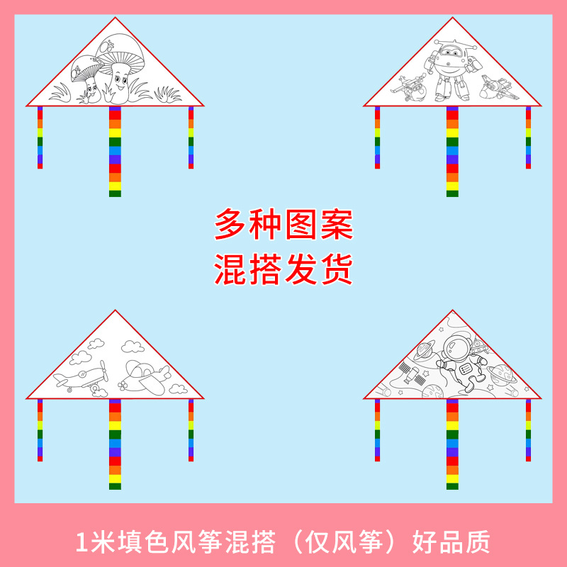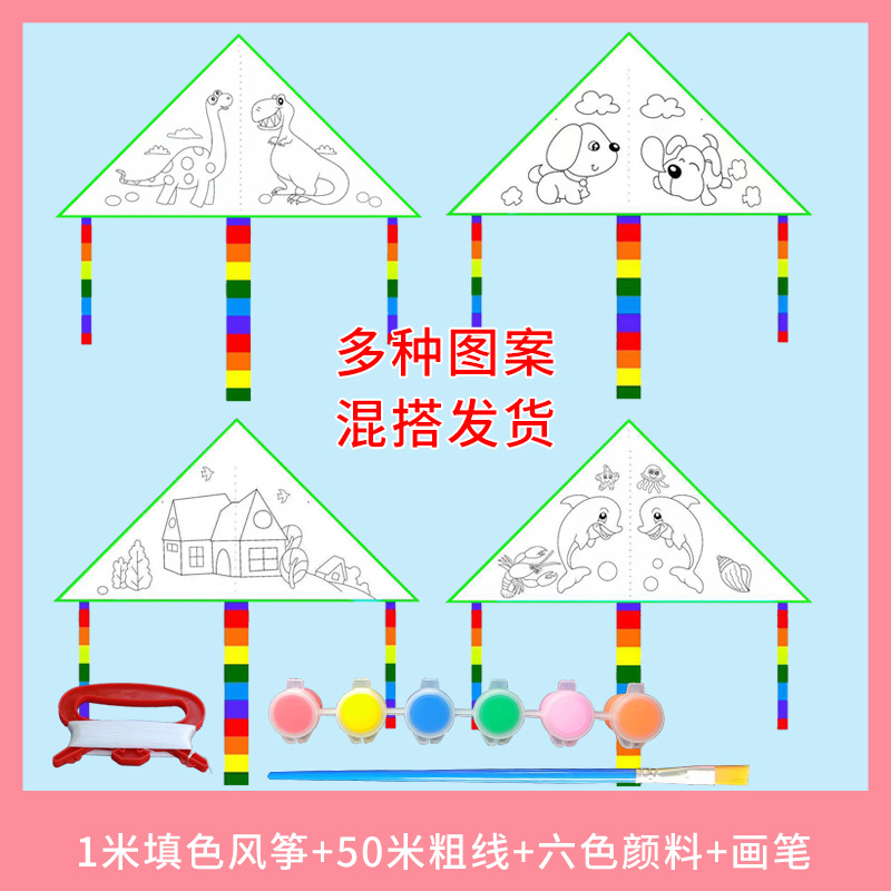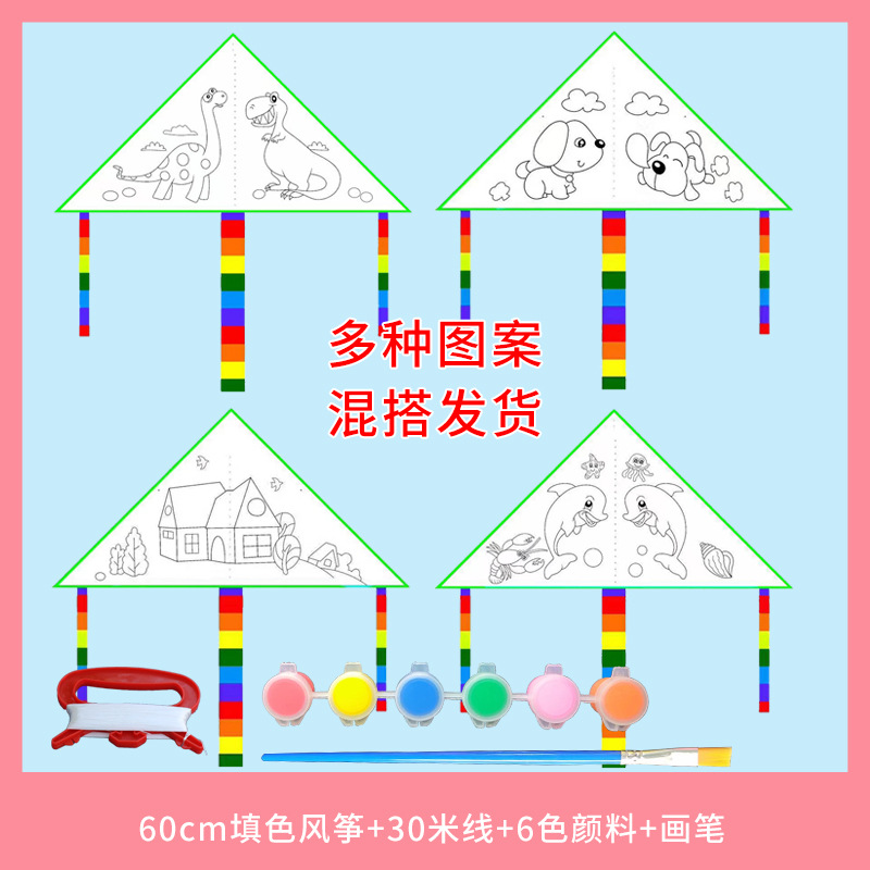 新款儿童DIY风筝描边手工涂色彩绘幼儿园填色线稿教材手绘画风筝