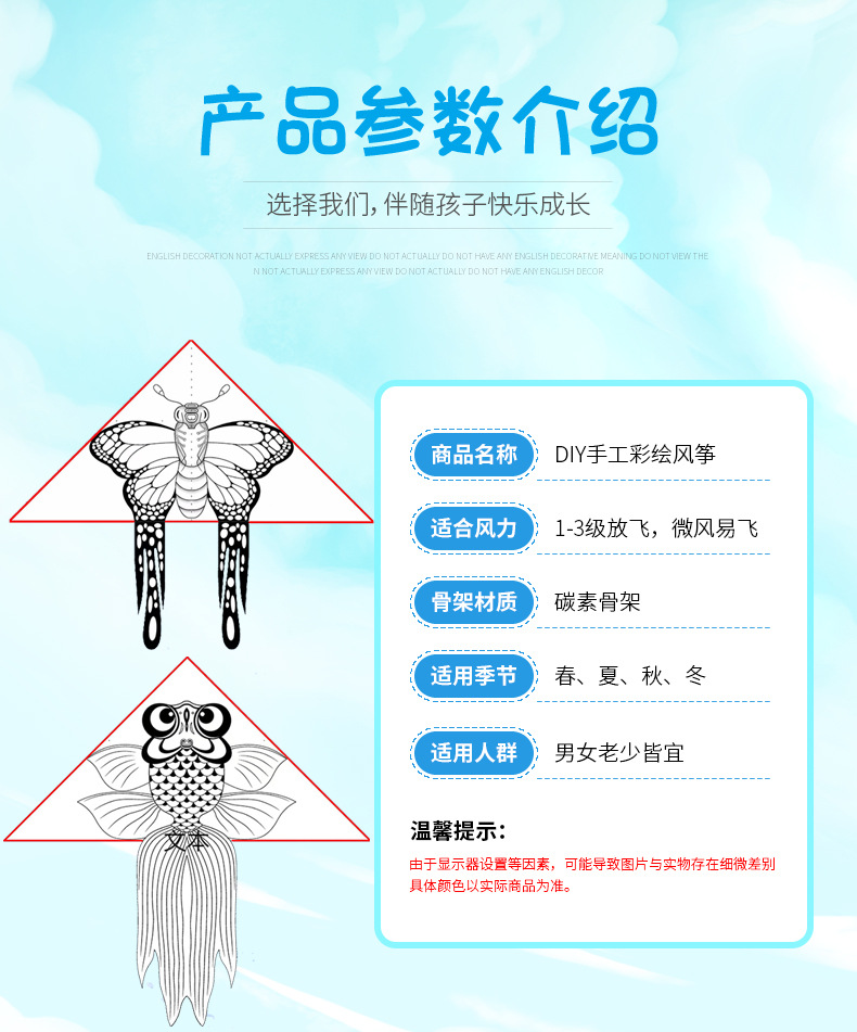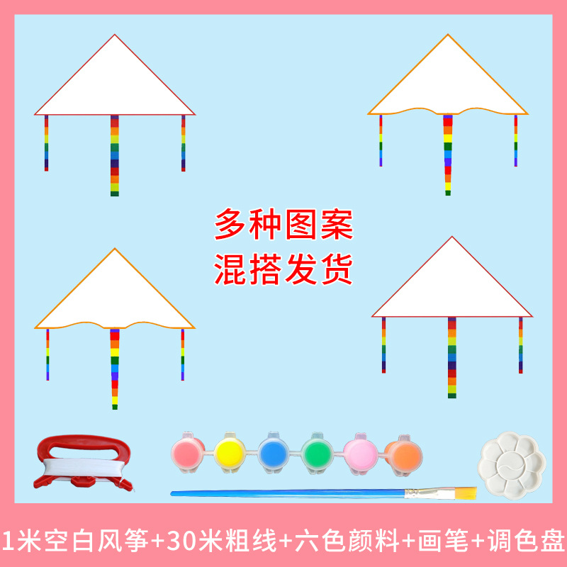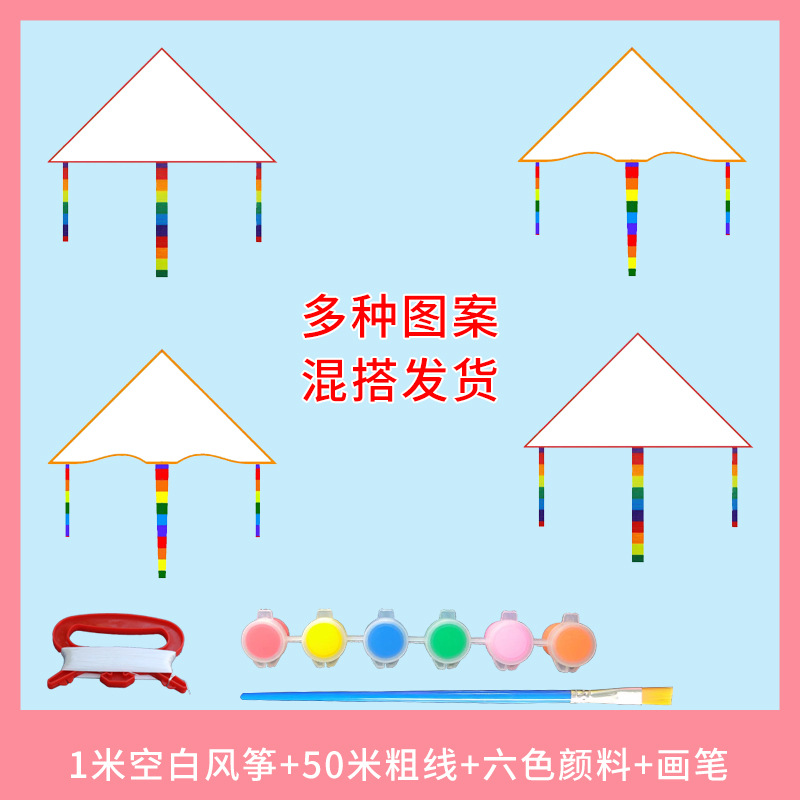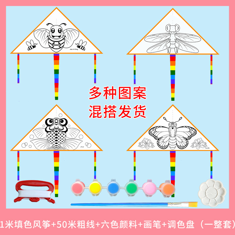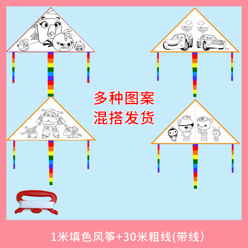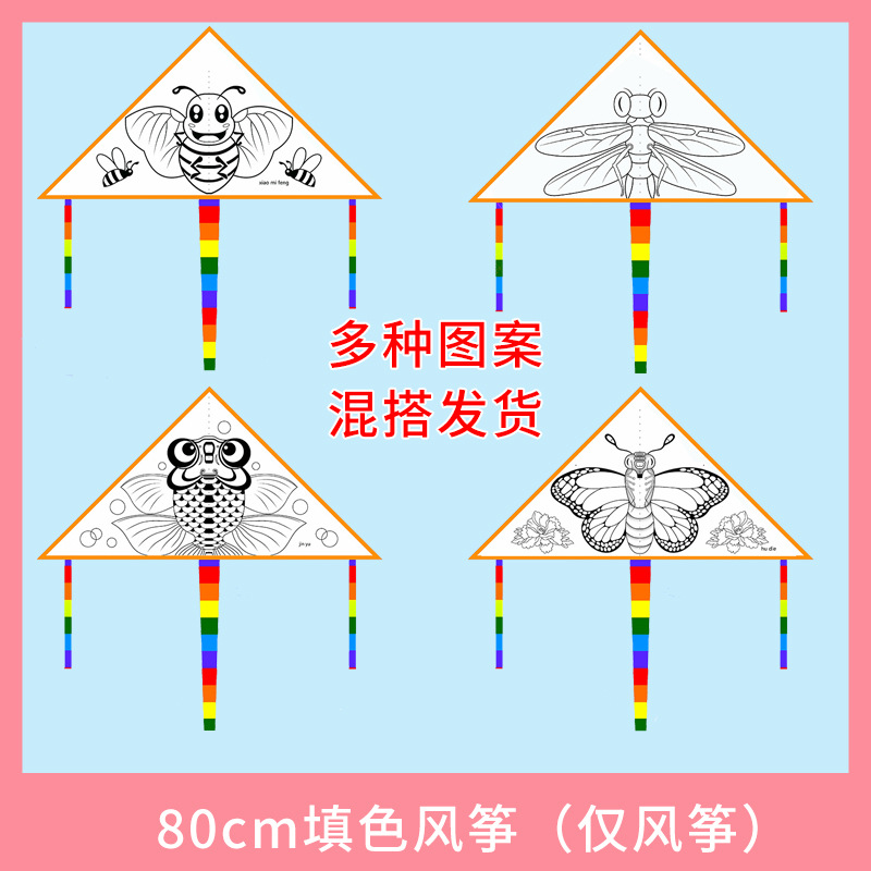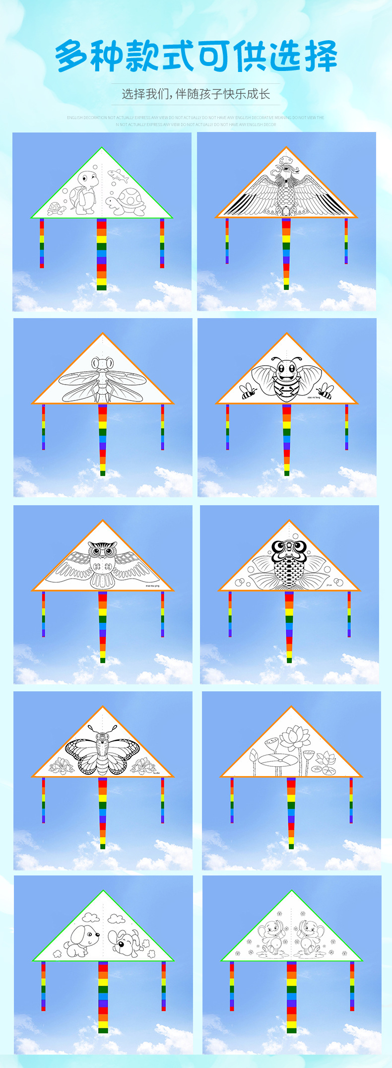 新款儿童DIY风筝描边手工涂色彩绘幼儿园填色线稿教材手绘画风筝