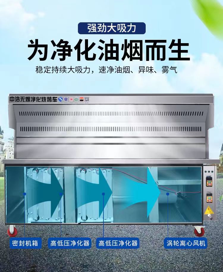 无烟净化烧烤车 厂家夜市摆摊架子移动户外木炭不锈钢商用烧烤炉
