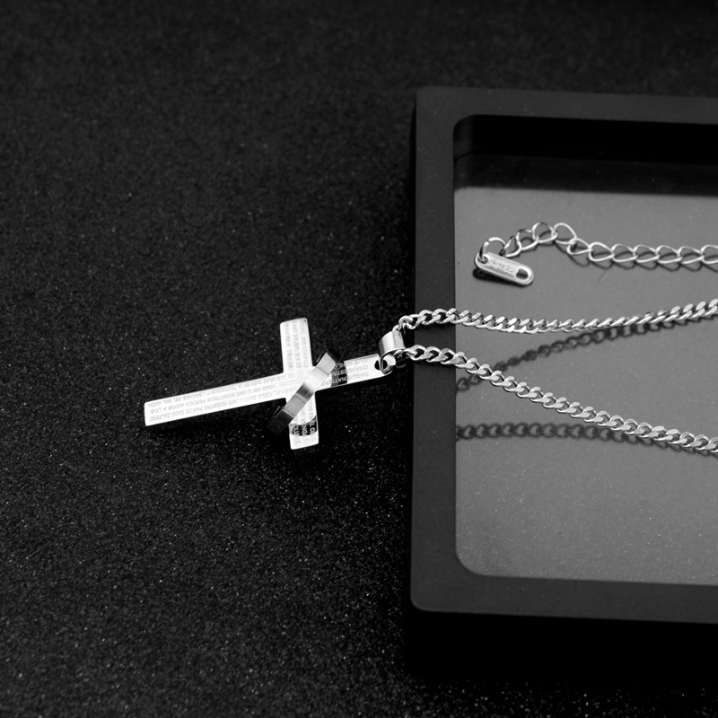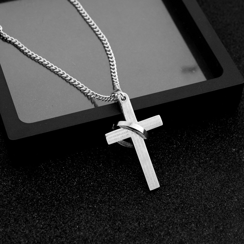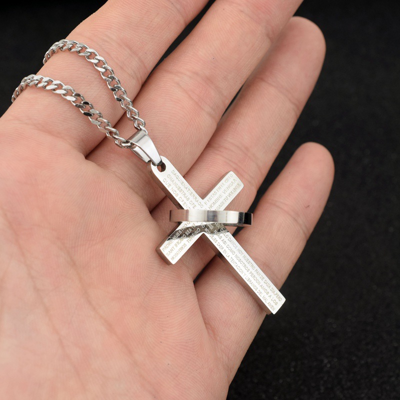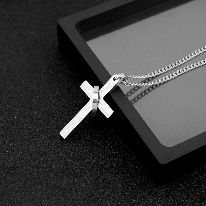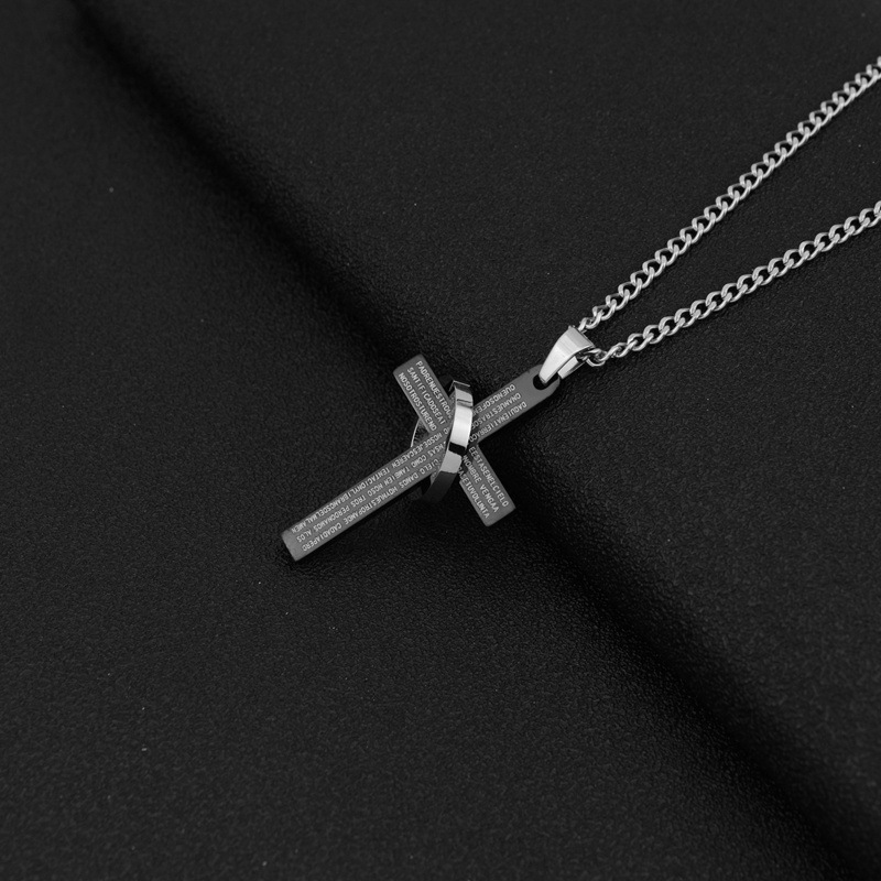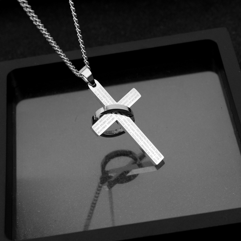 跨境货源 字母十字圆环项链 不锈钢嘻哈朋克长项链男女毛衣链