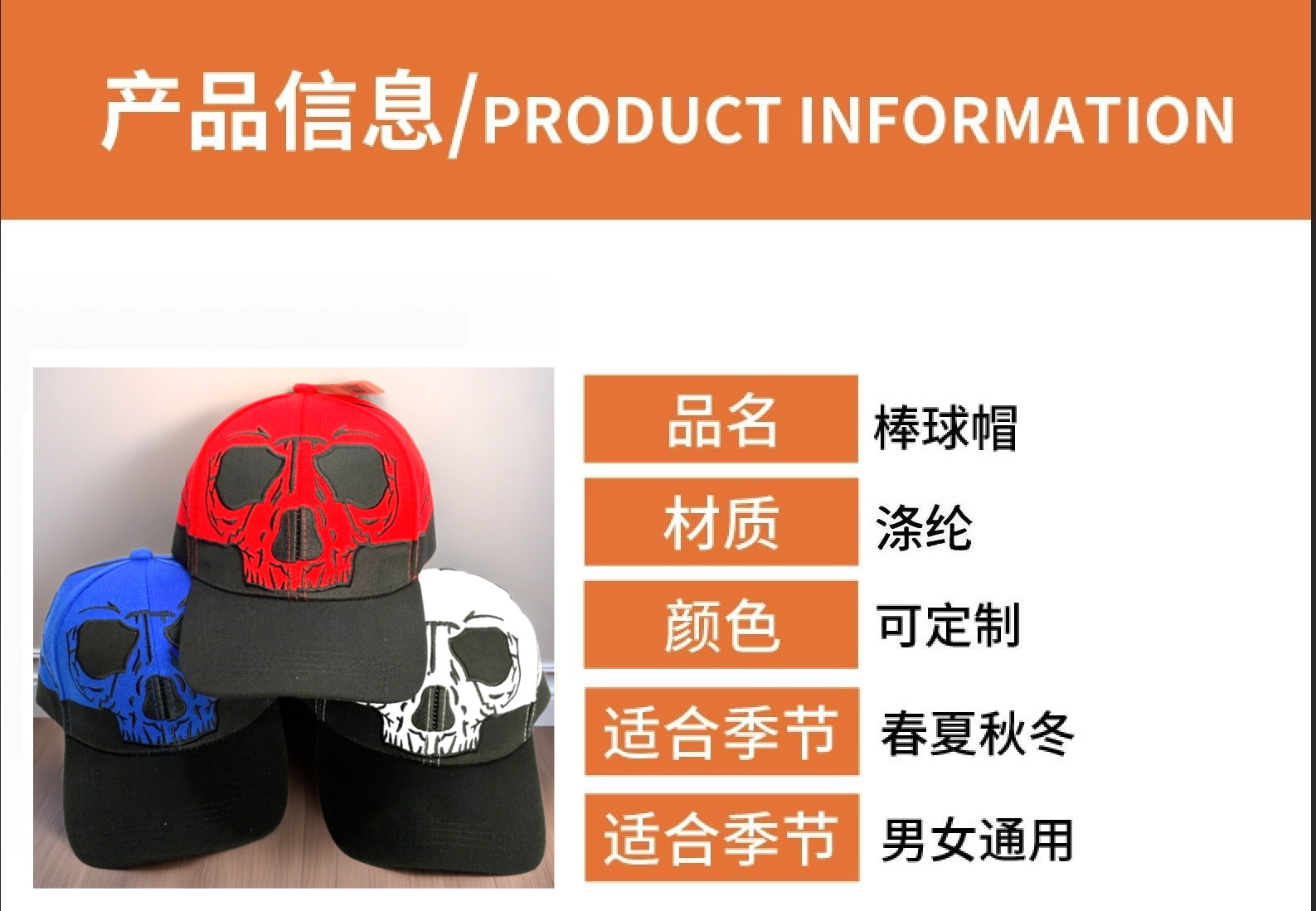 加大硬顶鸭舌帽子帽身接片刺绣棒球帽美式大头围SKULL骷髅头机车