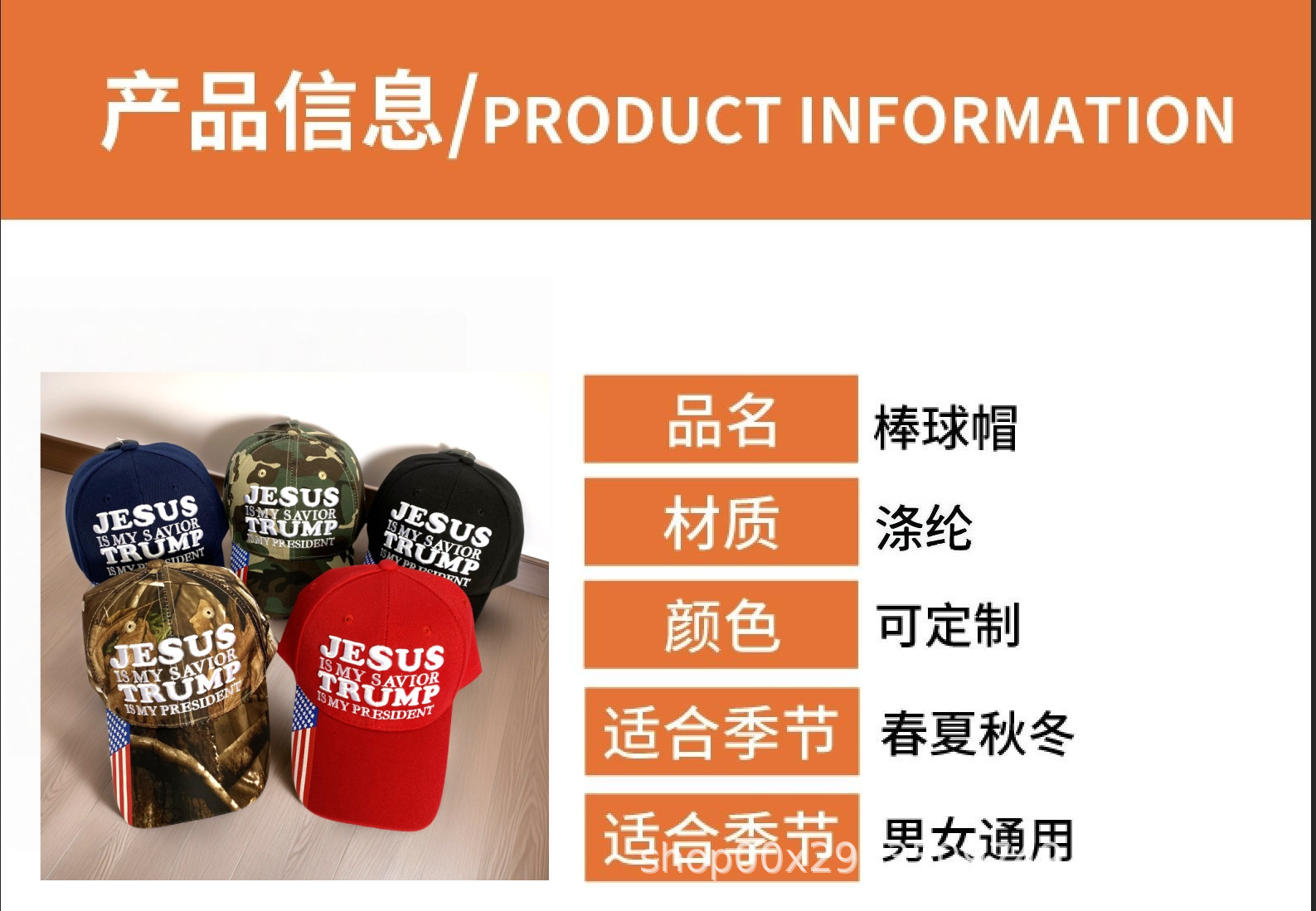 TRUMP刺绣jesus棒球帽子外贸出口广告帽活动帽美国特朗普大选帽子