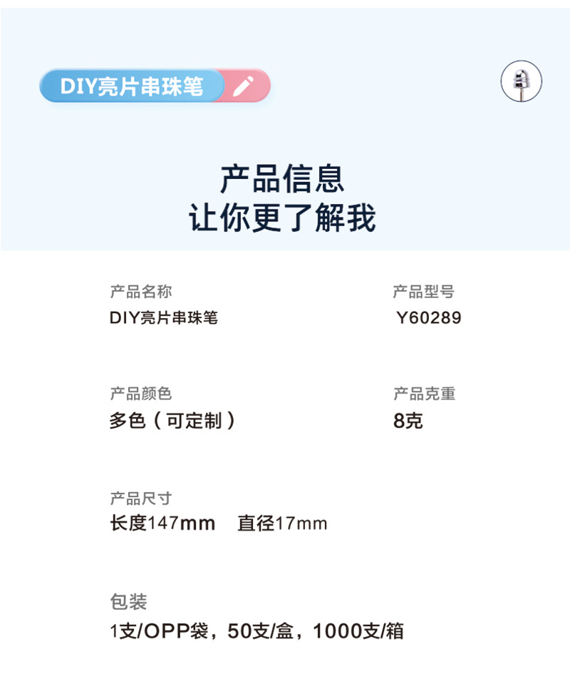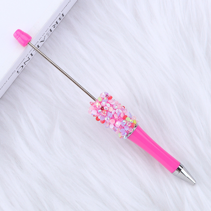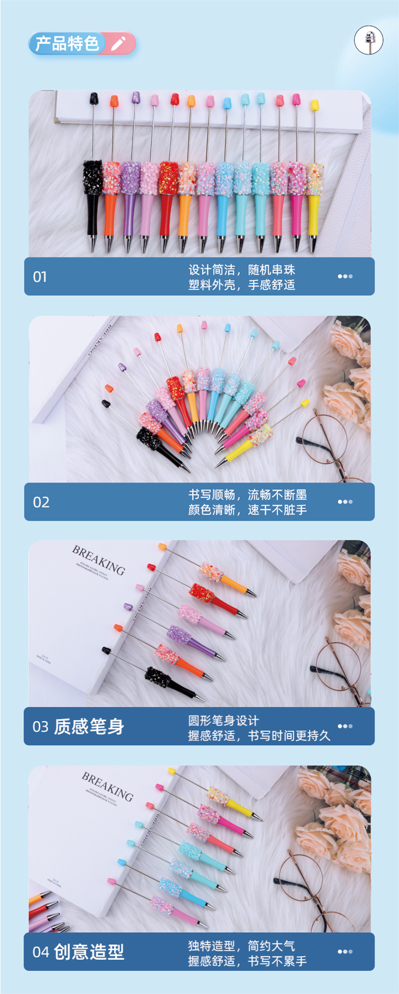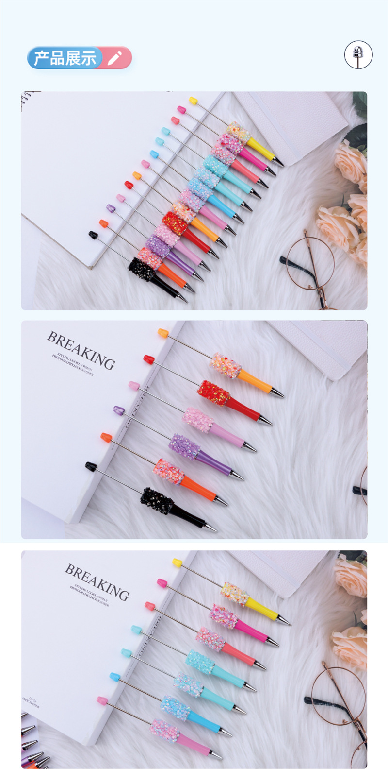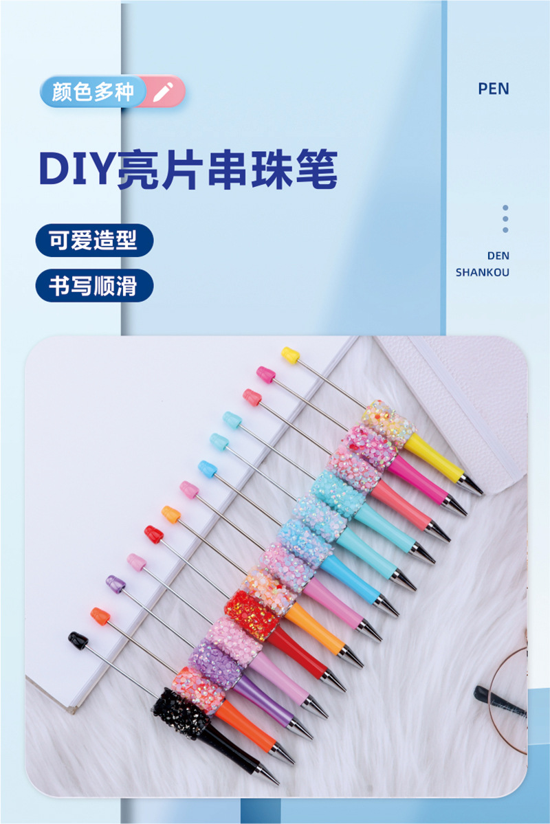 新款diy亮片串珠笔创意花瓣串珠笔多色穿珠萌粒片圆珠笔现货批发