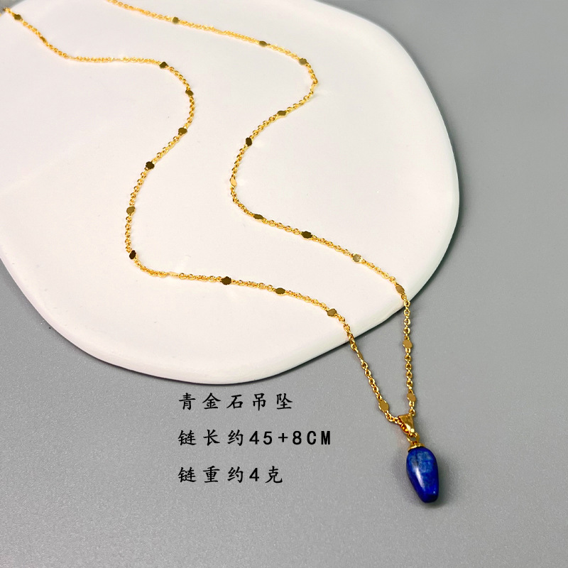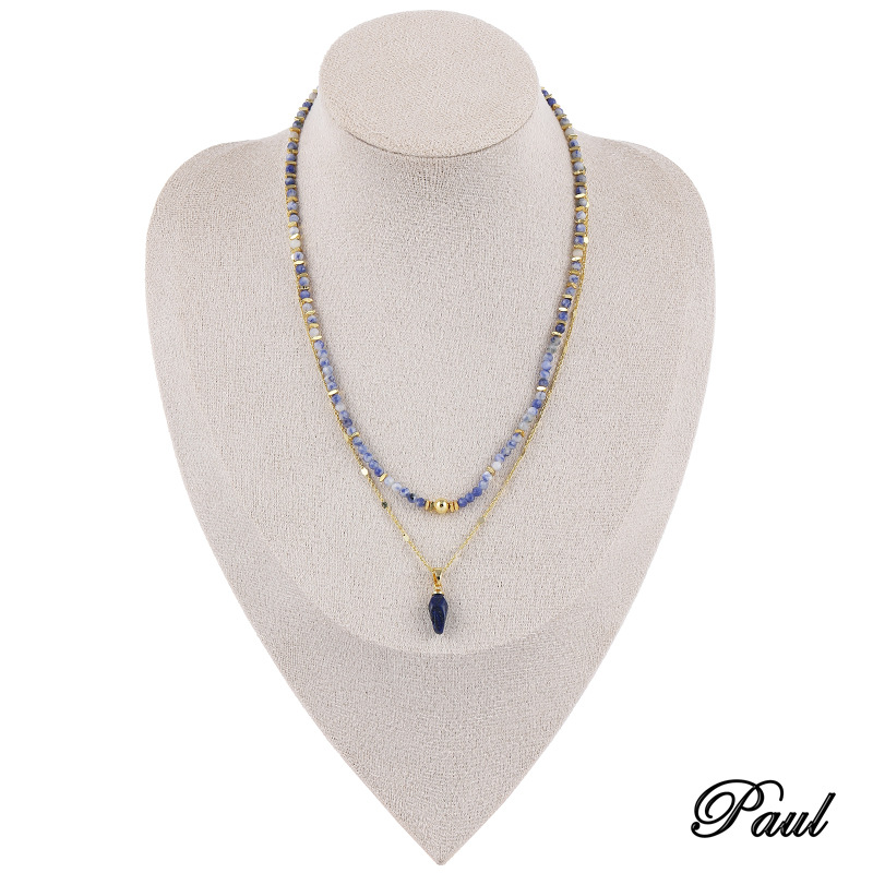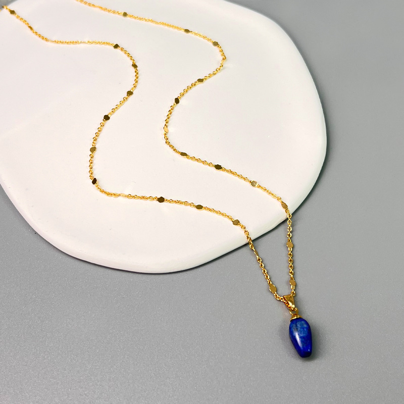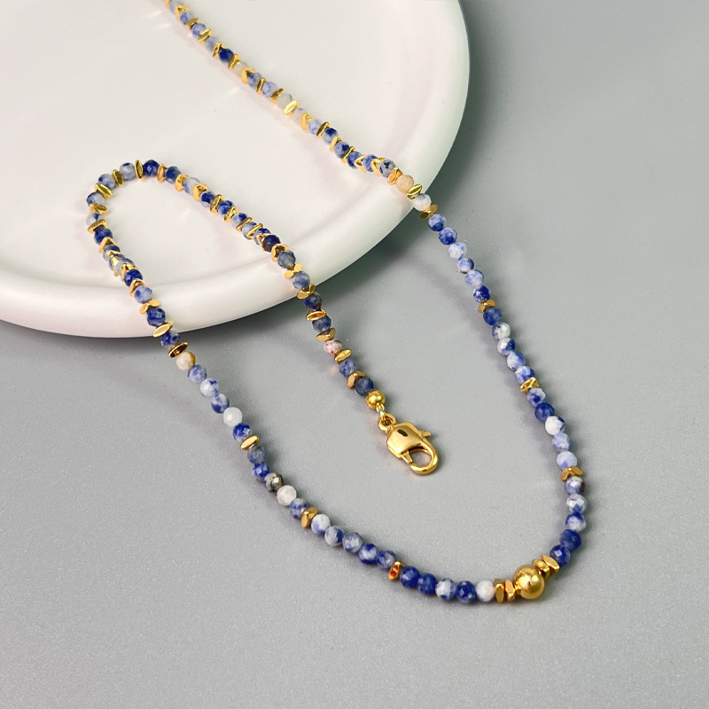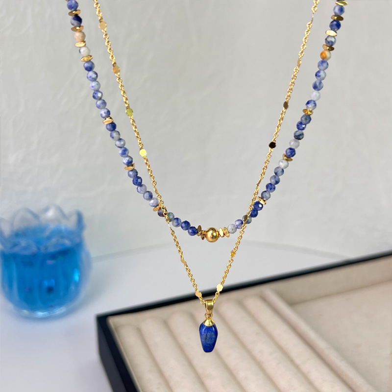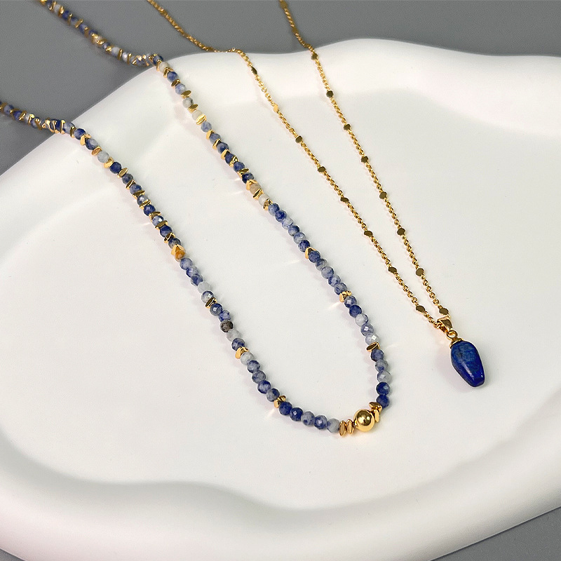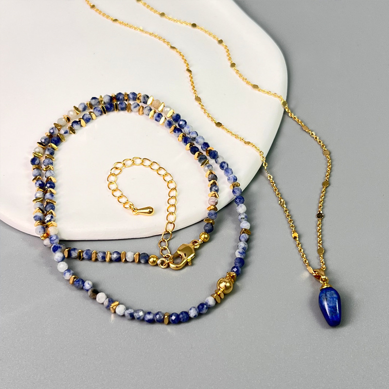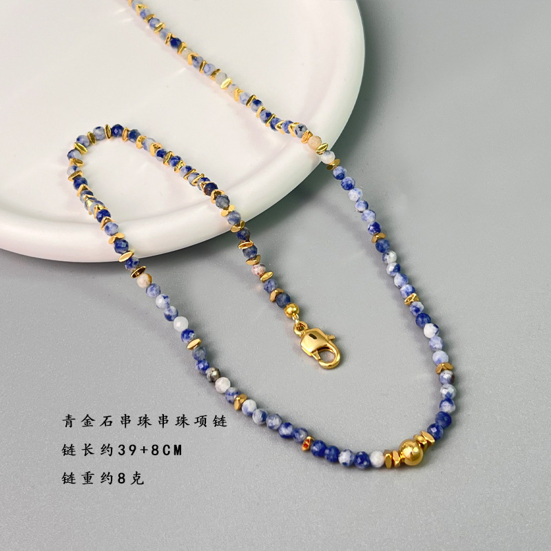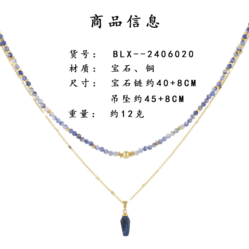 跨境新中式设计感青金石刻面彩色串珠叠戴项链时尚轻奢小众锁骨链