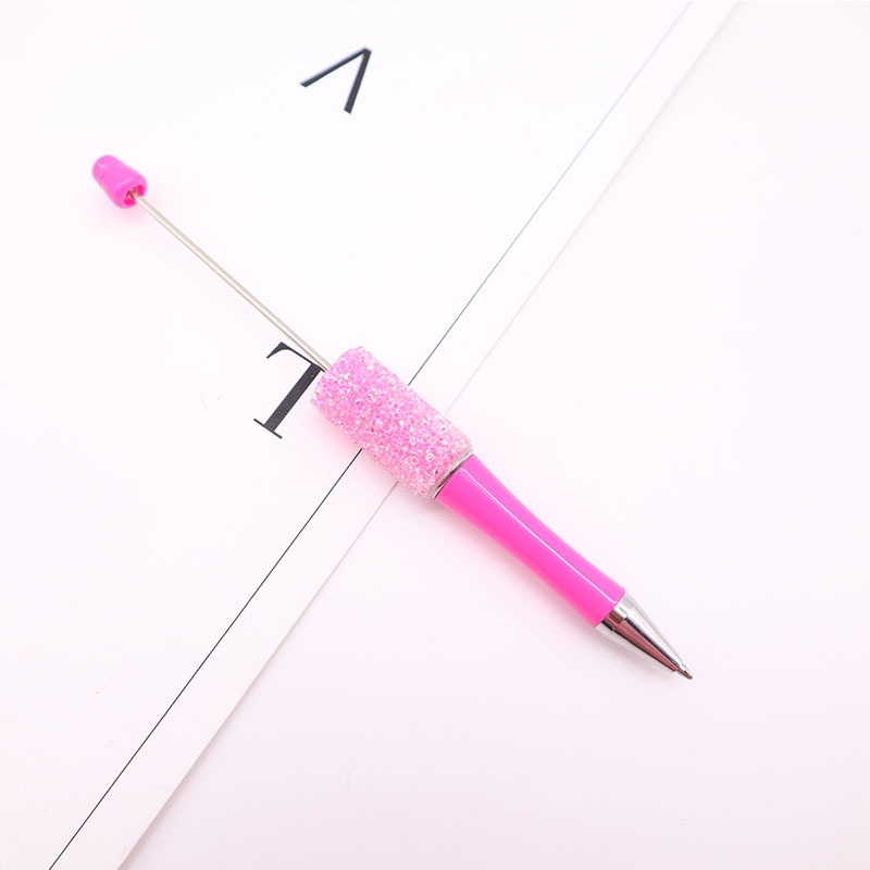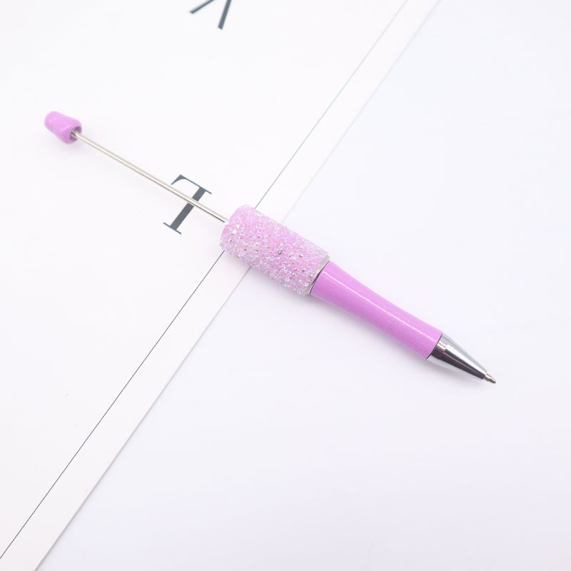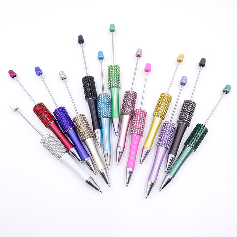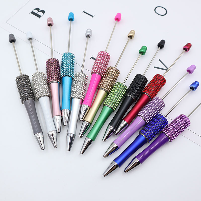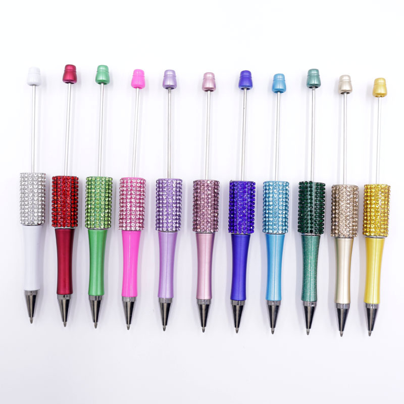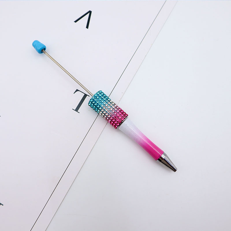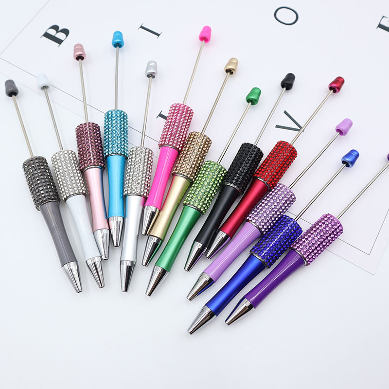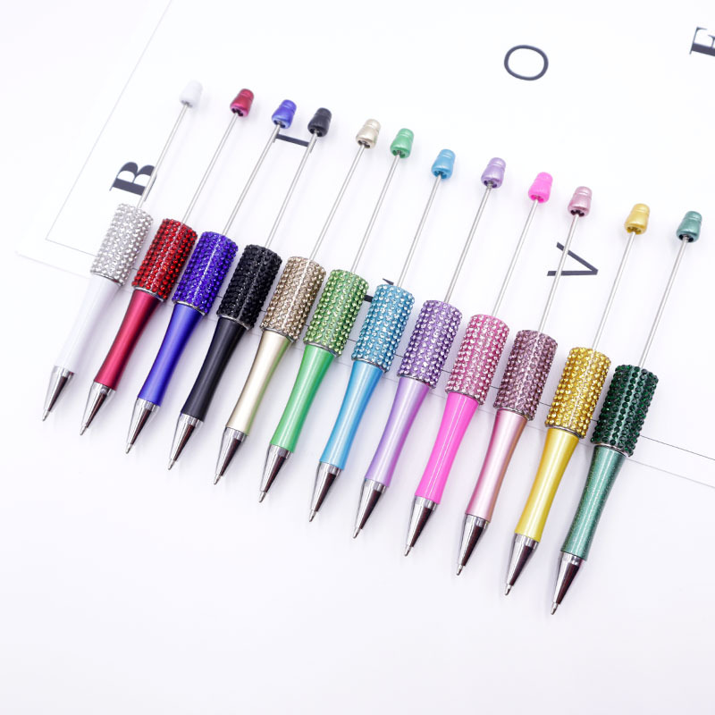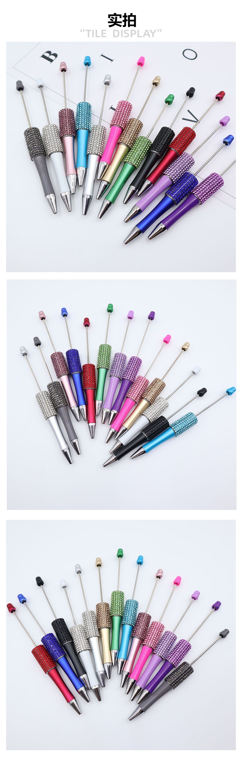 跨境直播DIY笔镶钻串珠笔 现货高颜值潮流彩色水晶钻石旋转圆珠笔