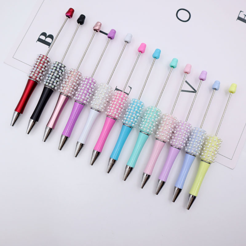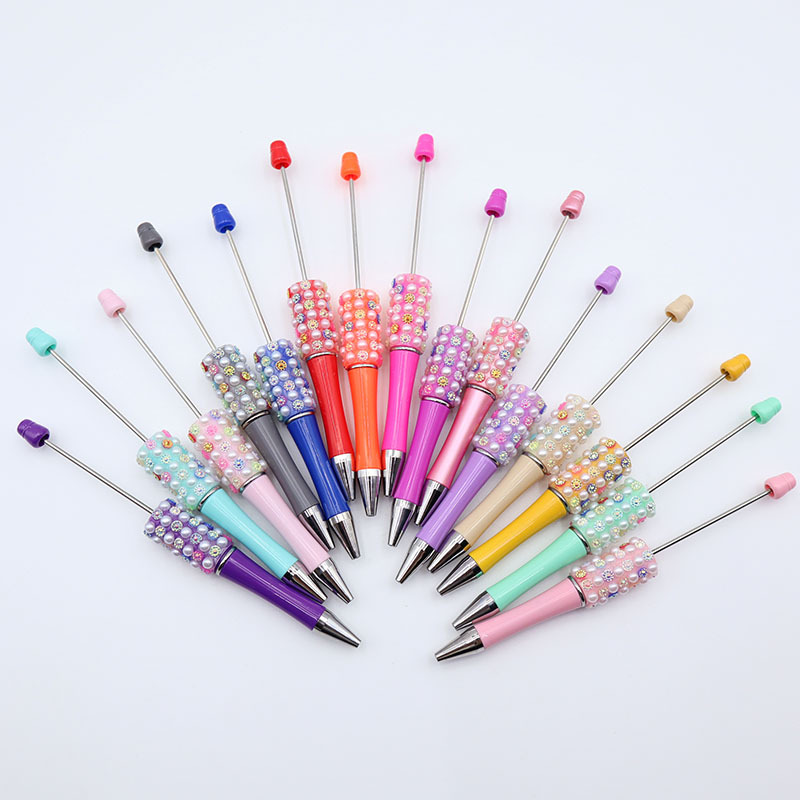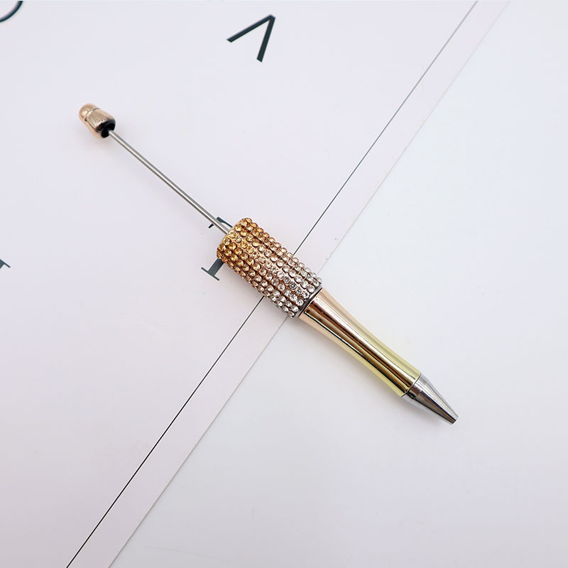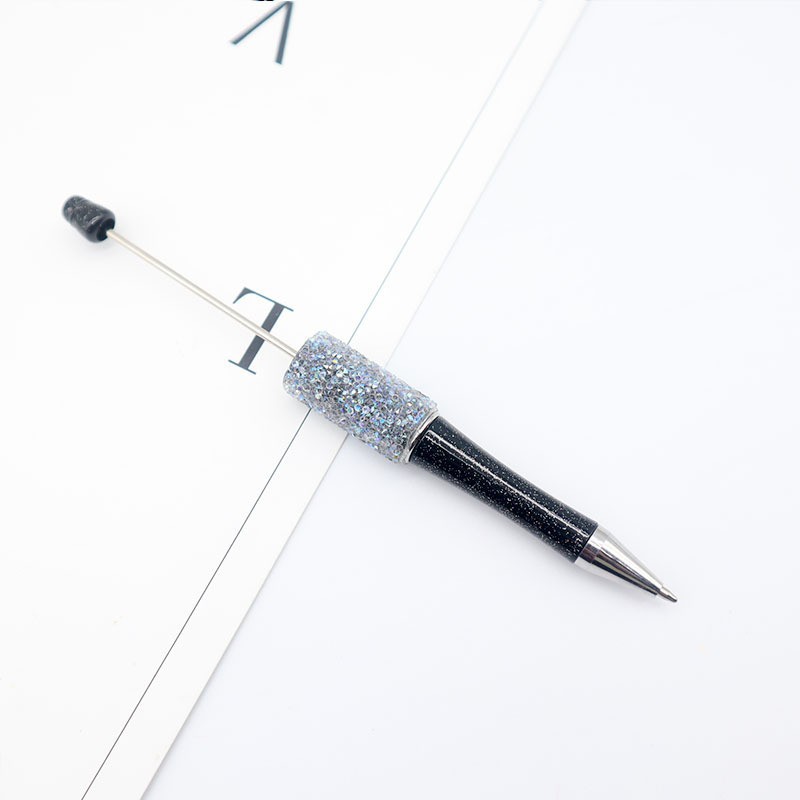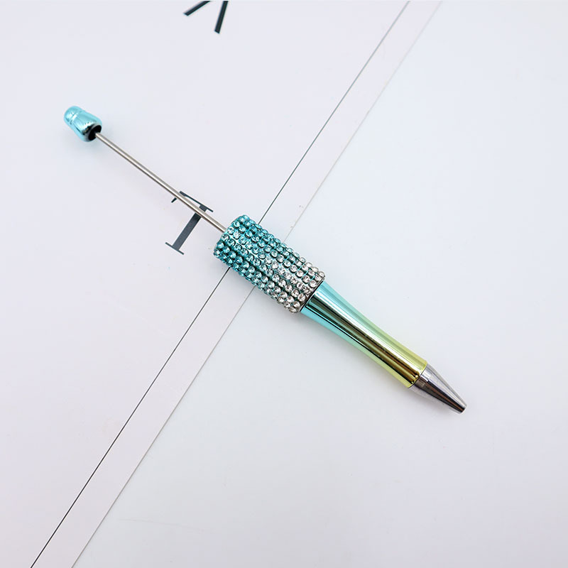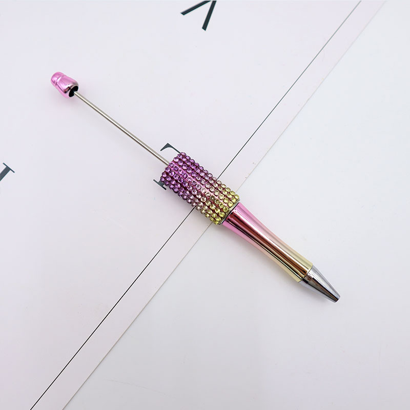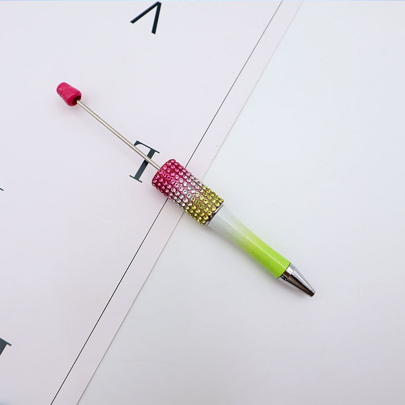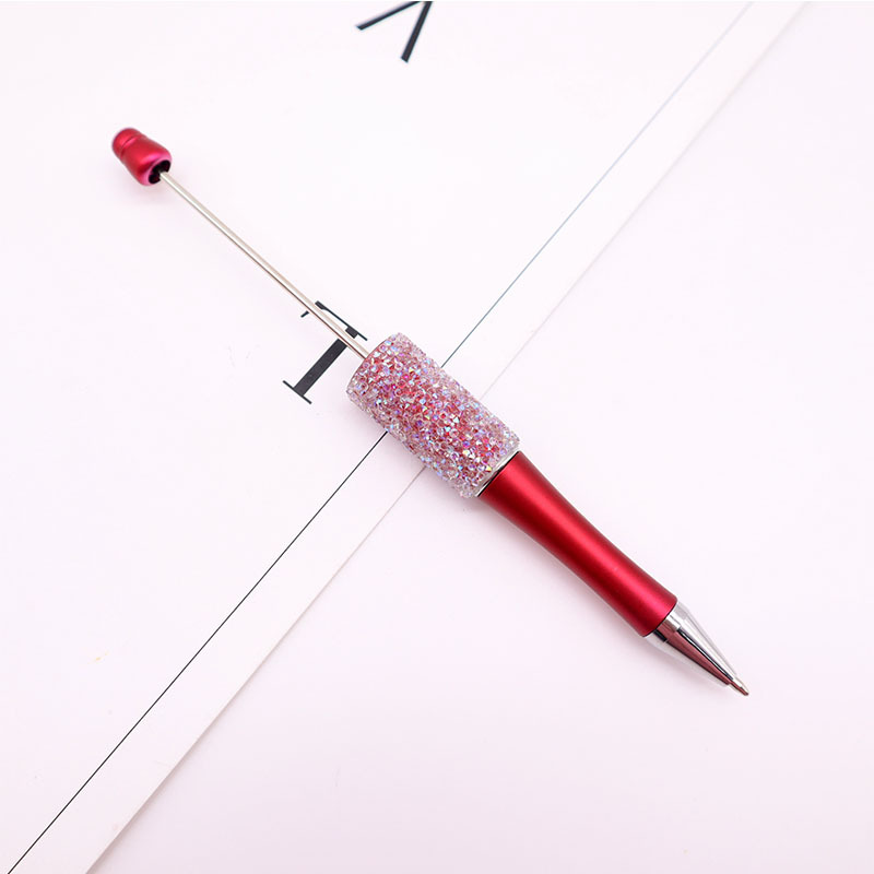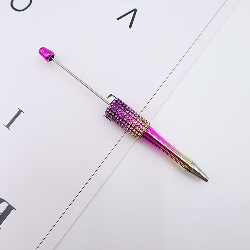 跨境直播DIY笔镶钻串珠笔 现货高颜值潮流彩色水晶钻石旋转圆珠笔