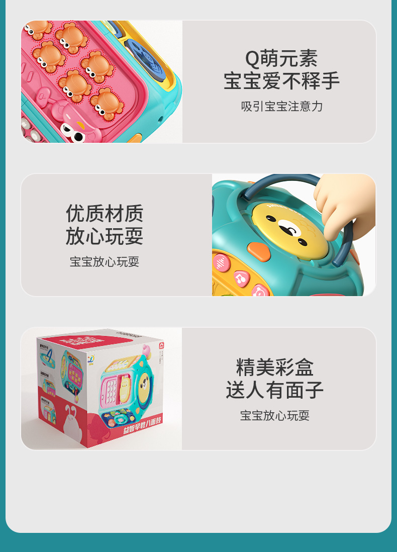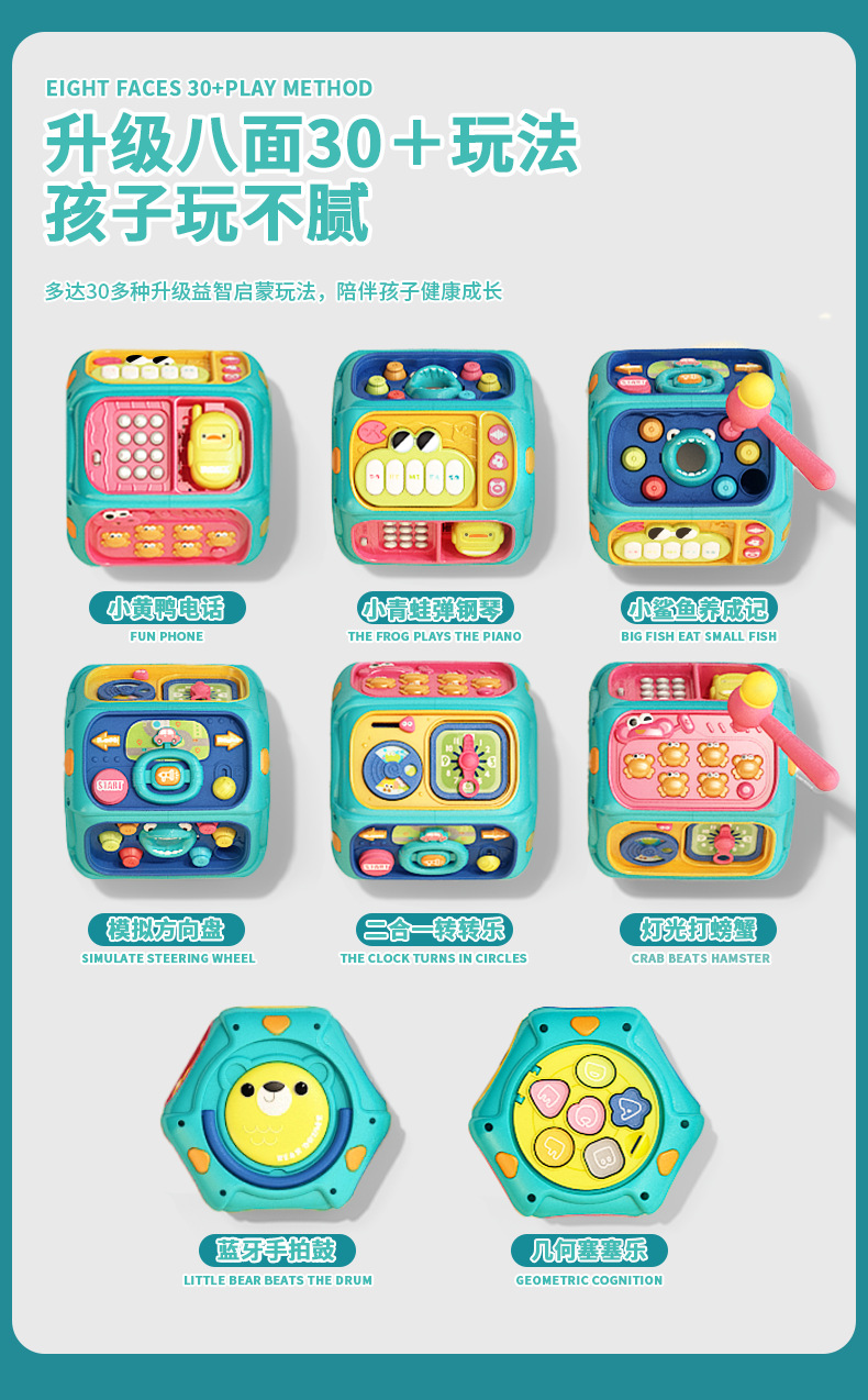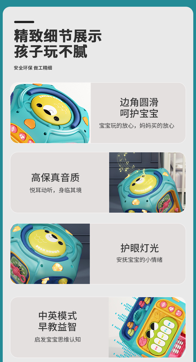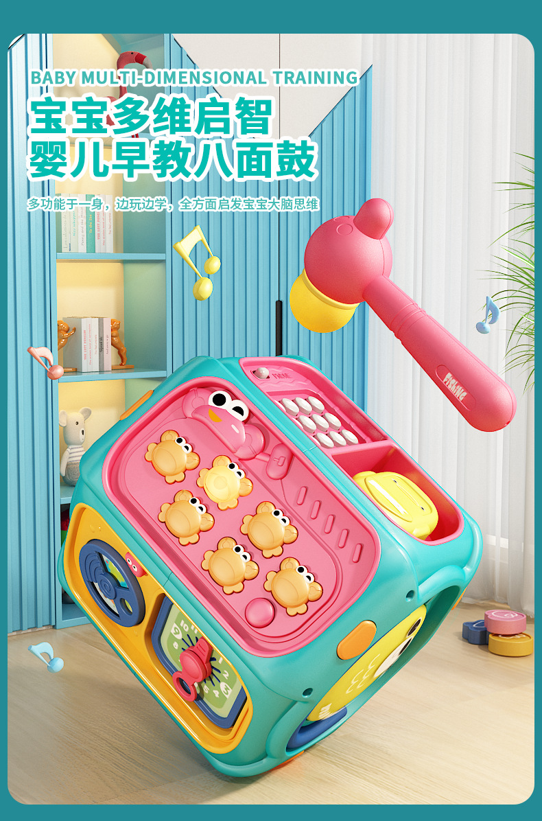 婴儿手拍八面拍拍鼓儿童0-1一2岁6-12个月宝宝益智玩具音乐六面体