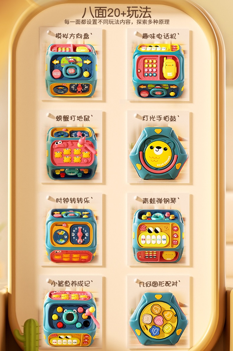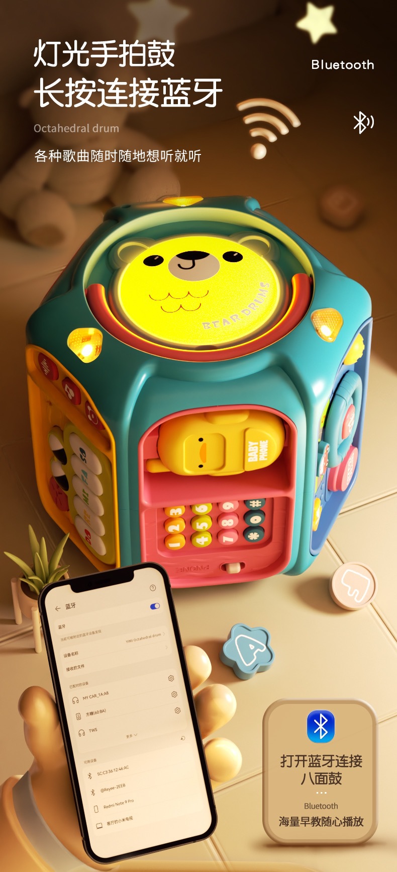 婴儿手拍八面拍拍鼓儿童0-1一2岁6-12个月宝宝益智早教玩具六面鼓