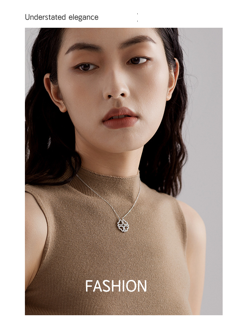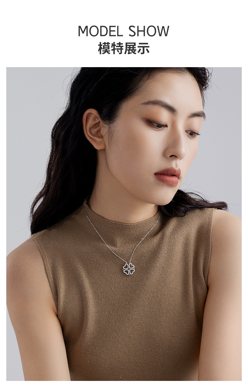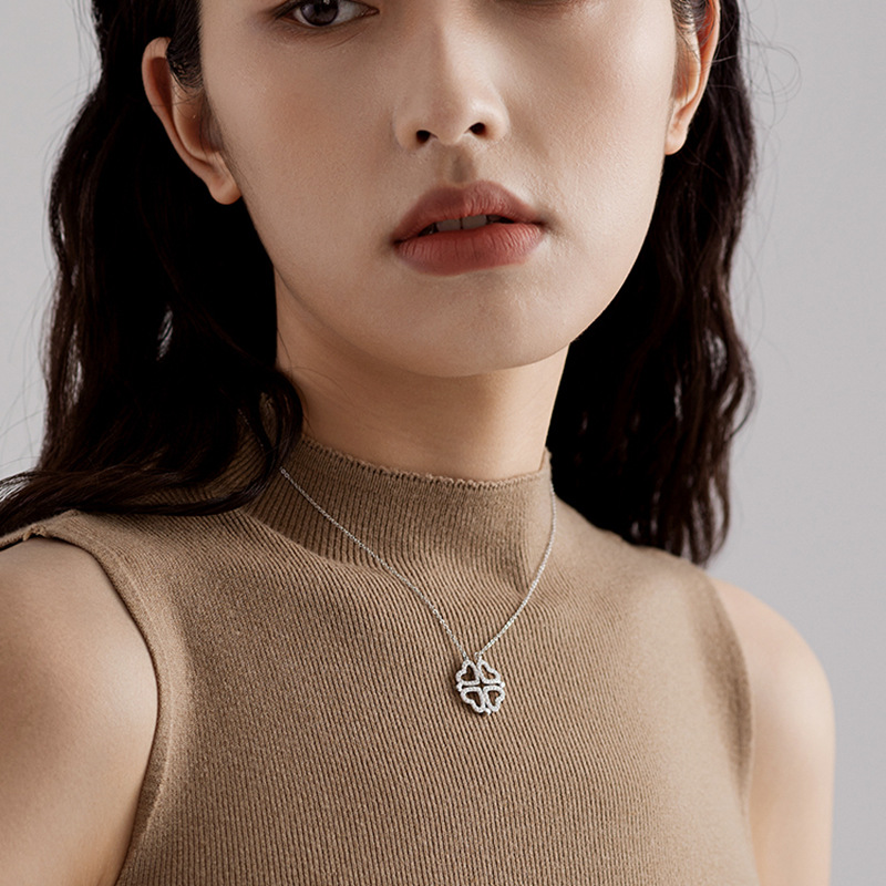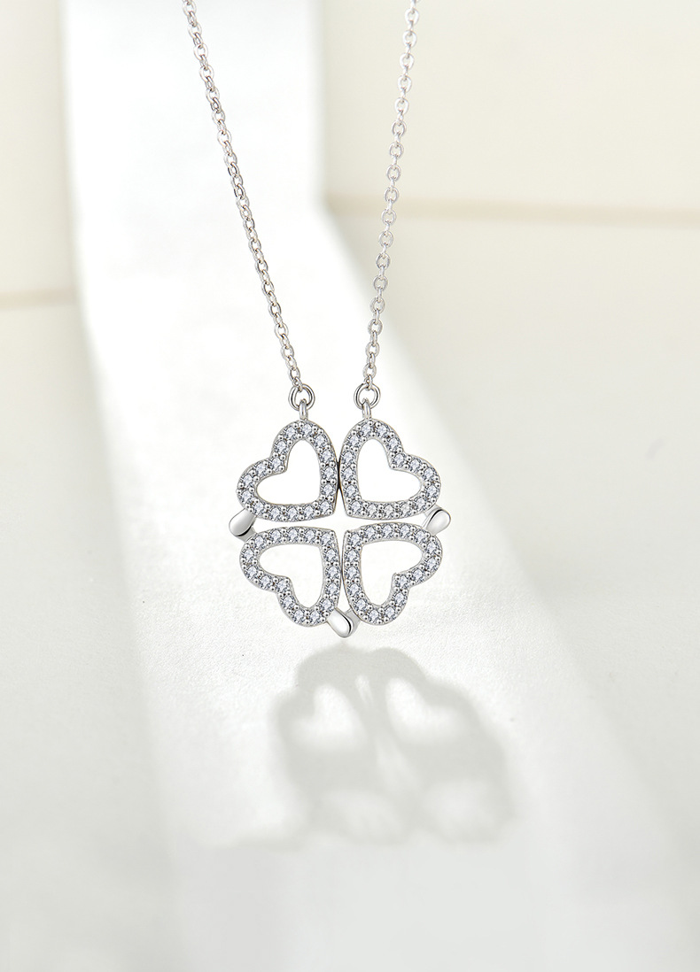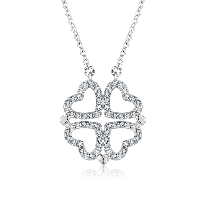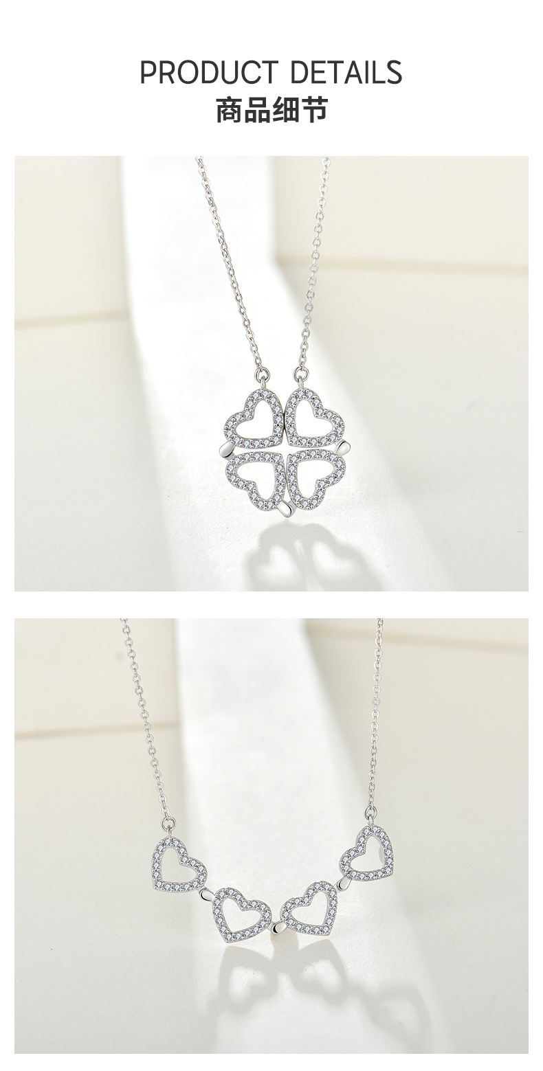 两戴爱心形四叶草项链女s925纯银外贸跨境热采批发首饰银饰品加工