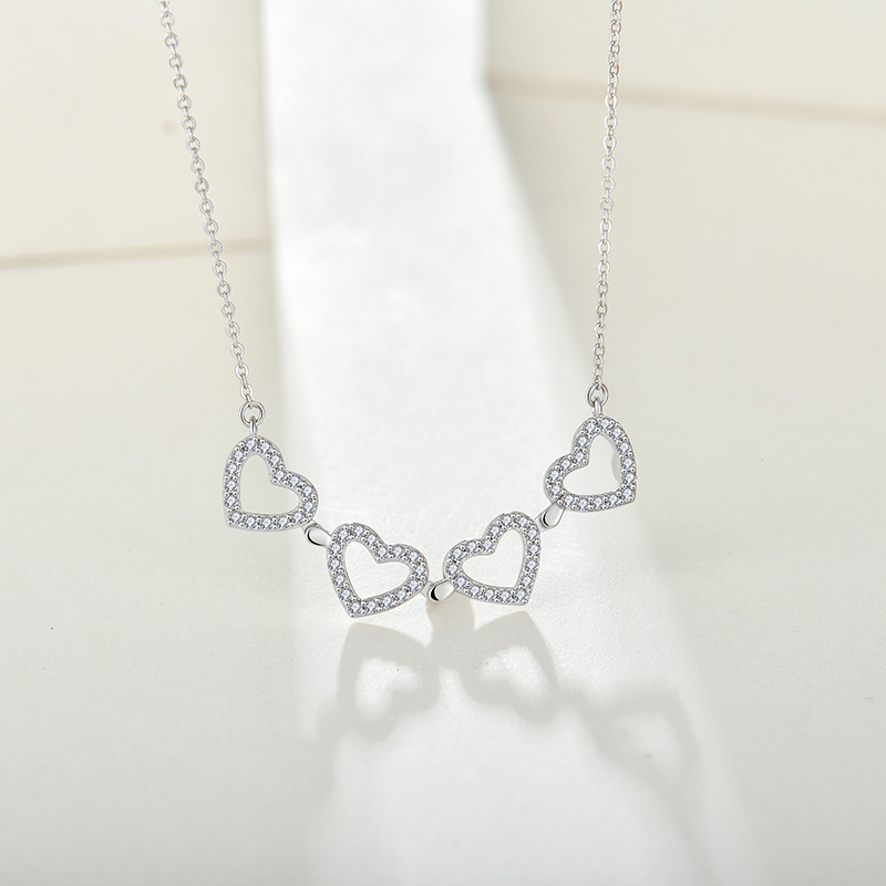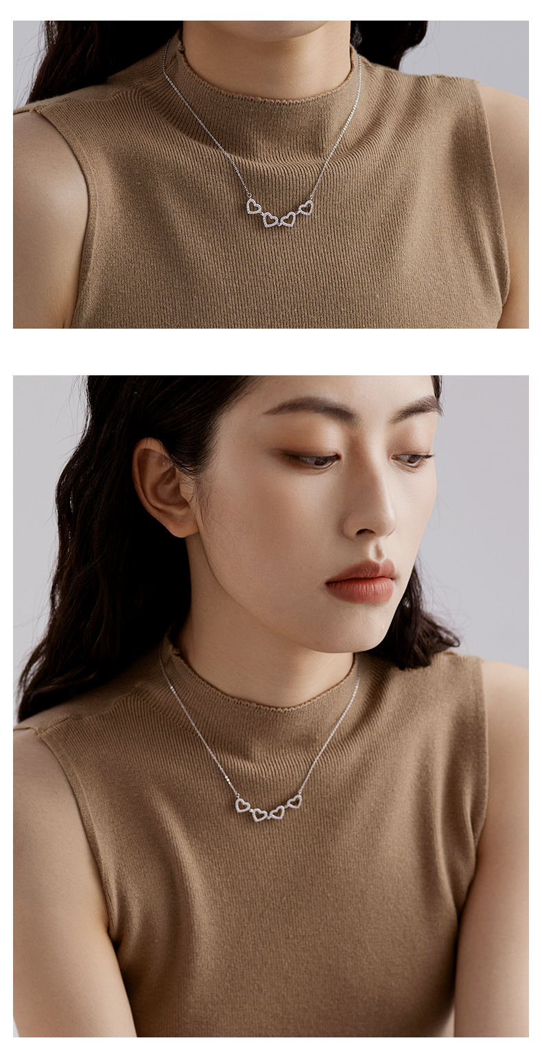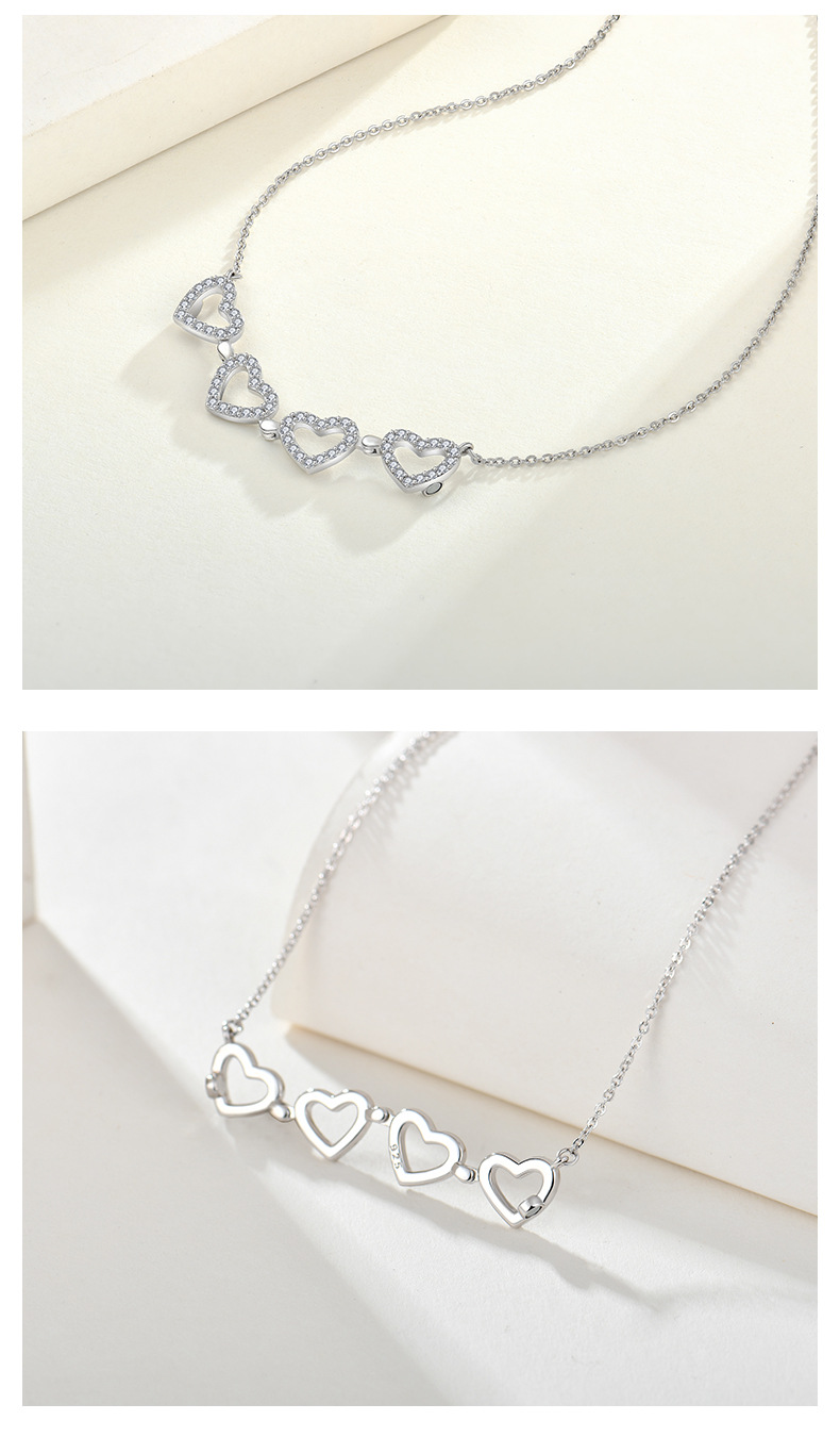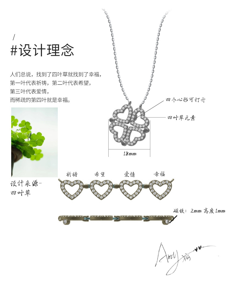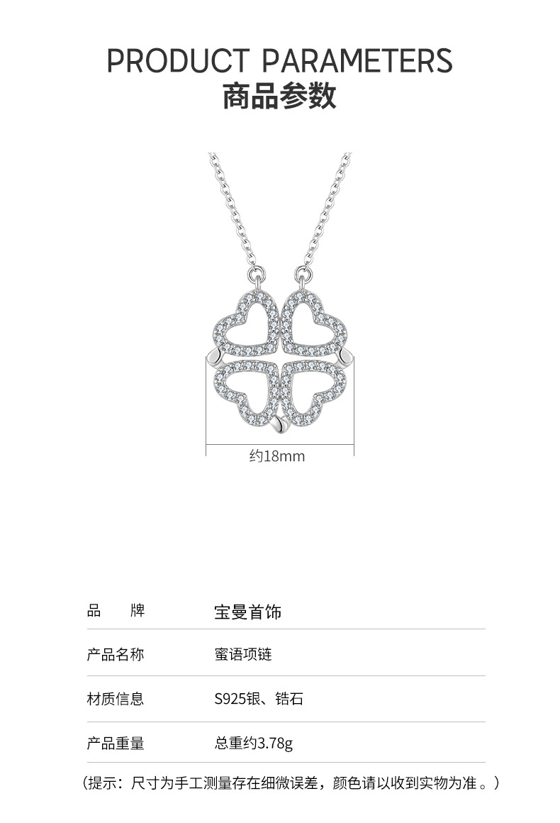 两戴爱心形四叶草项链女s925纯银外贸跨境热采批发首饰银饰品加工