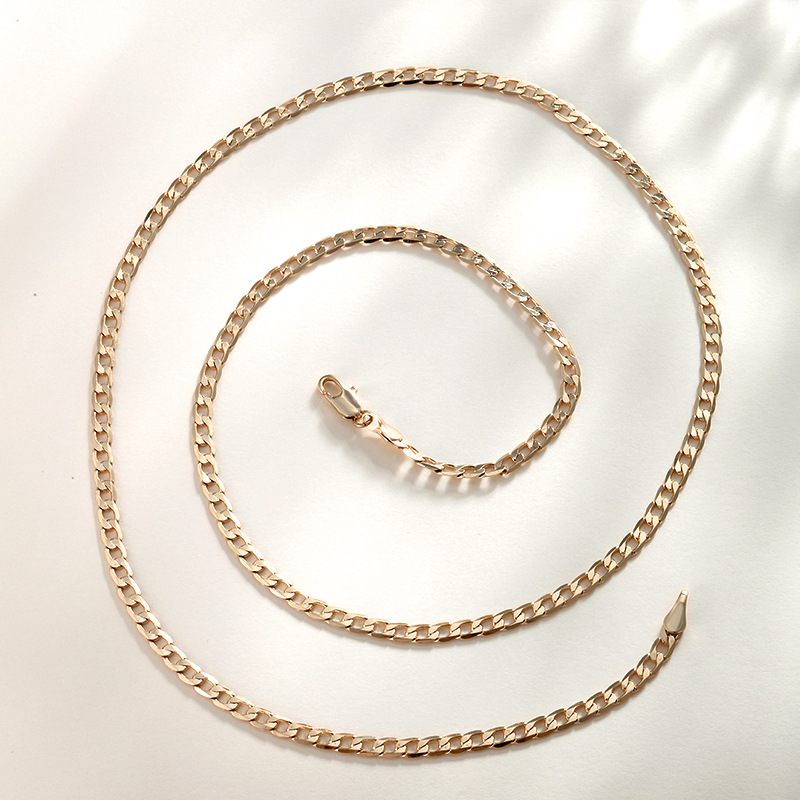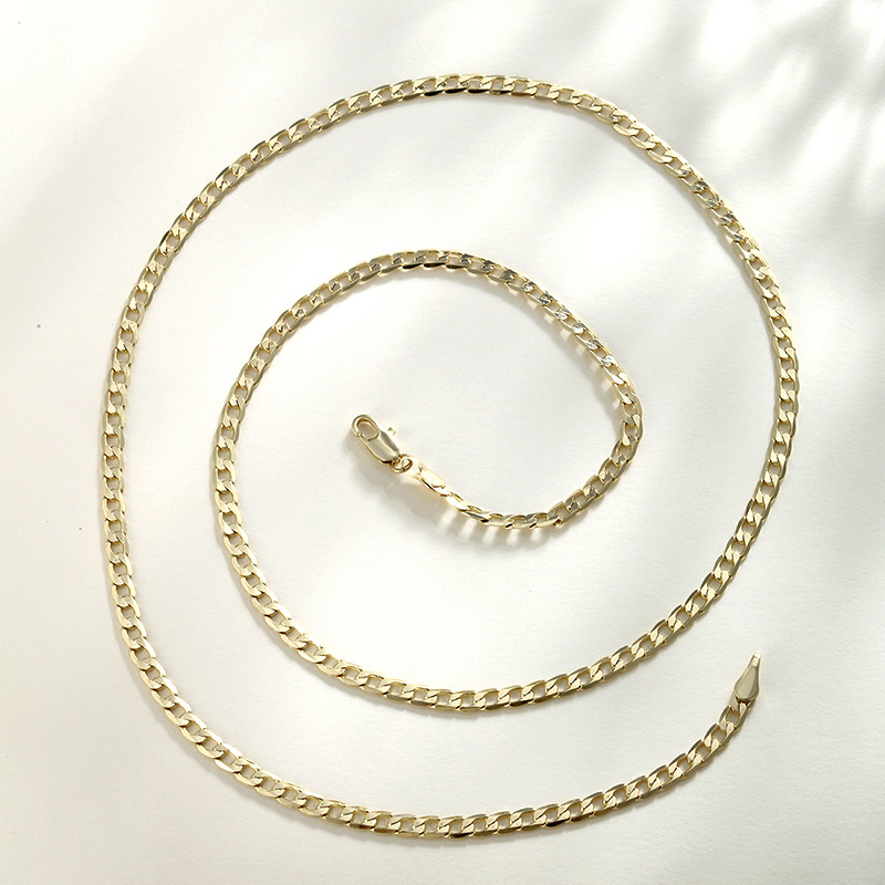 旭平欧美跨境古巴链 男女潮流嘻哈链镀14K金色颈链铜合金镀金项链