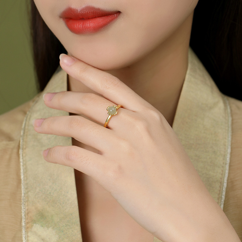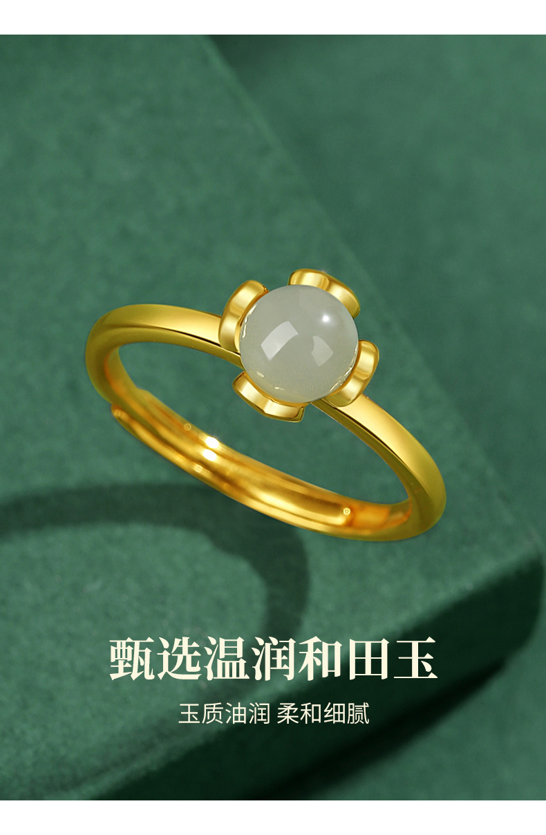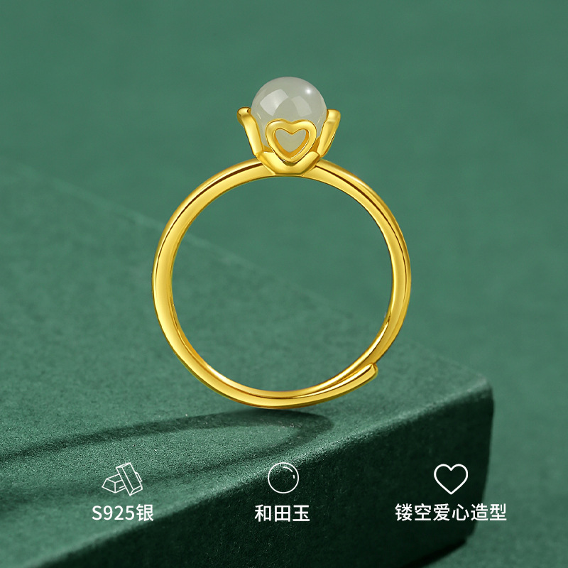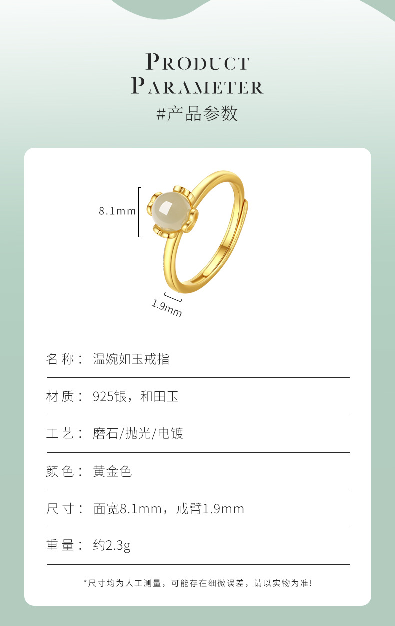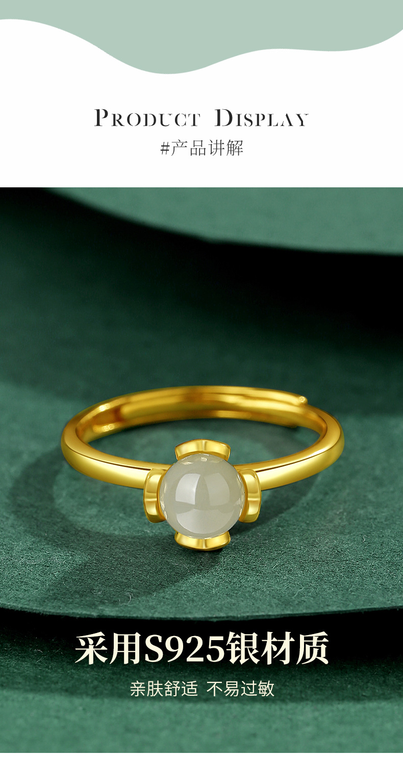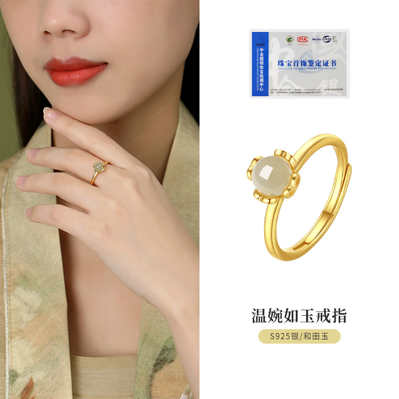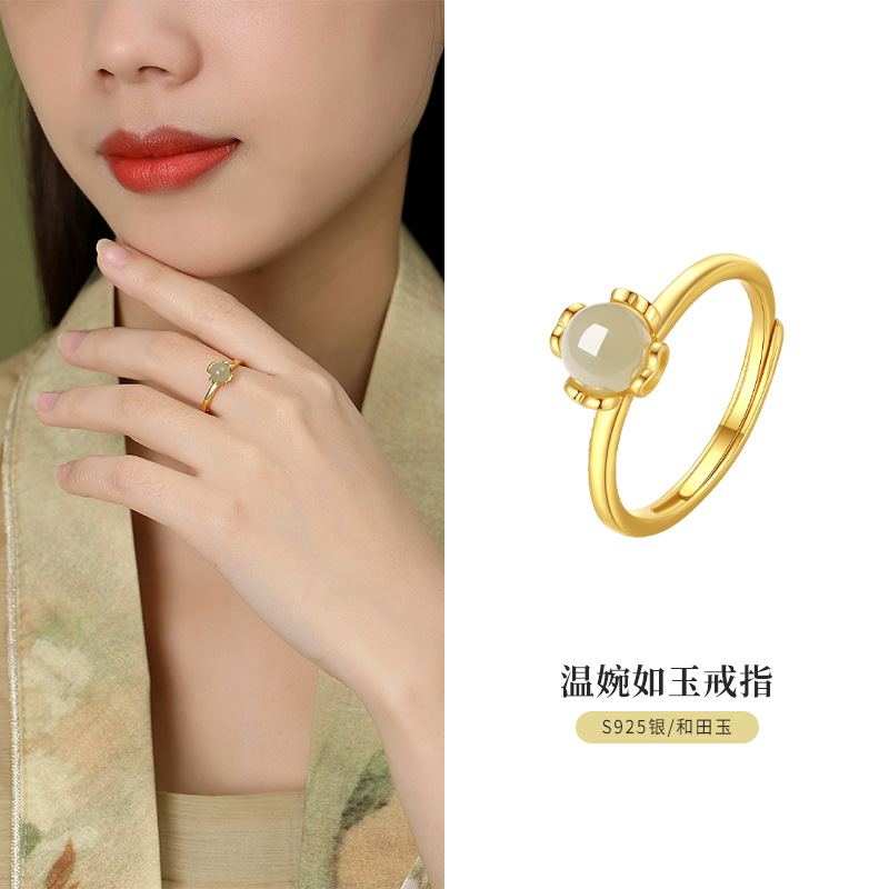 2023年新款s925银天然和田玉开口戒指女式优雅文艺首饰品跨境批发
