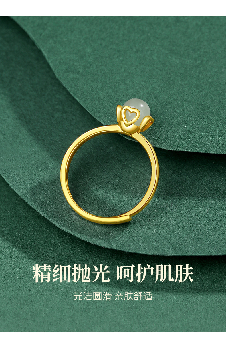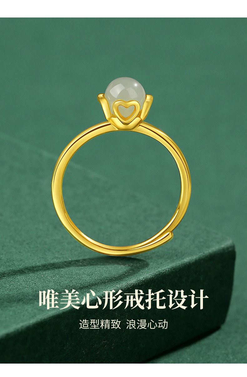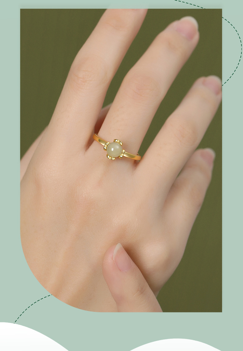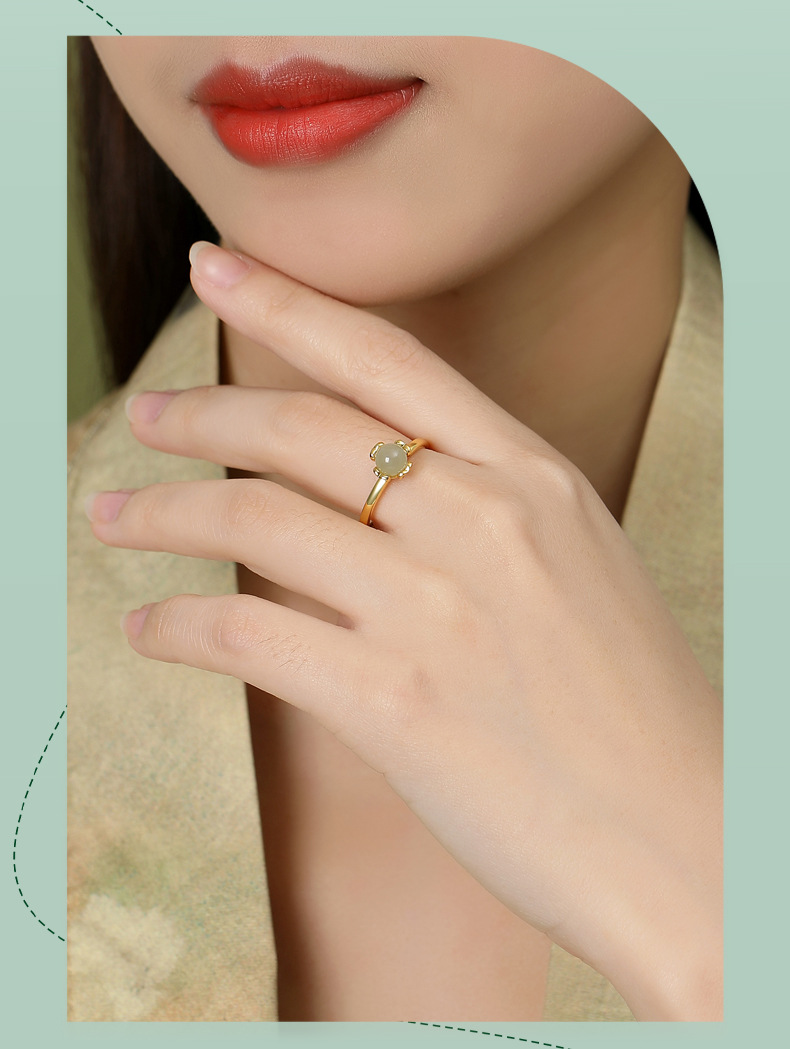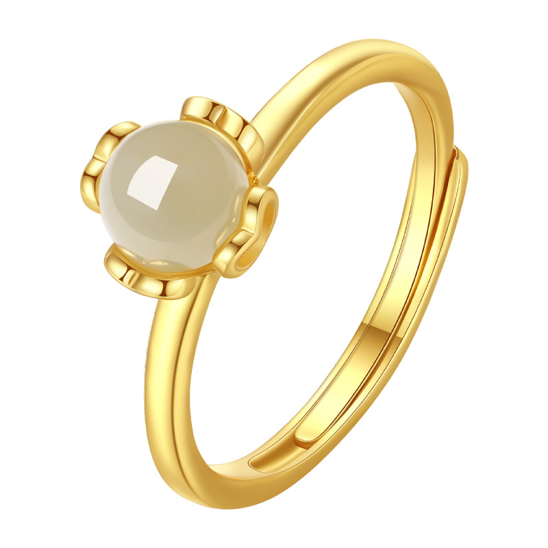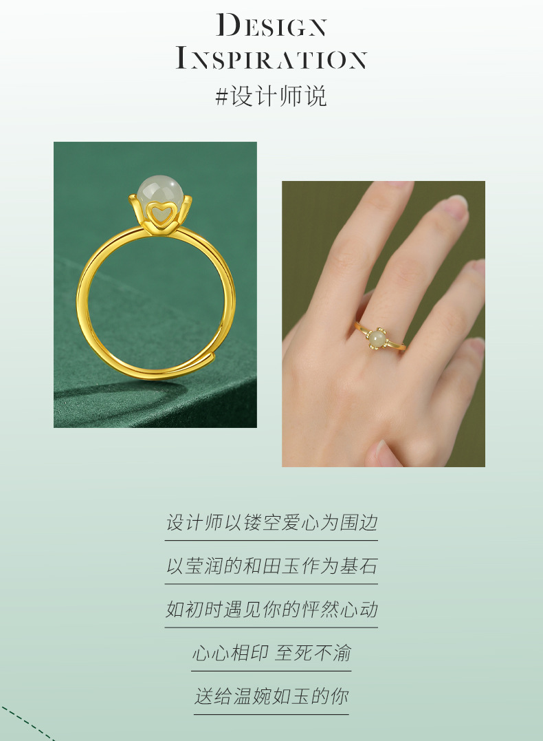 2023年新款s925银天然和田玉开口戒指女式优雅文艺首饰品跨境批发