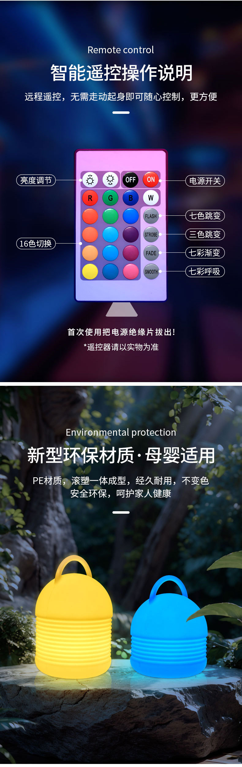跨境爆款led台灯创意卧室床头装饰氛围灯手提充电七彩小夜灯批发