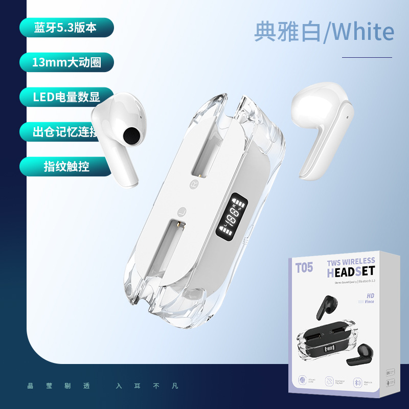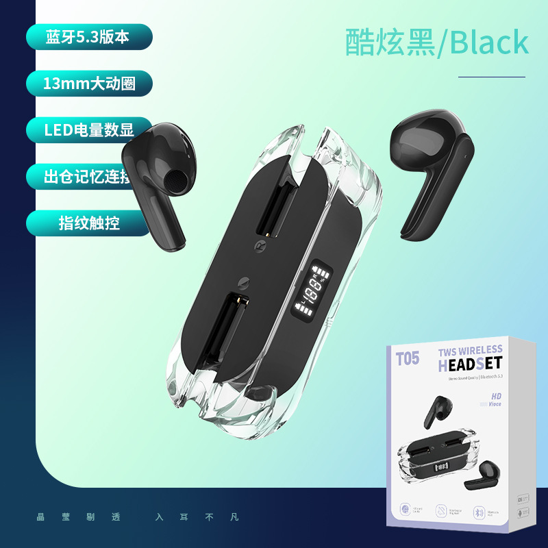 跨境TWS全透明蓝牙单双耳无线数显立体声运动入耳式充电仓耳机