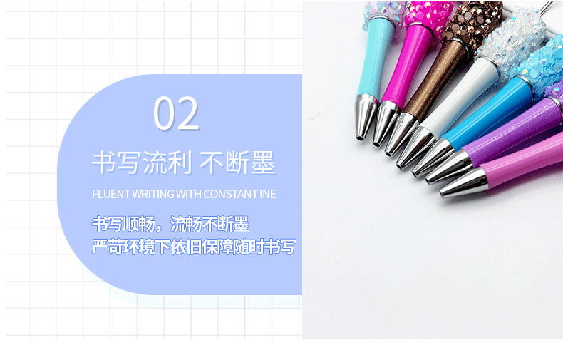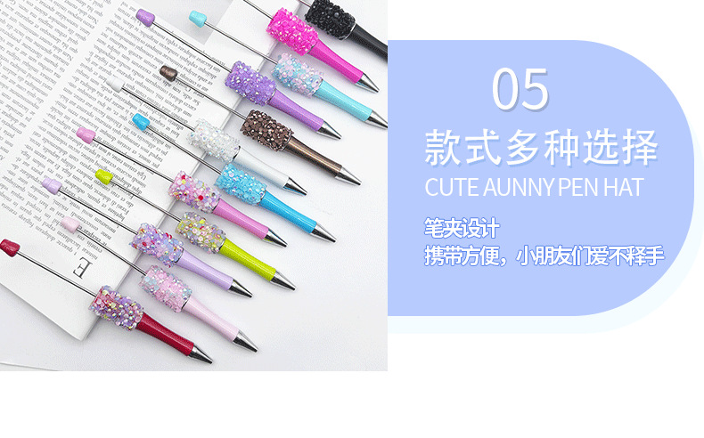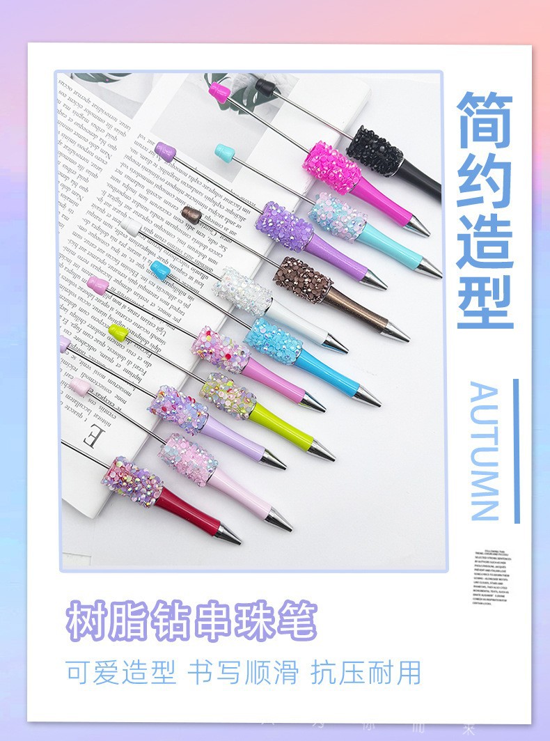 现货跨境diy贝壳花瓣亮片串珠笔手工创意贴钻树脂多色塑料圆珠笔