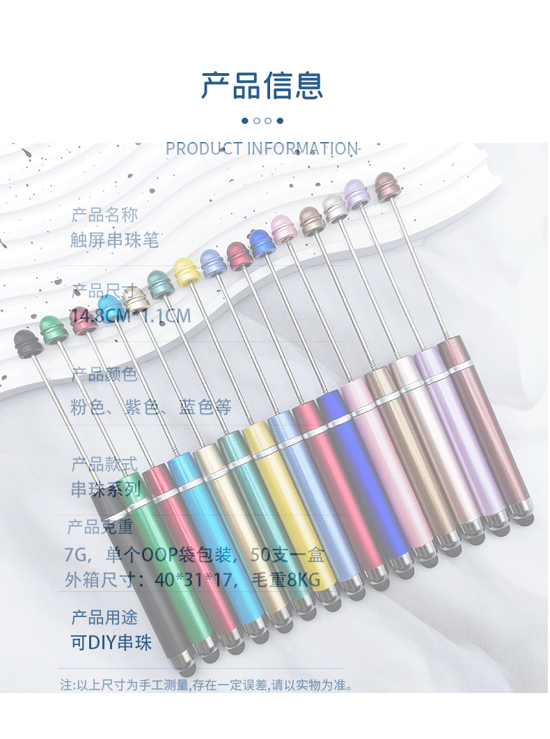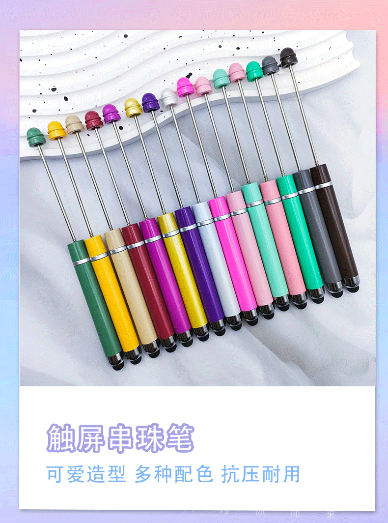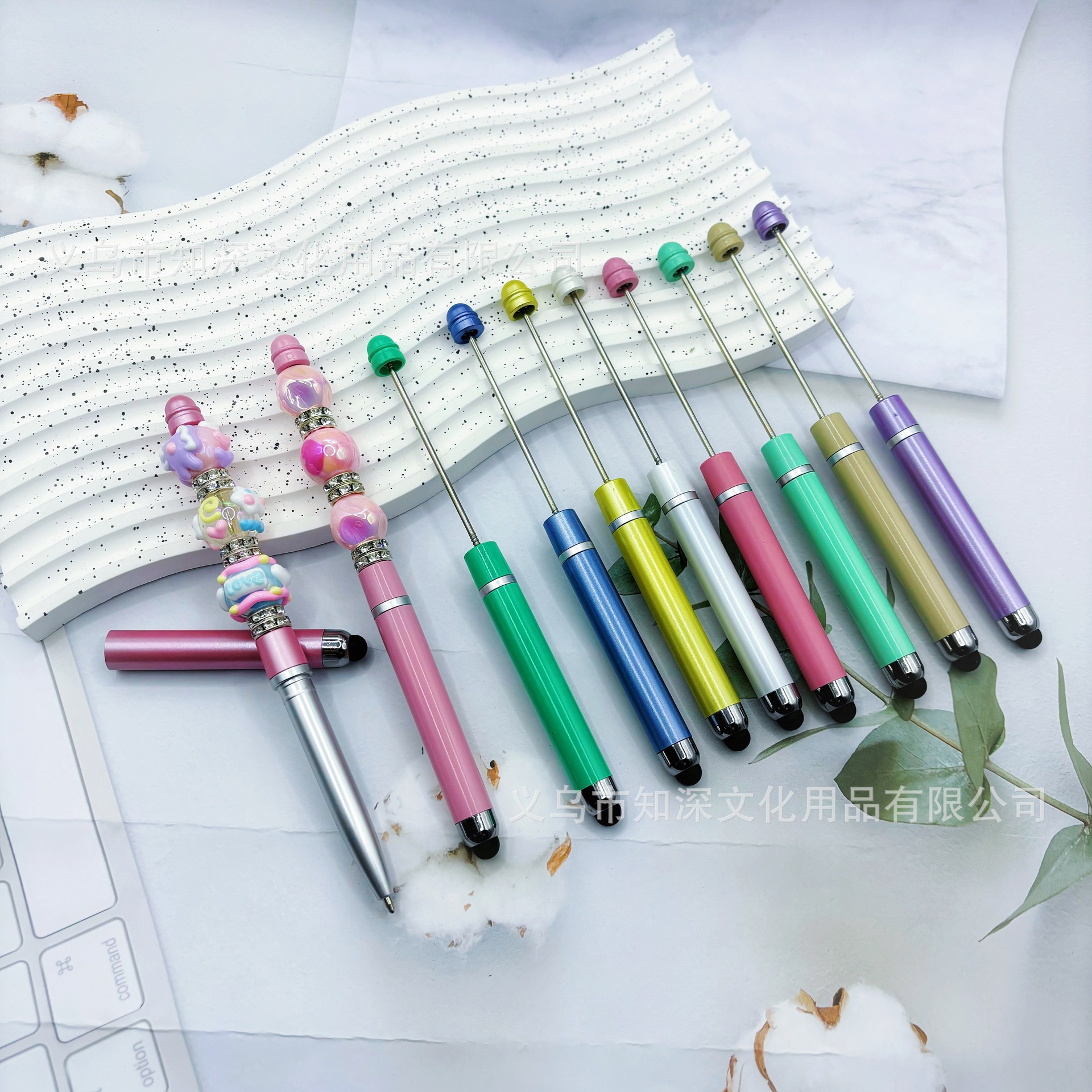 长款触屏串珠笔多色触控触屏串珠萌粒笔多功能书写两用插套圆珠笔