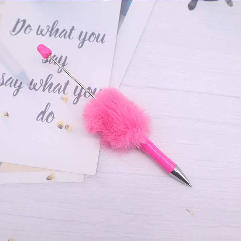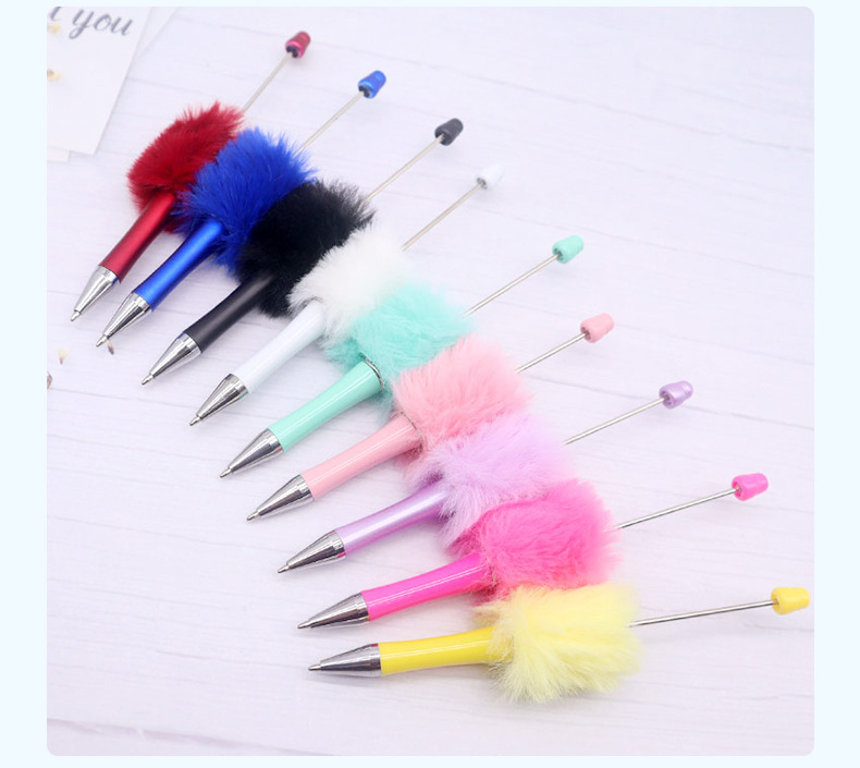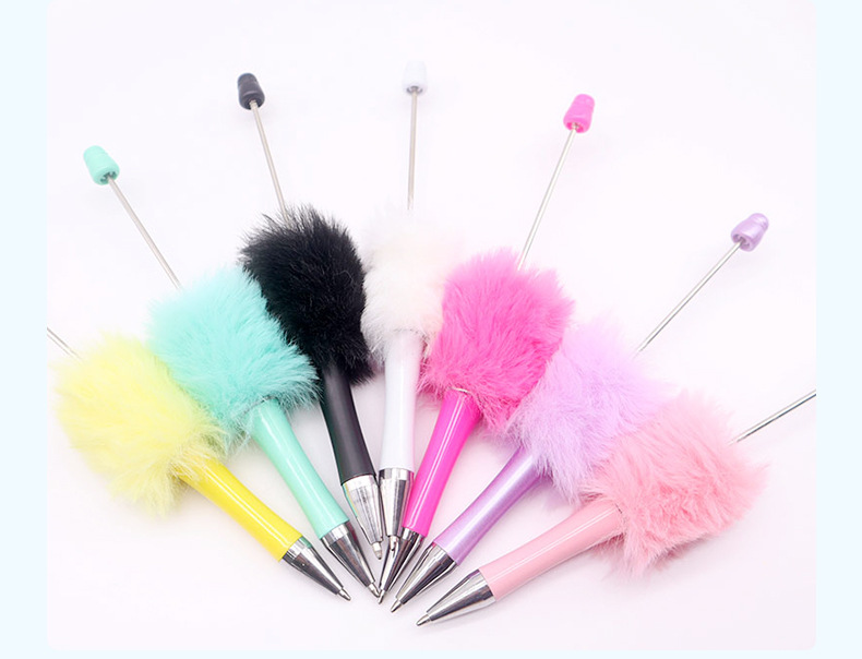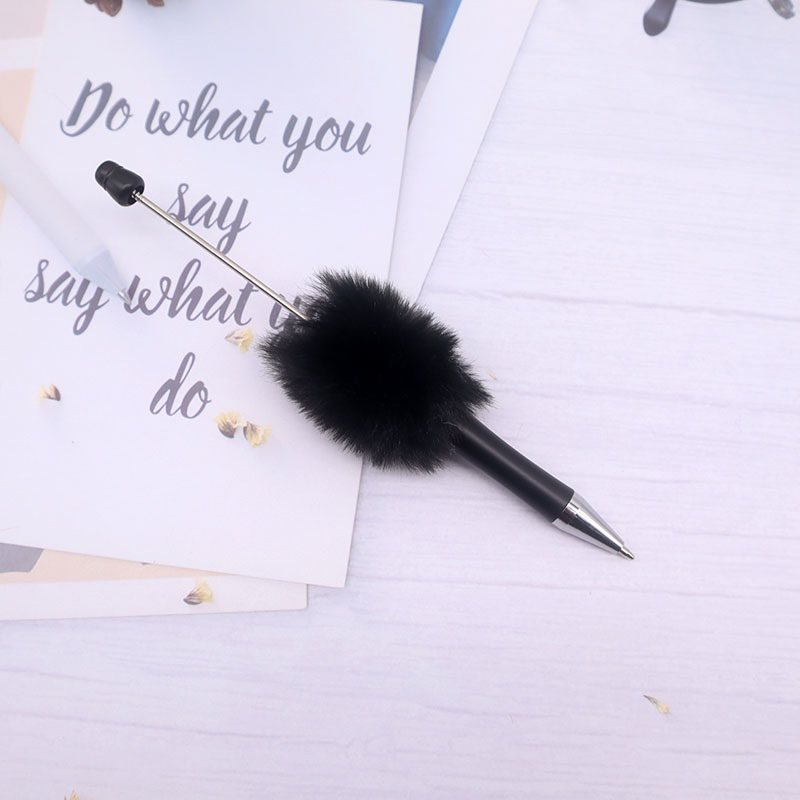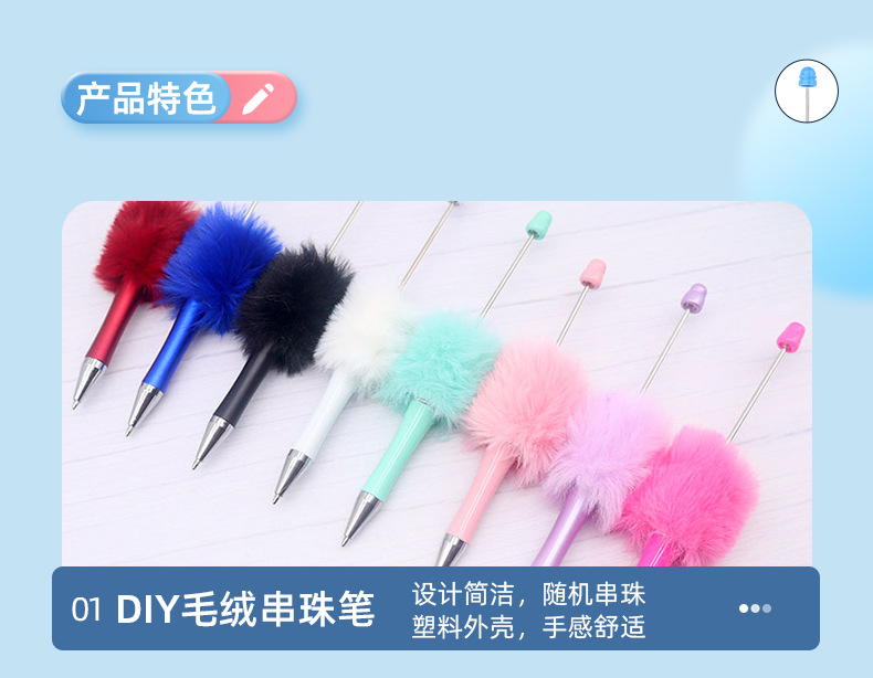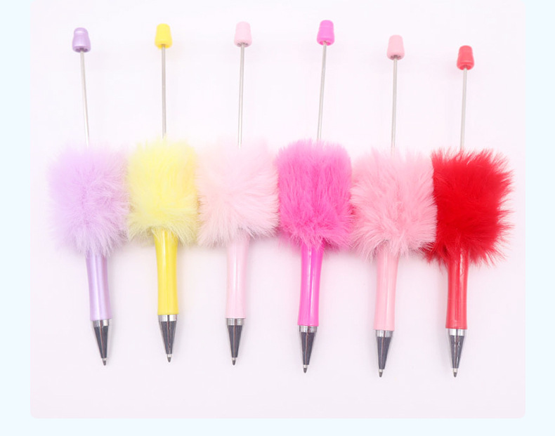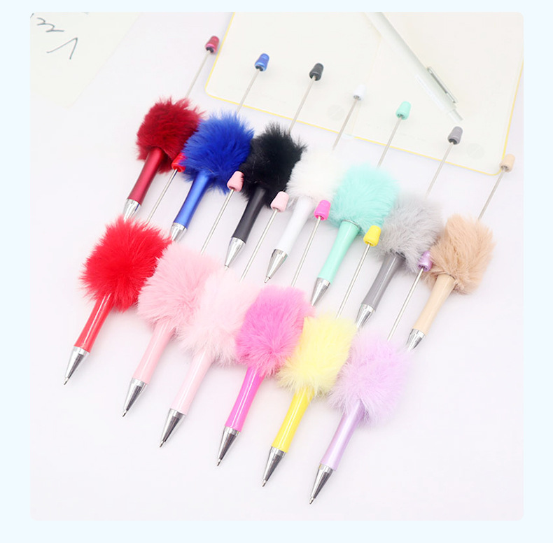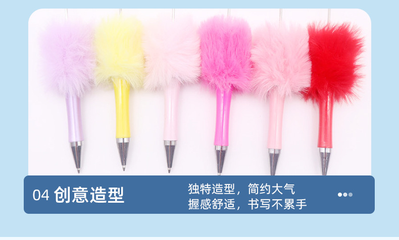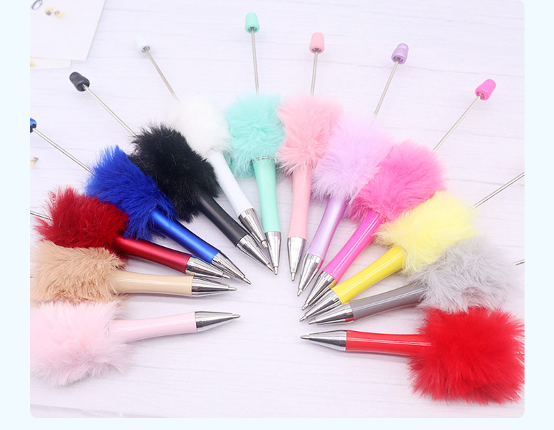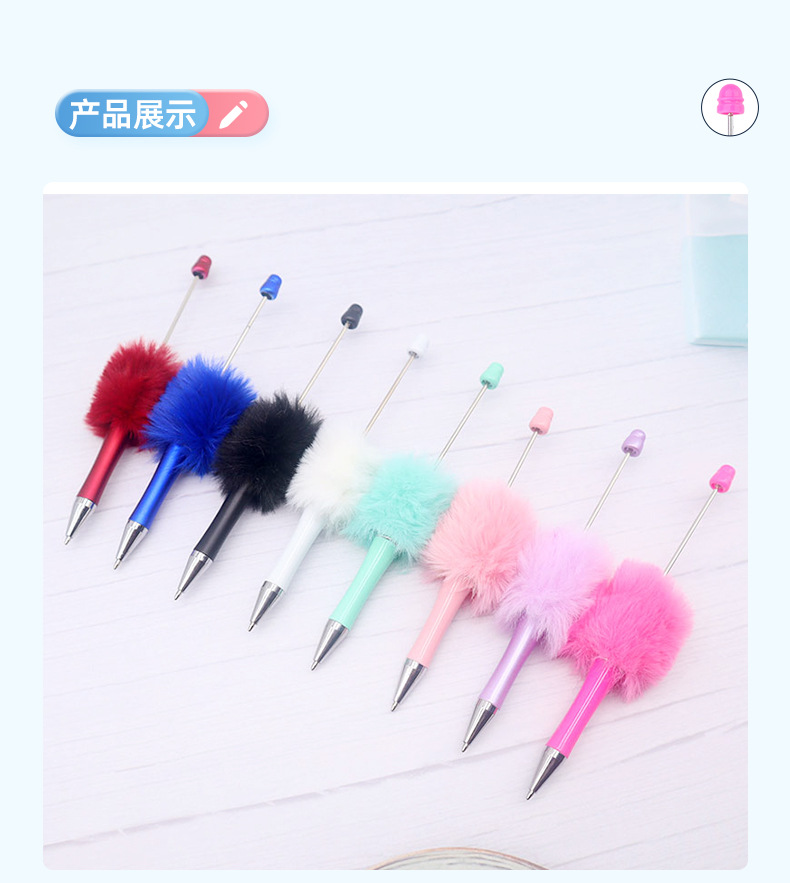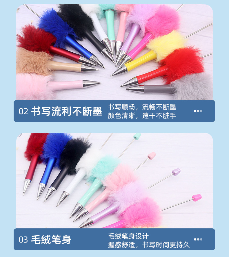 新款创意DIY毛球串珠笔毛绒串珠圆珠笔可爱风毛茸茸礼品笔塑料笔