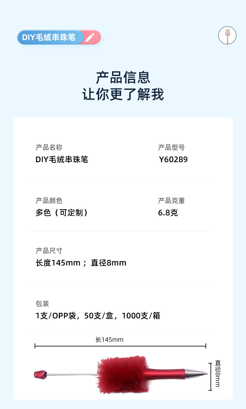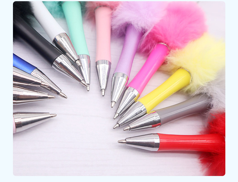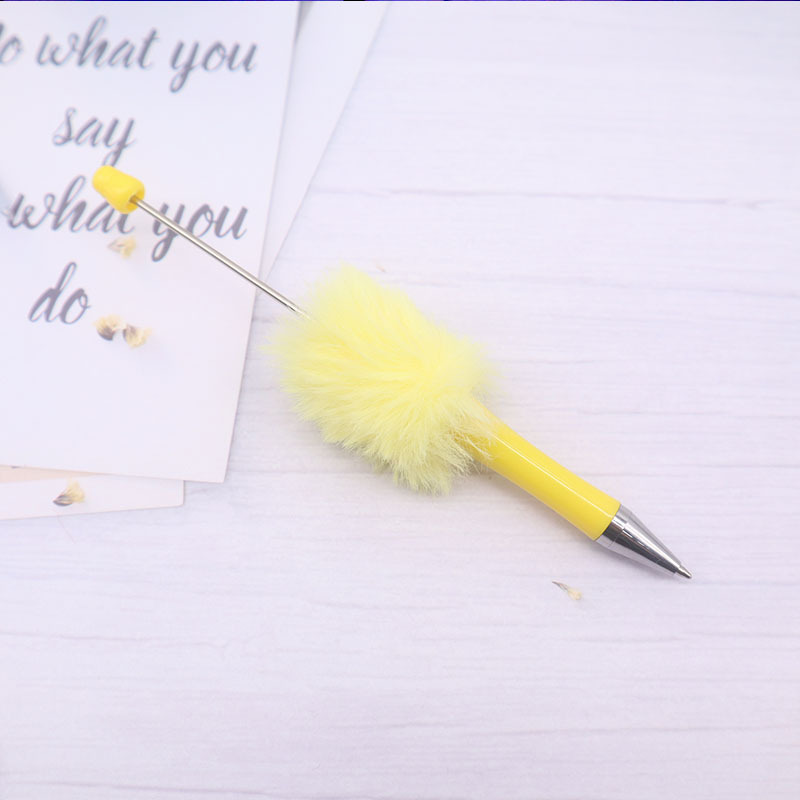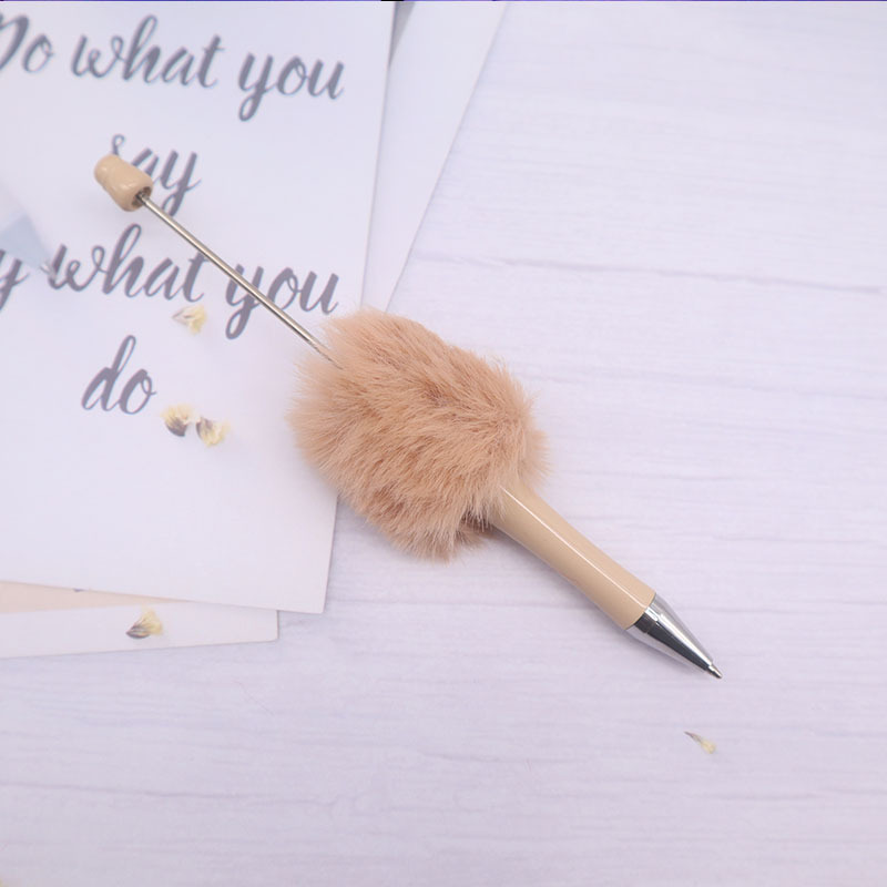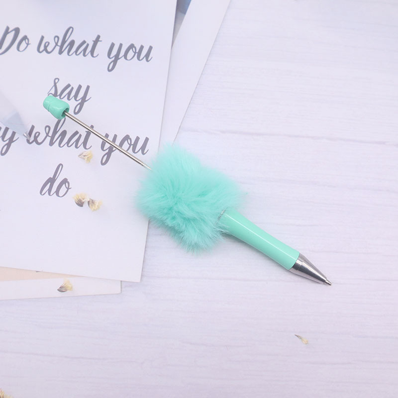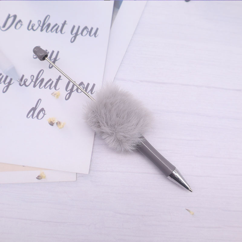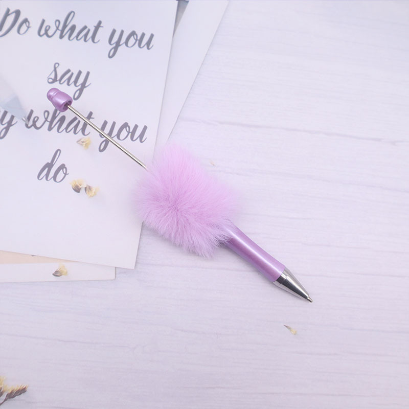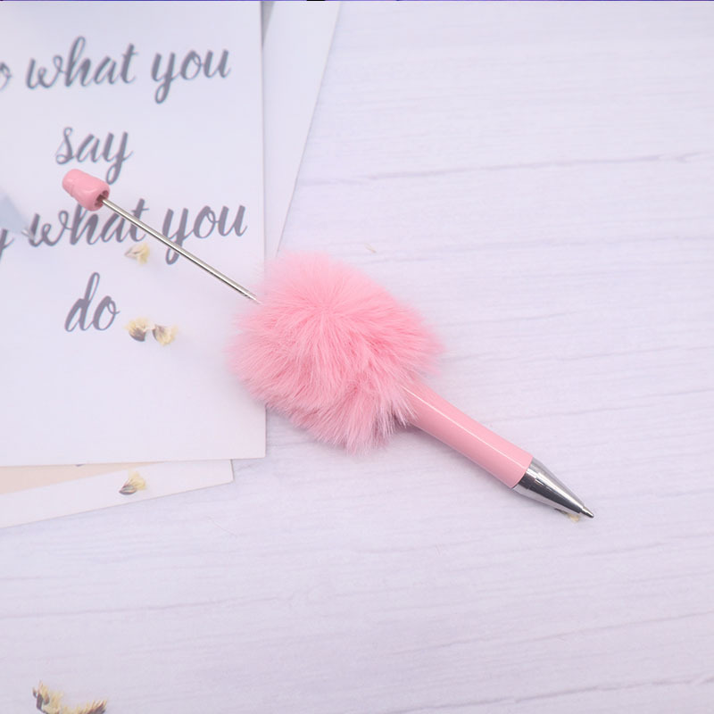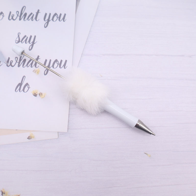 新款创意DIY毛球串珠笔毛绒串珠圆珠笔可爱风毛茸茸礼品笔塑料笔