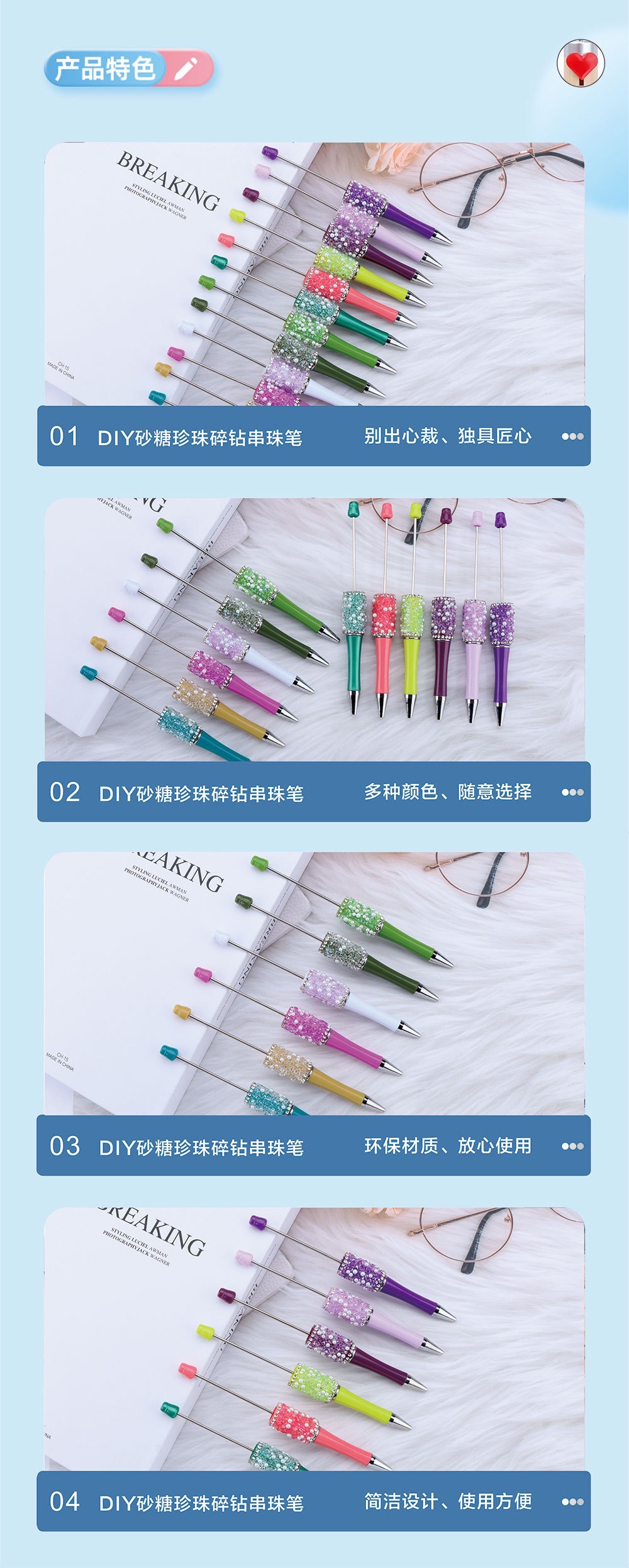 新款珍珠砂糖串珠笔 diy串珠满天星加工笔水晶边钻高颜值学生文具