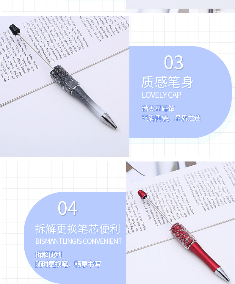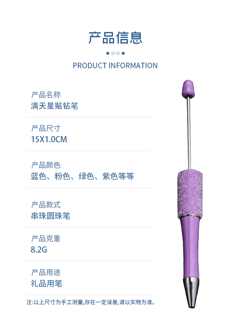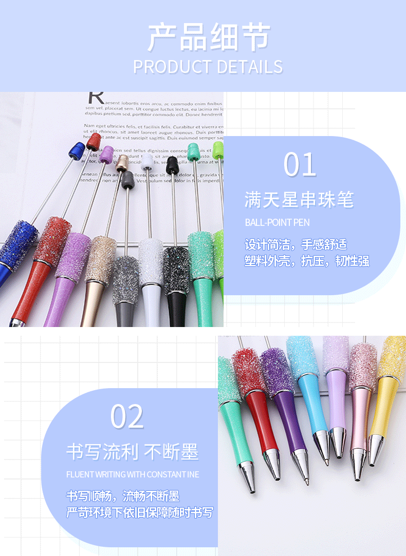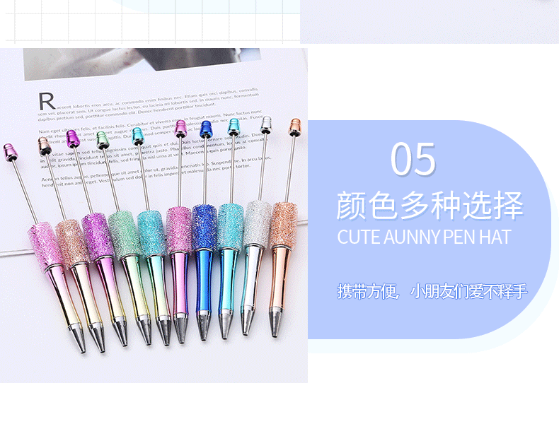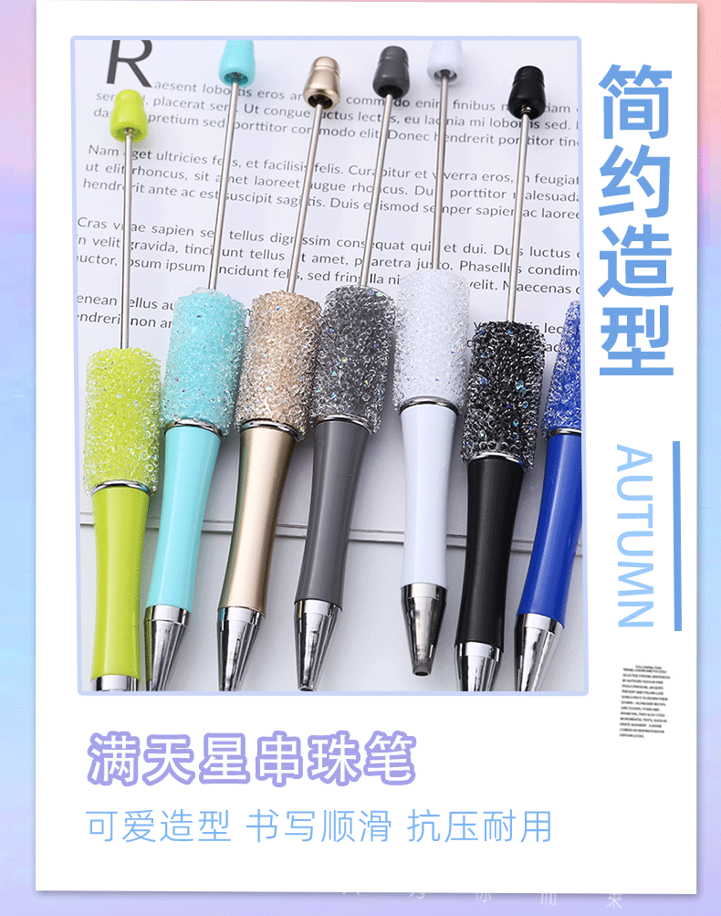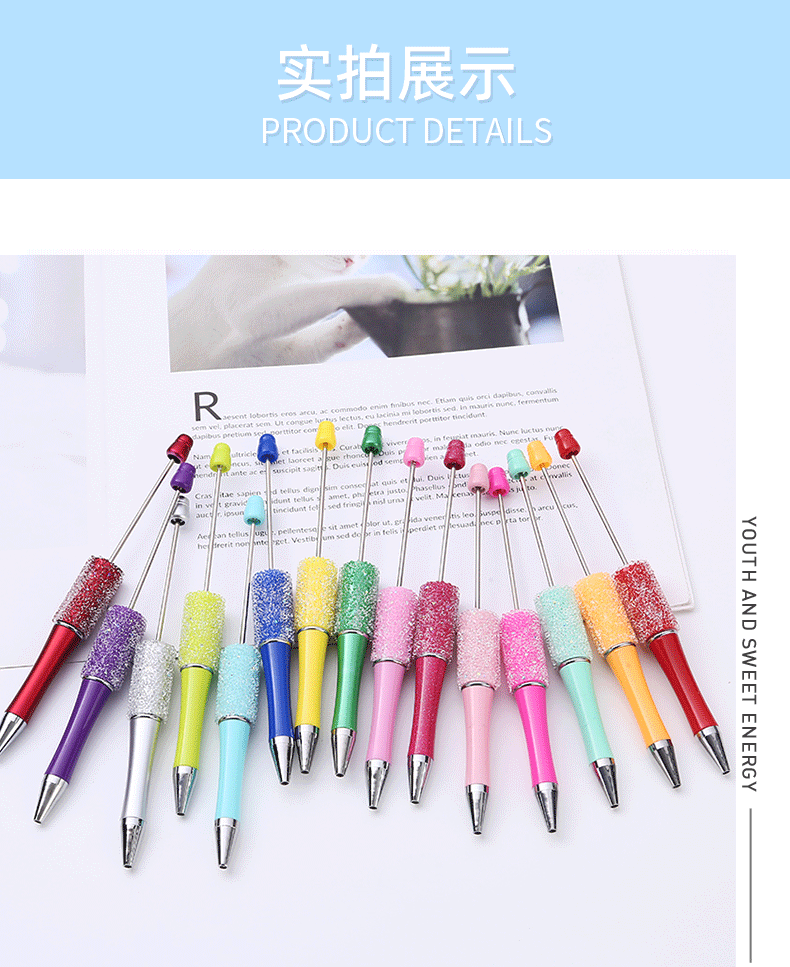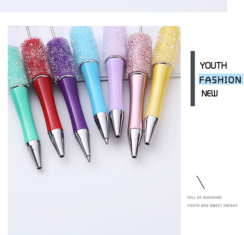 diy砂糖串珠笔 满天星多色圆珠笔手工贴片可串珠礼品文具现货批发