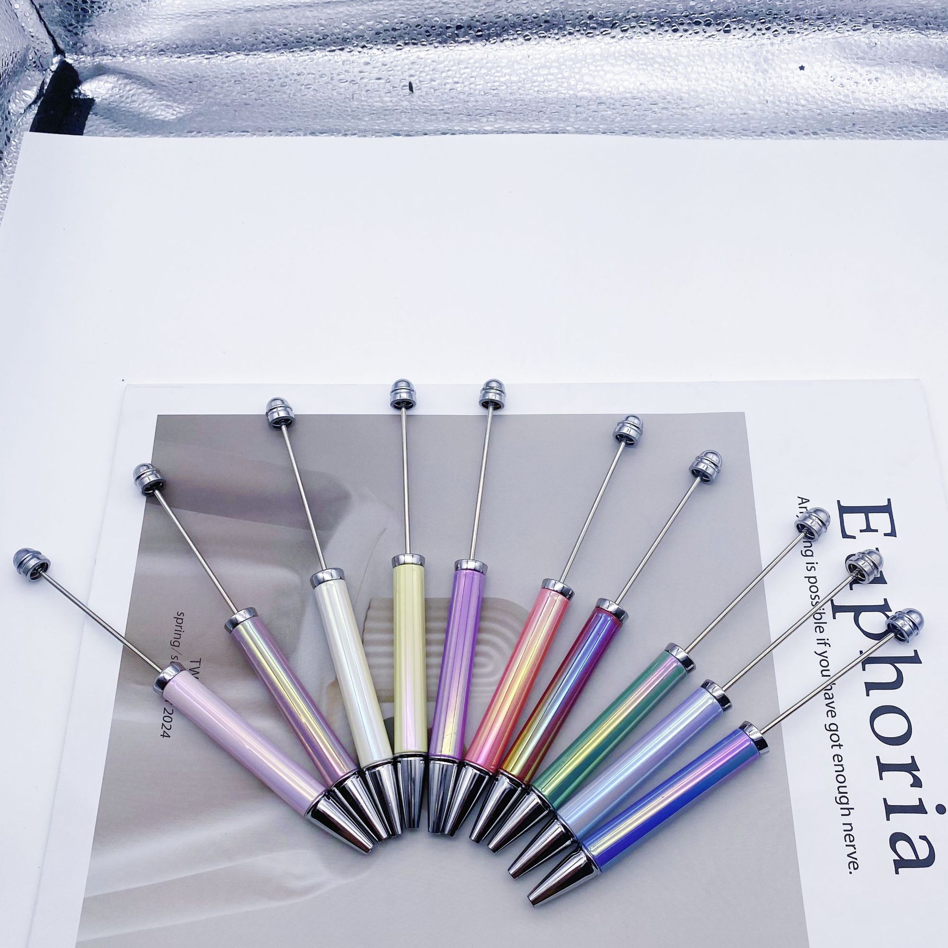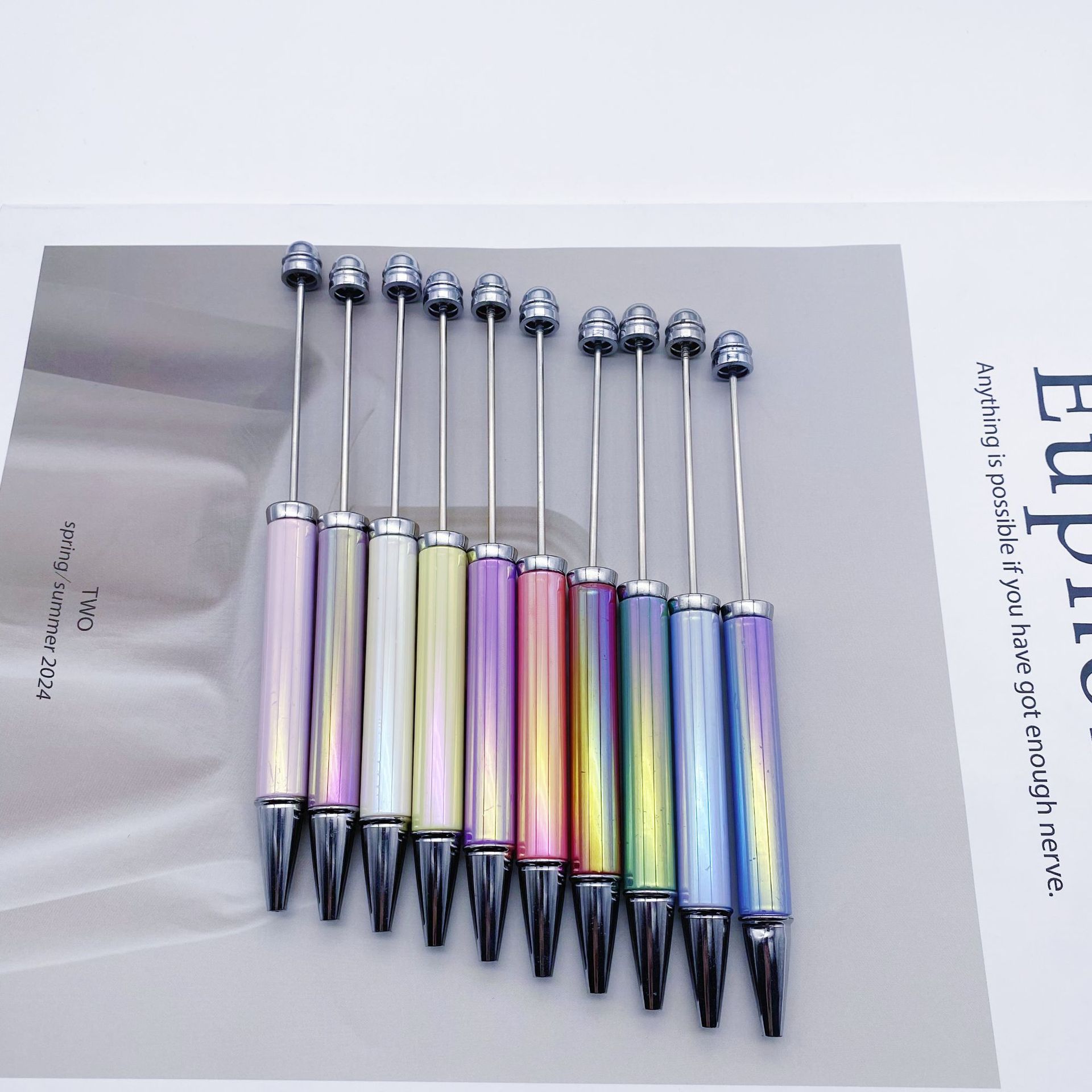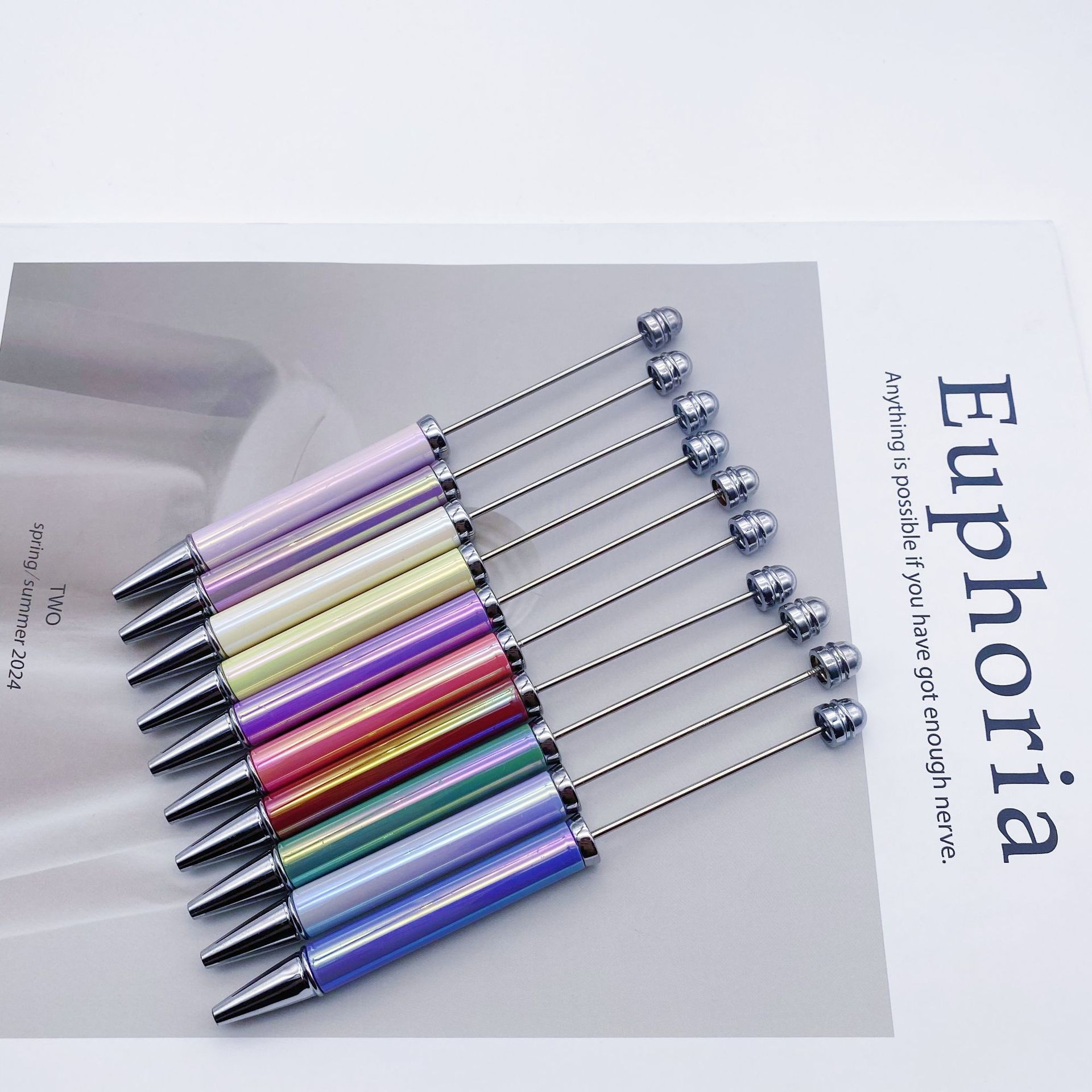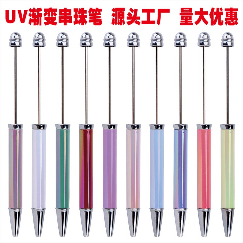 新款diy热升华串珠笔 电镀七彩手工礼品笔商务办公多色圆珠笔批发