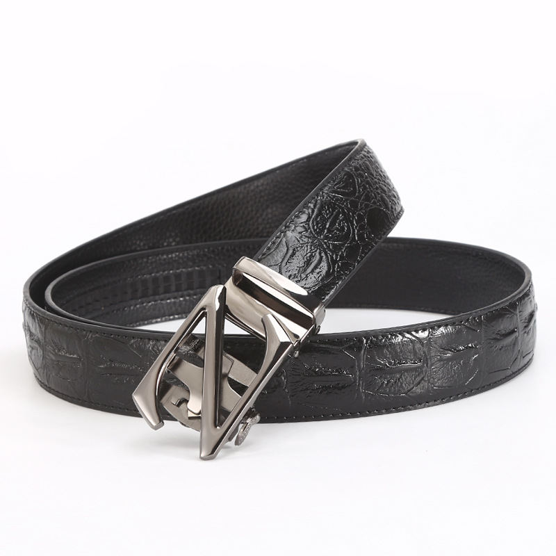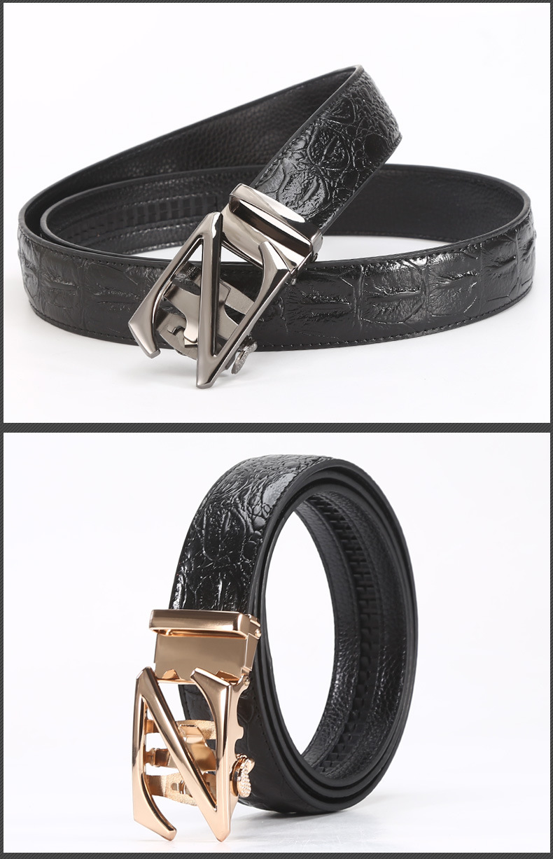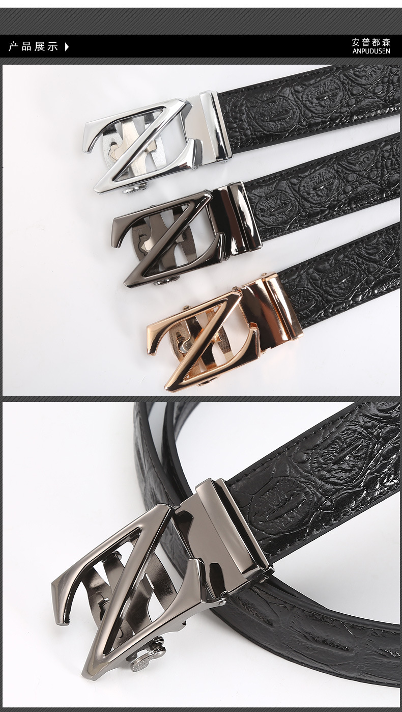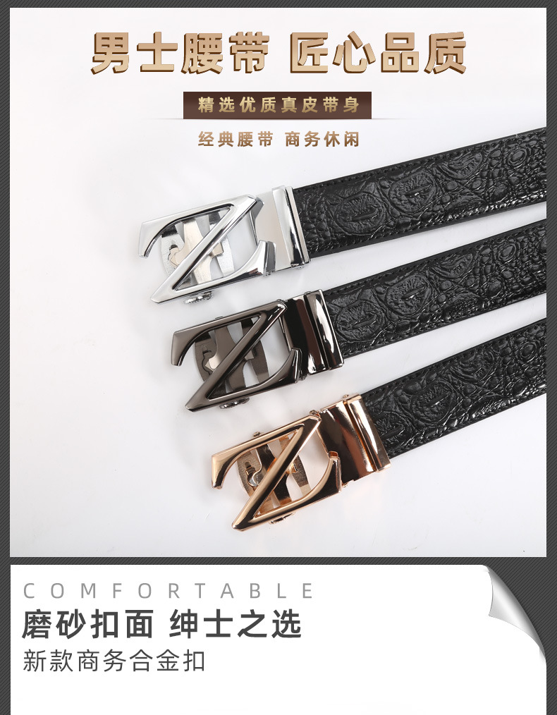 新款皮带男士合金自动扣商务真牛皮腰带百搭字母休闲裤带厂家批发