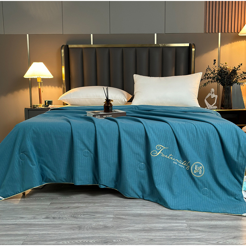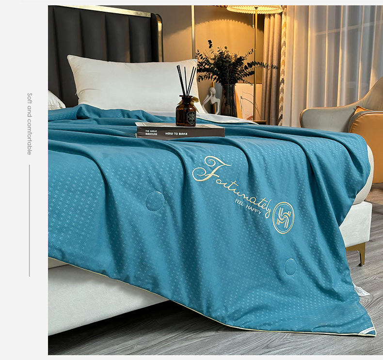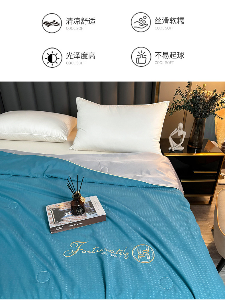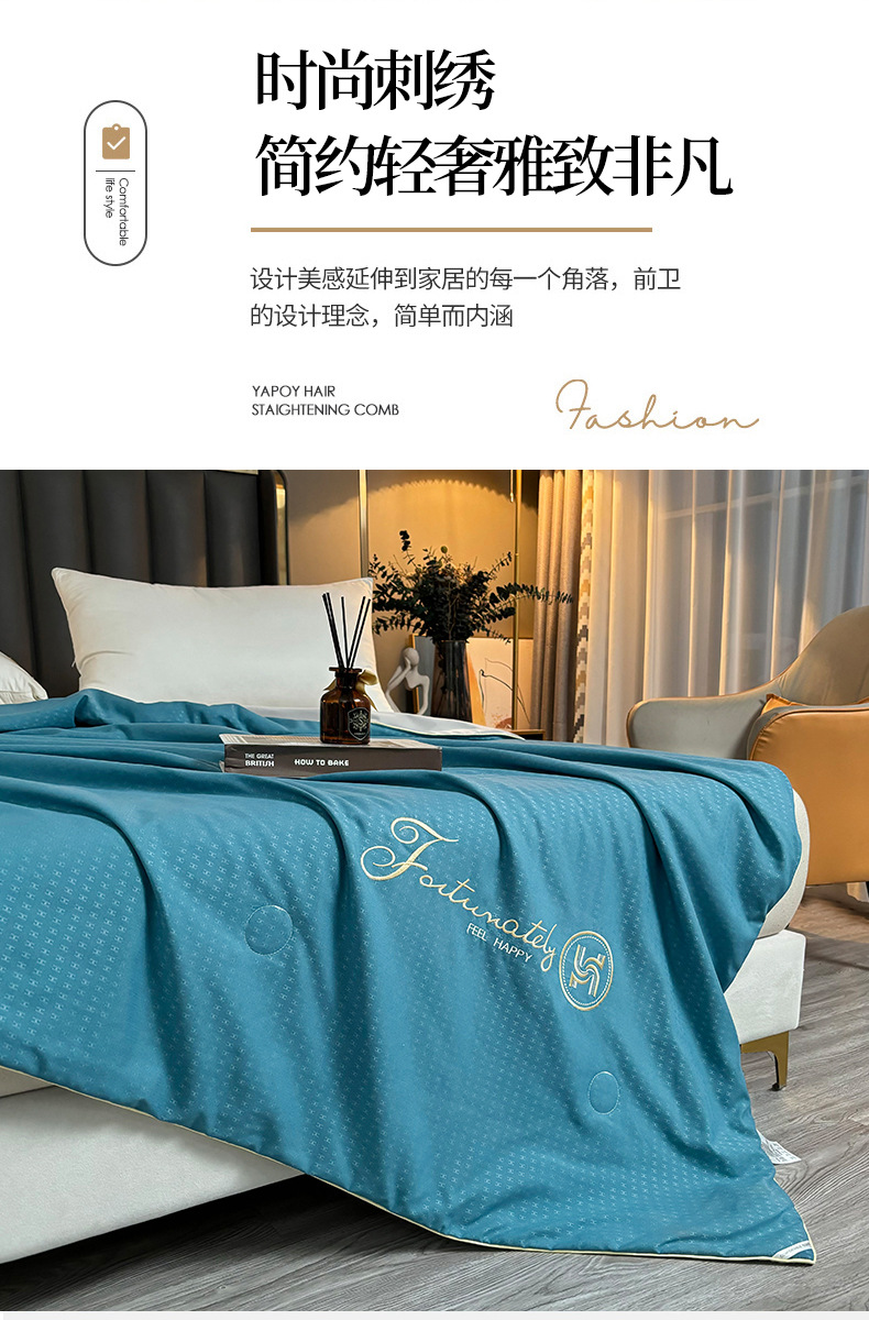 轻奢简约夏季空调被夏凉被水洗刺绣被子冰丝凉感夏被批发薄款