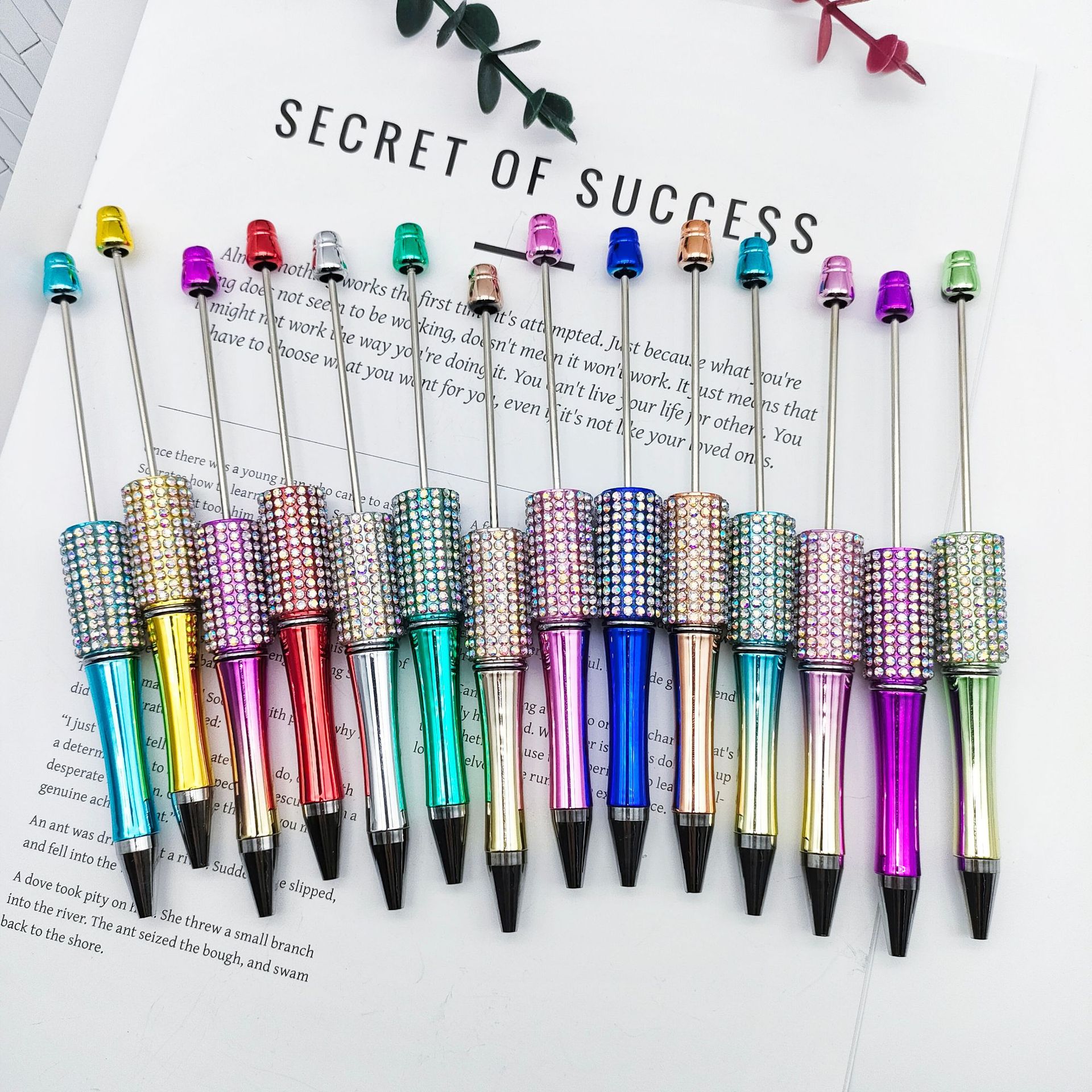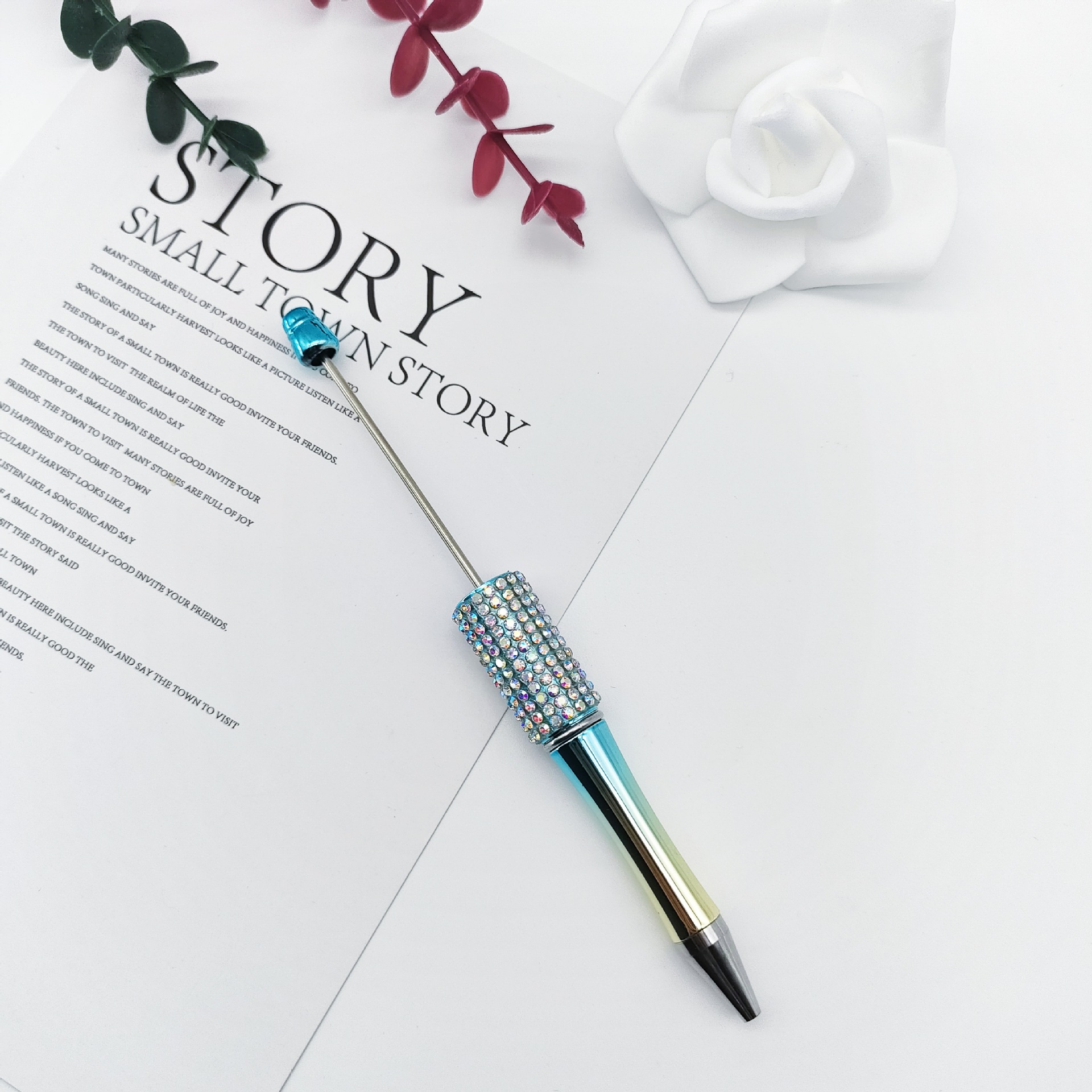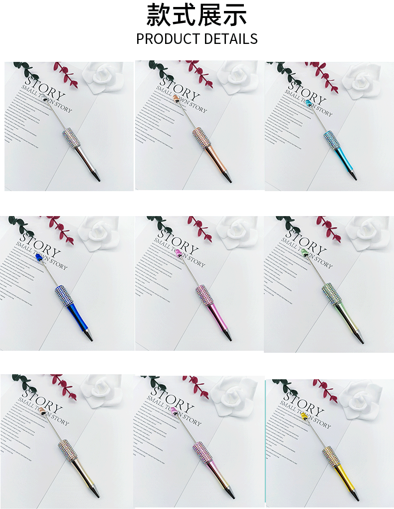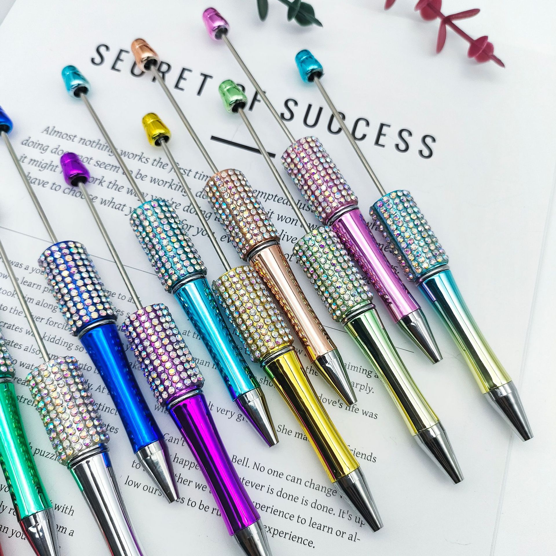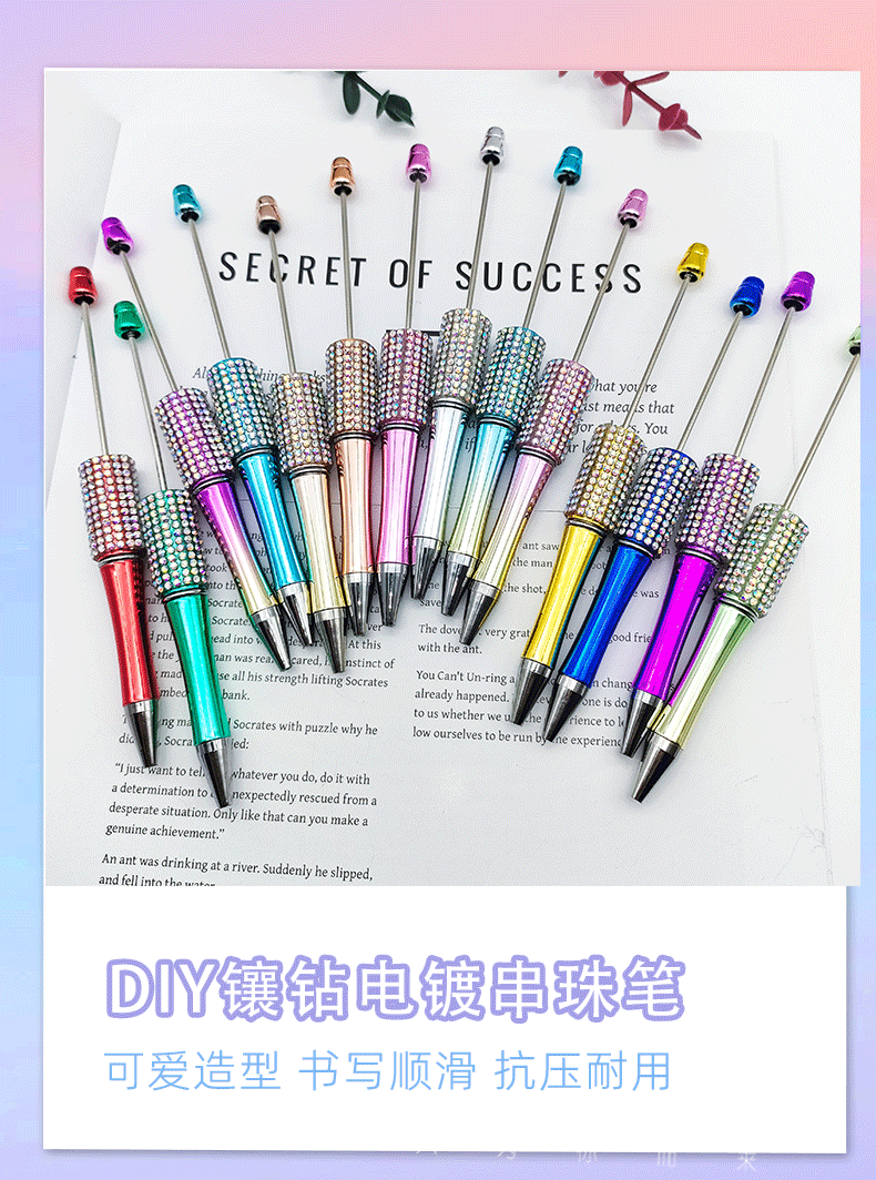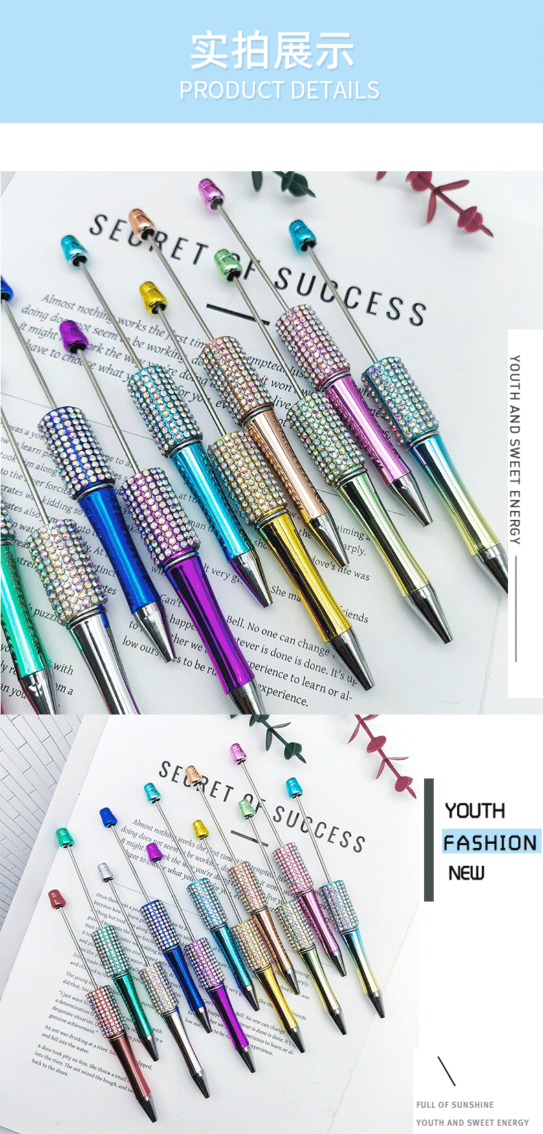 创新DIY钻石串珠笔 UV电镀彩钻串珠笔多色渐变多彩镶钻串珠圆珠笔