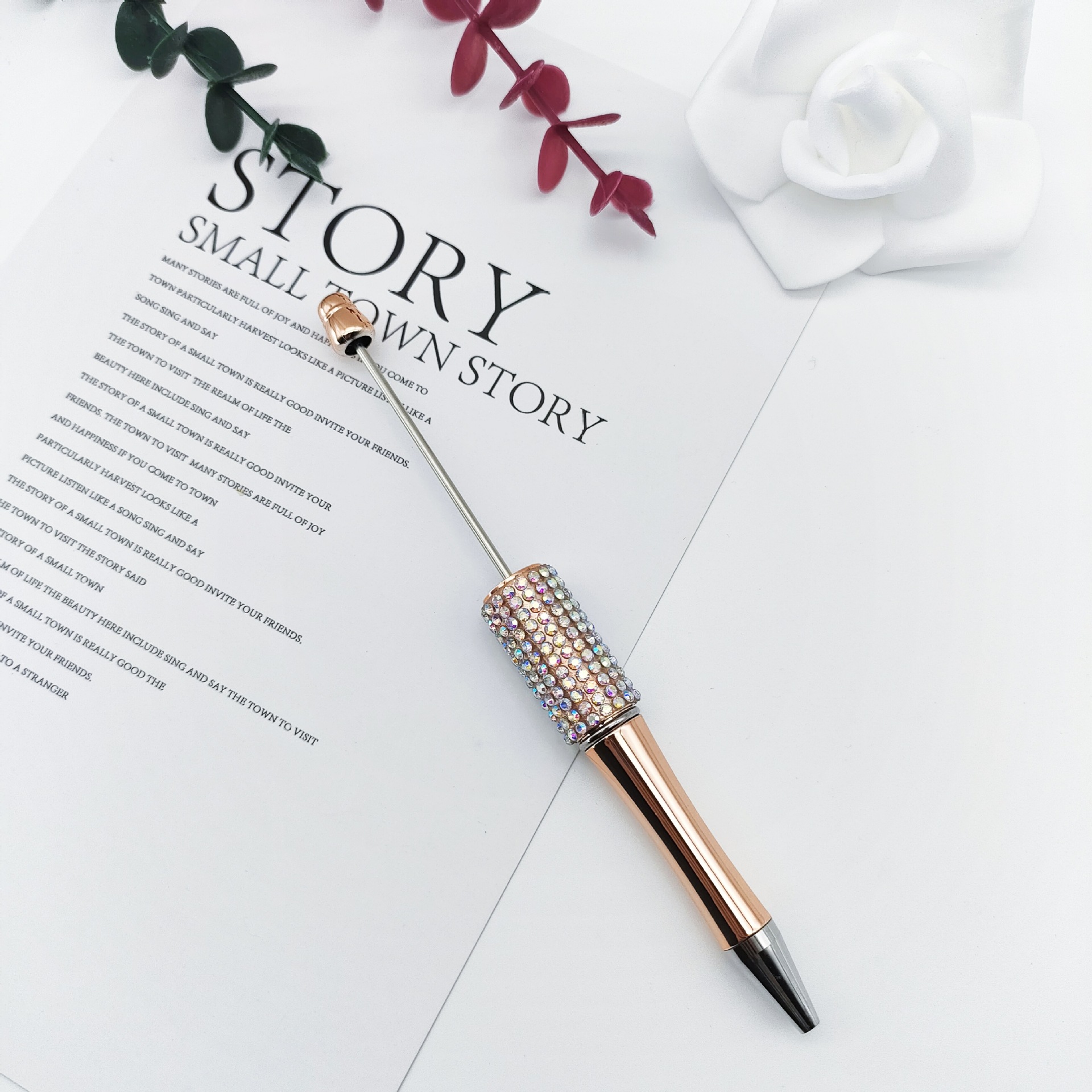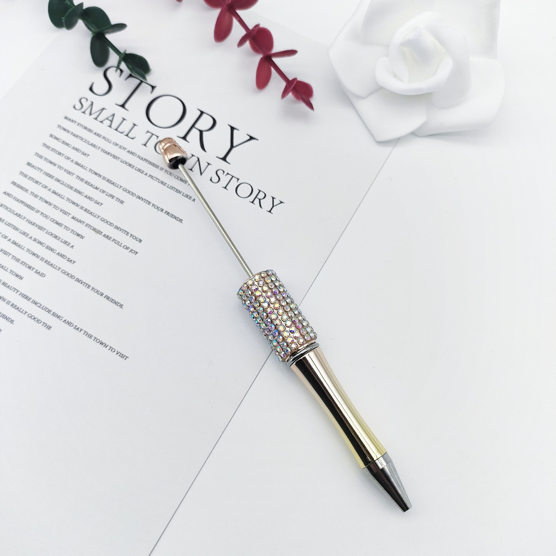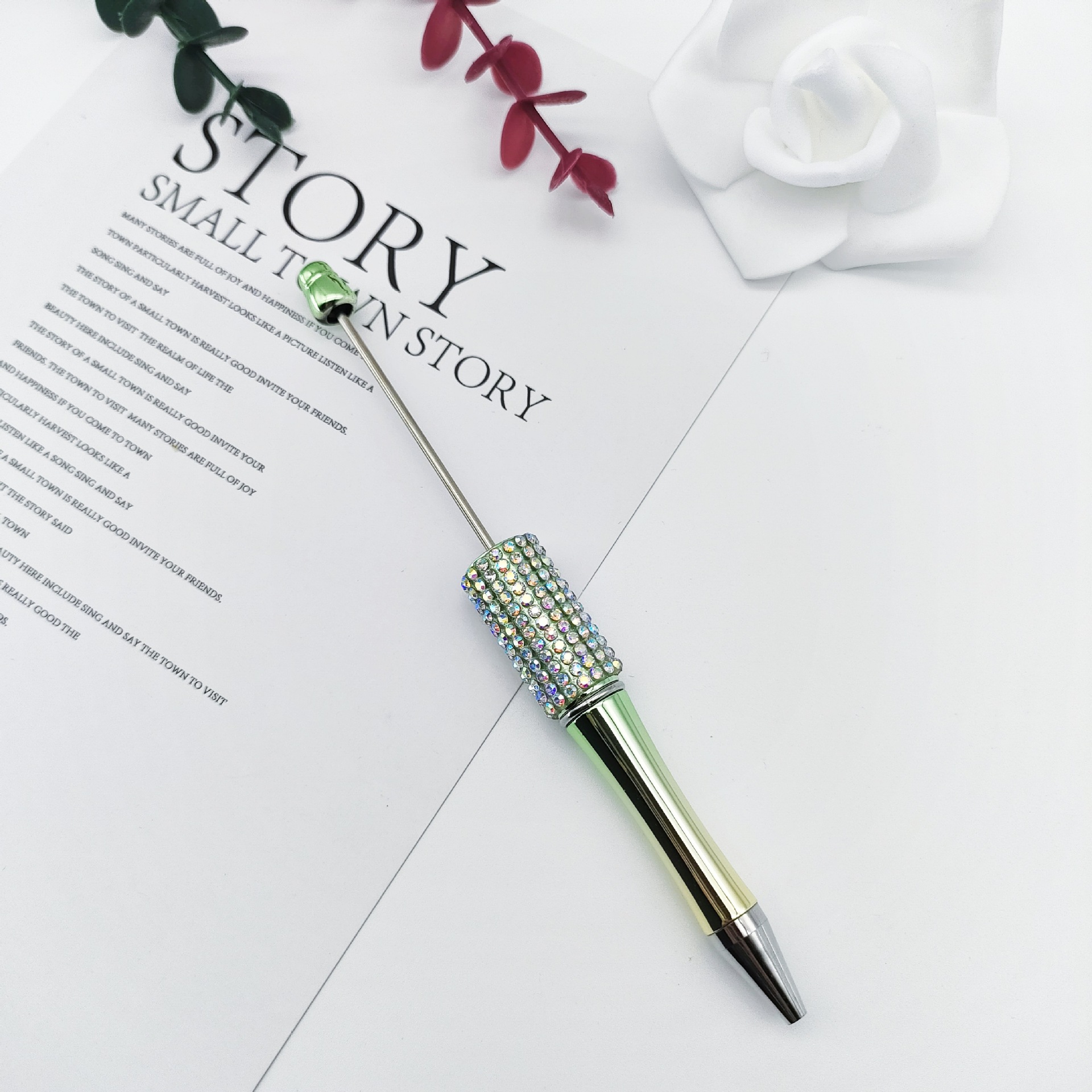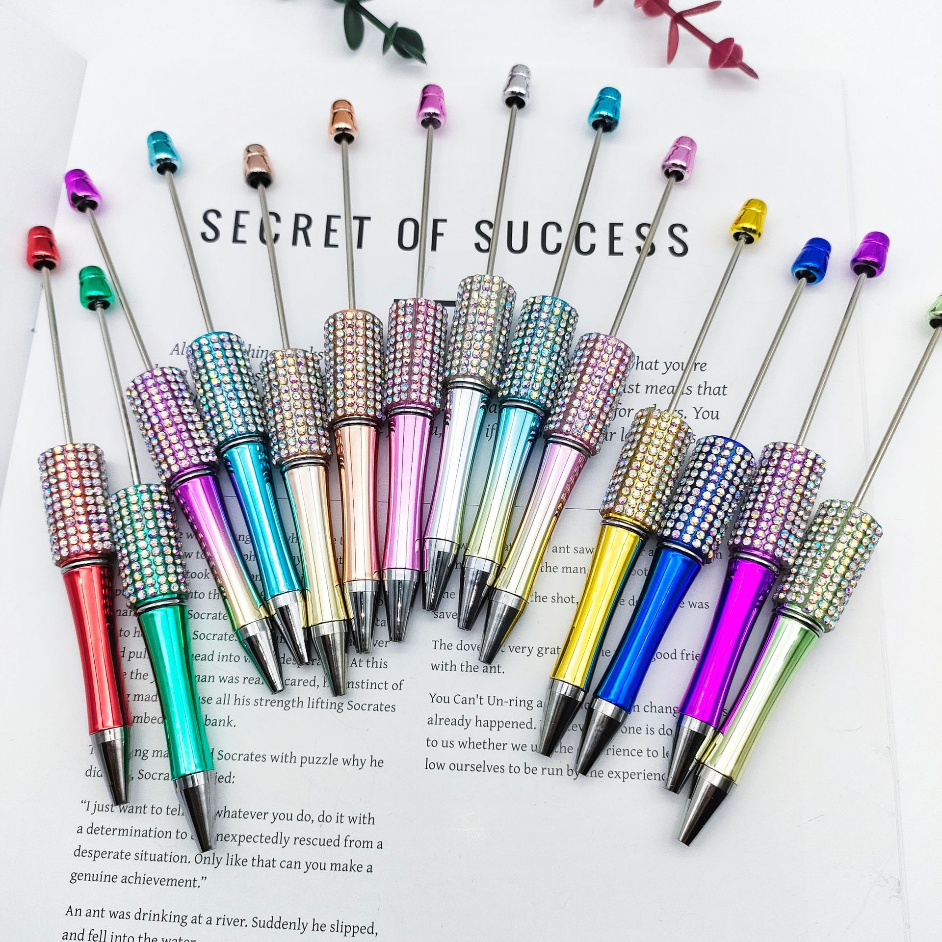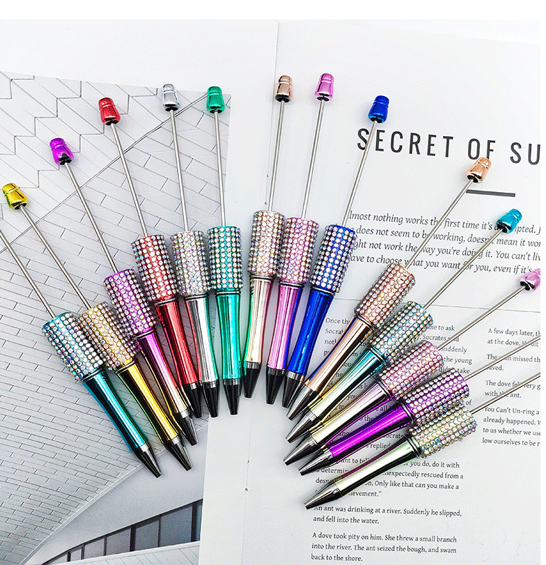 创新DIY钻石串珠笔 UV电镀彩钻串珠笔多色渐变多彩镶钻串珠圆珠笔