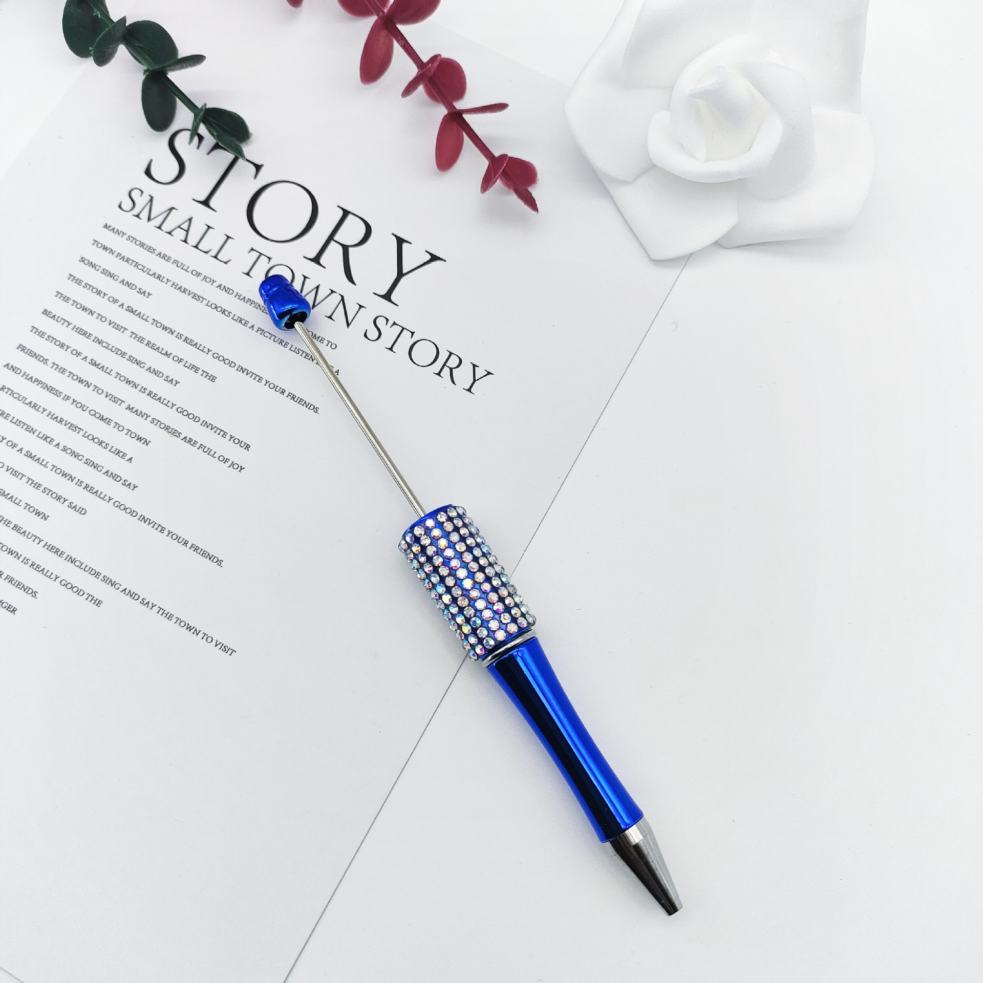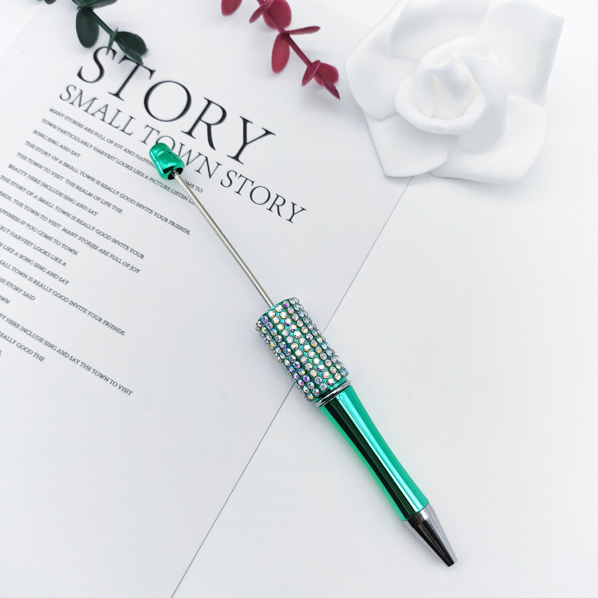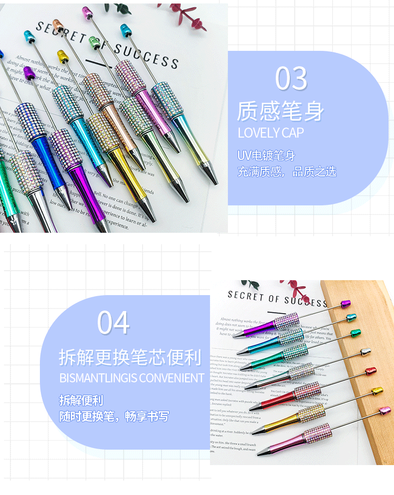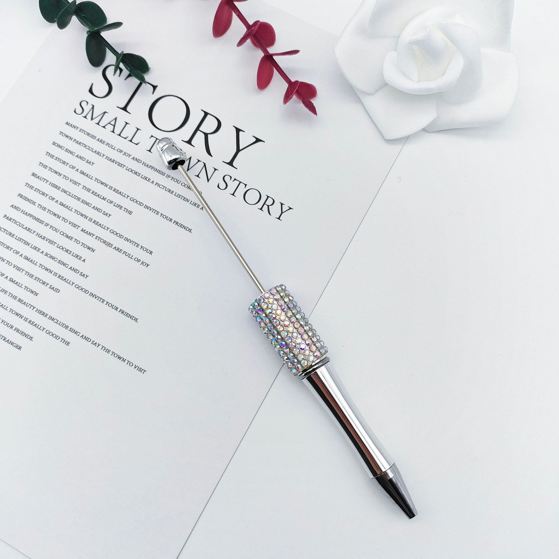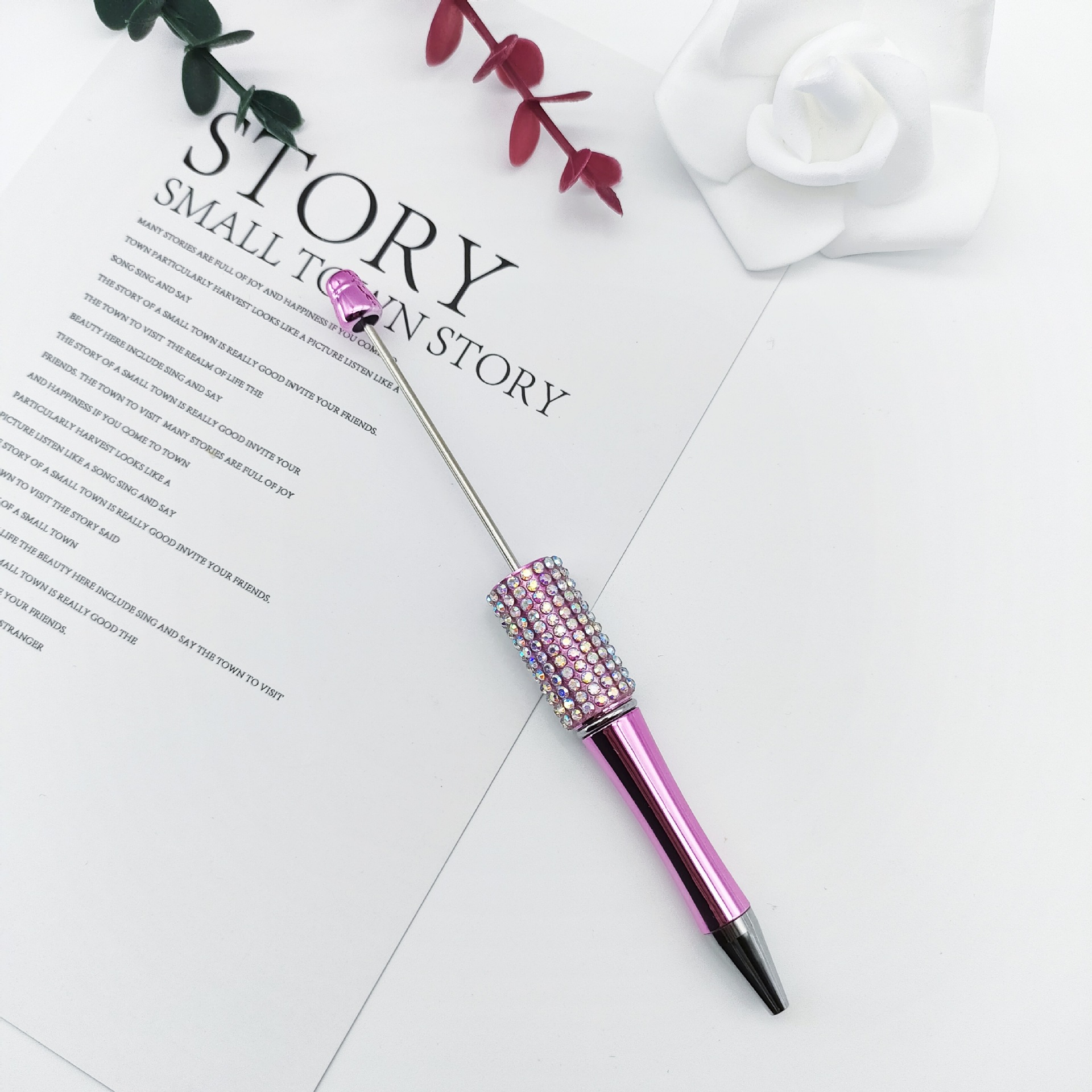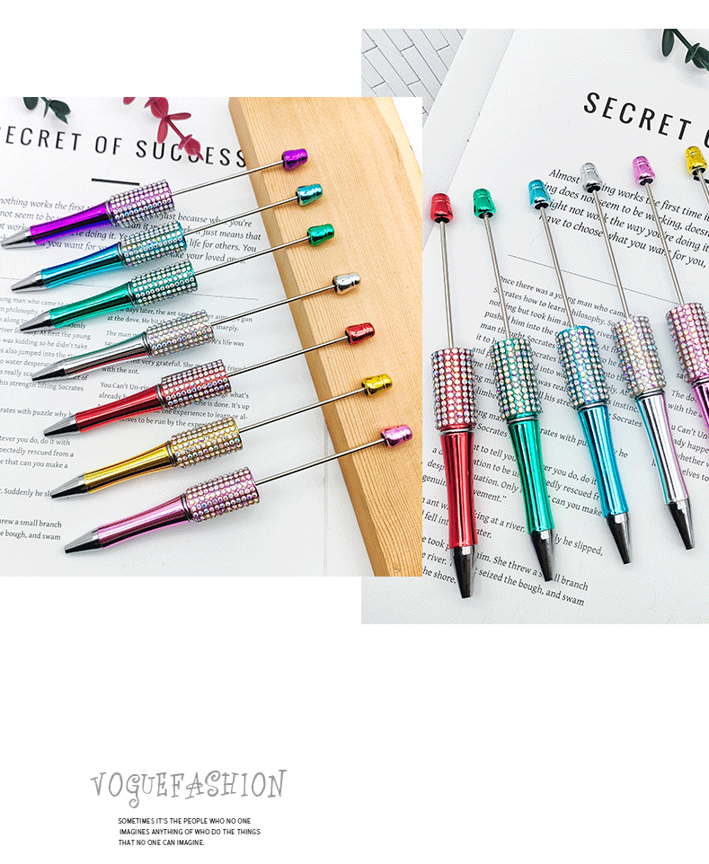 创新DIY钻石串珠笔 UV电镀彩钻串珠笔多色渐变多彩镶钻串珠圆珠笔