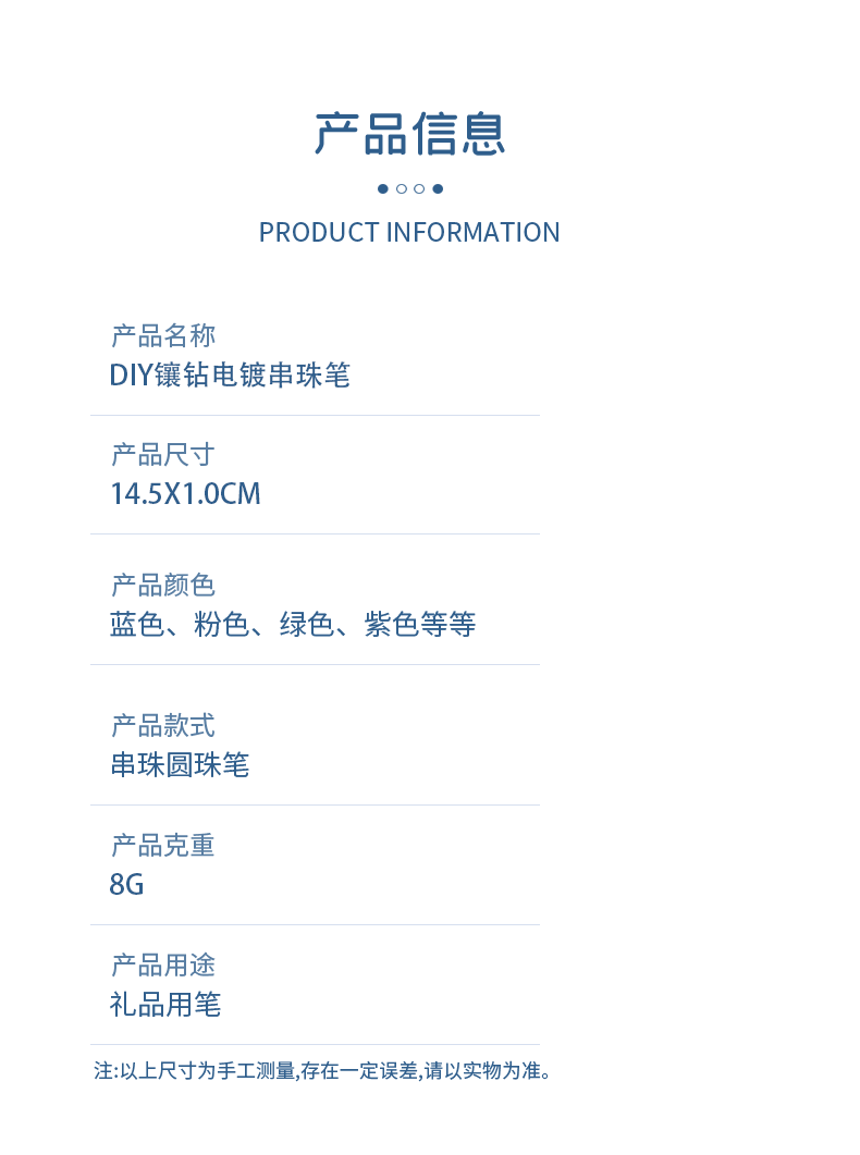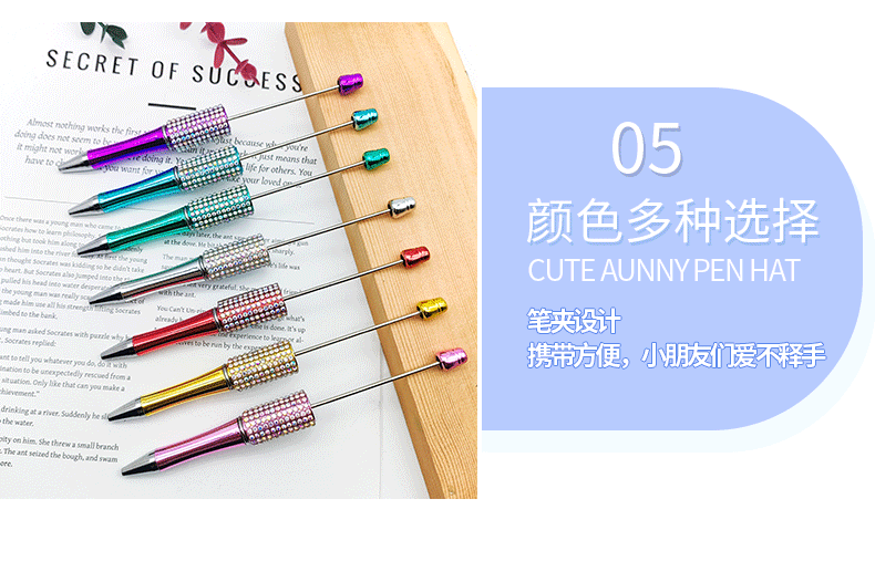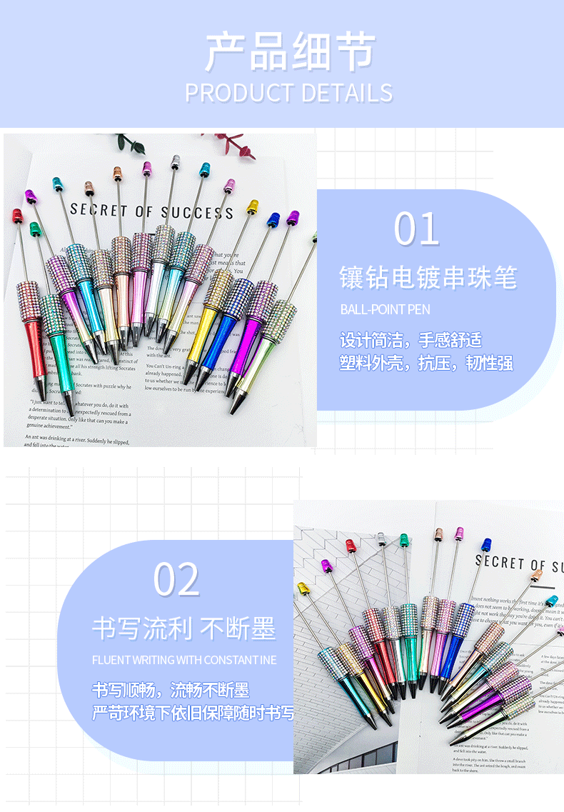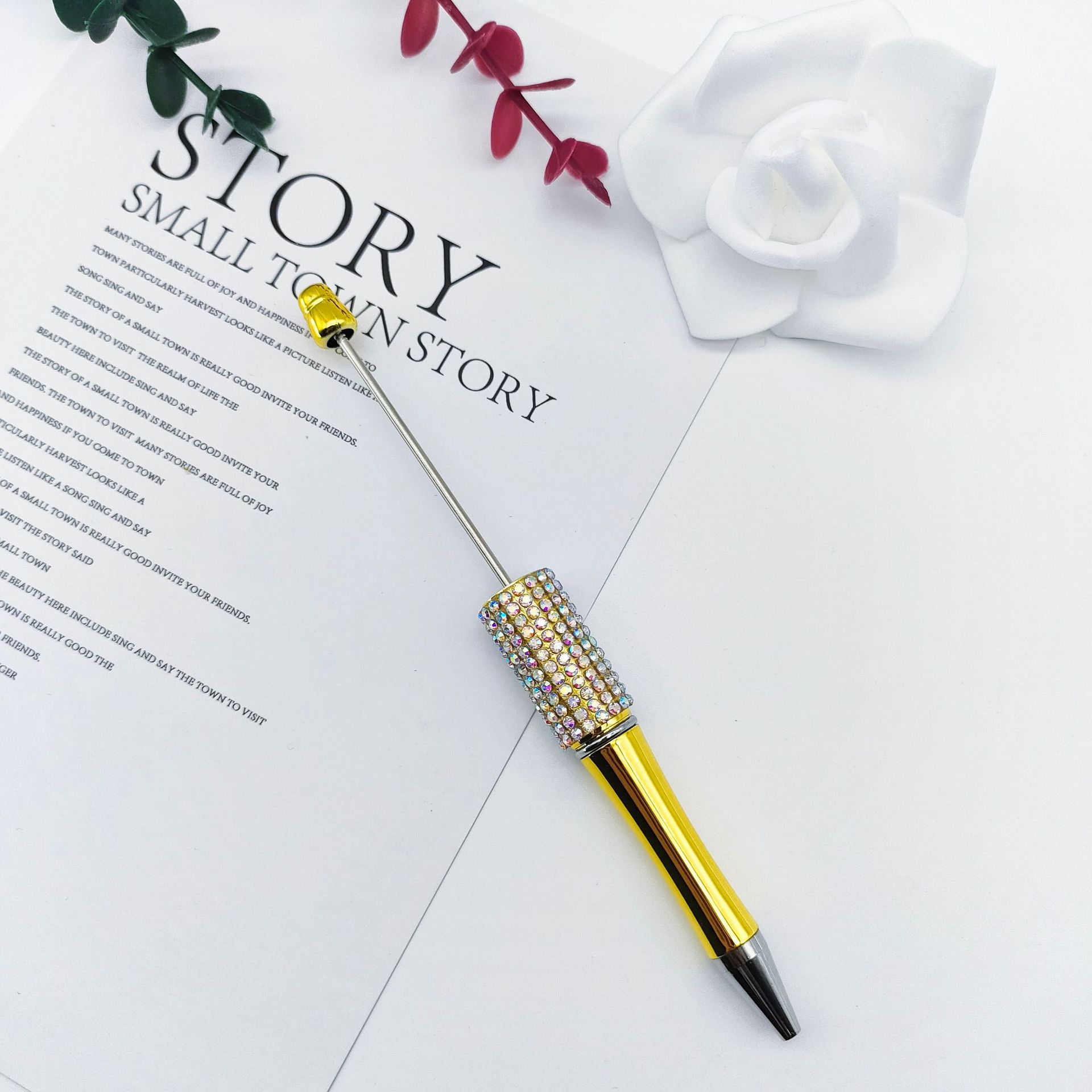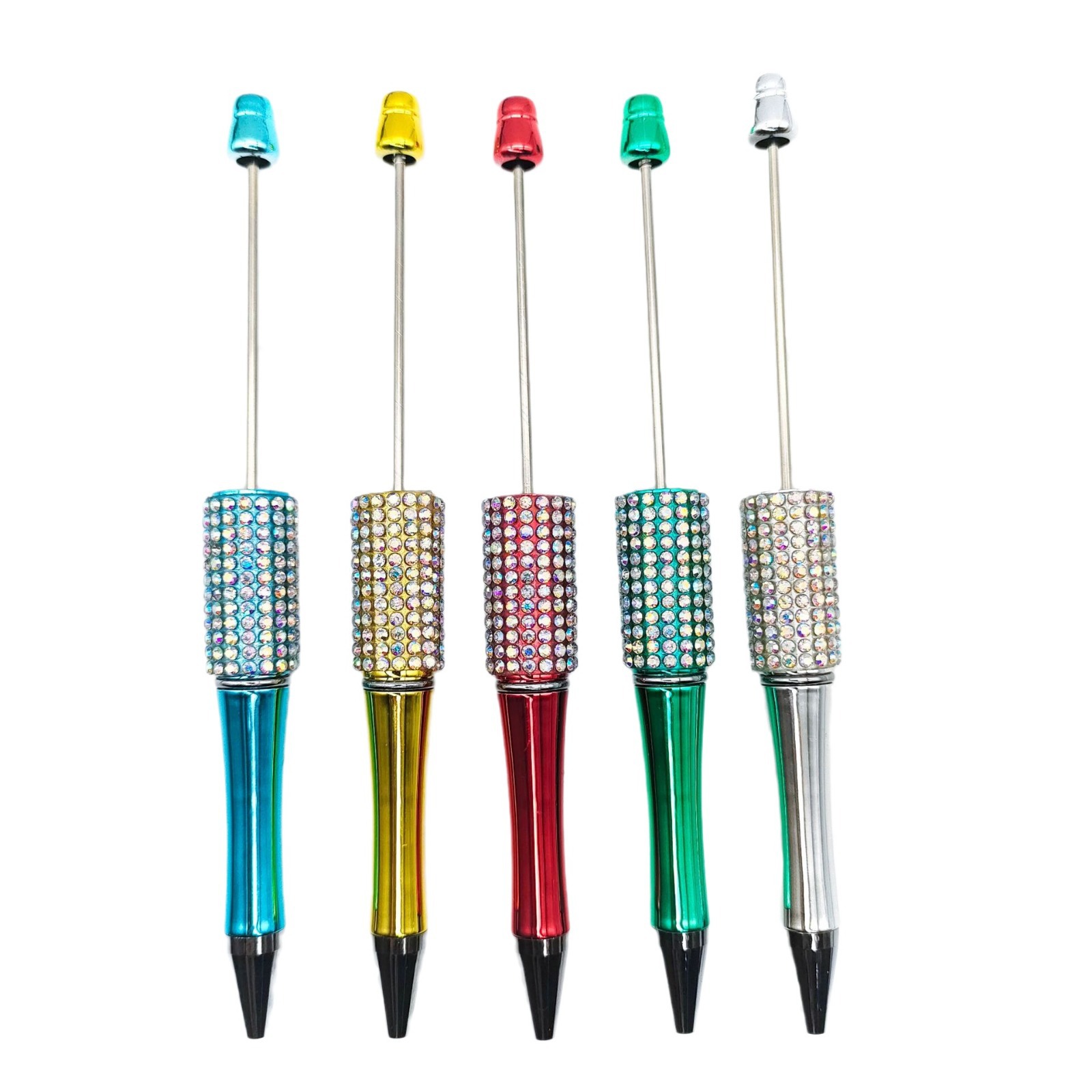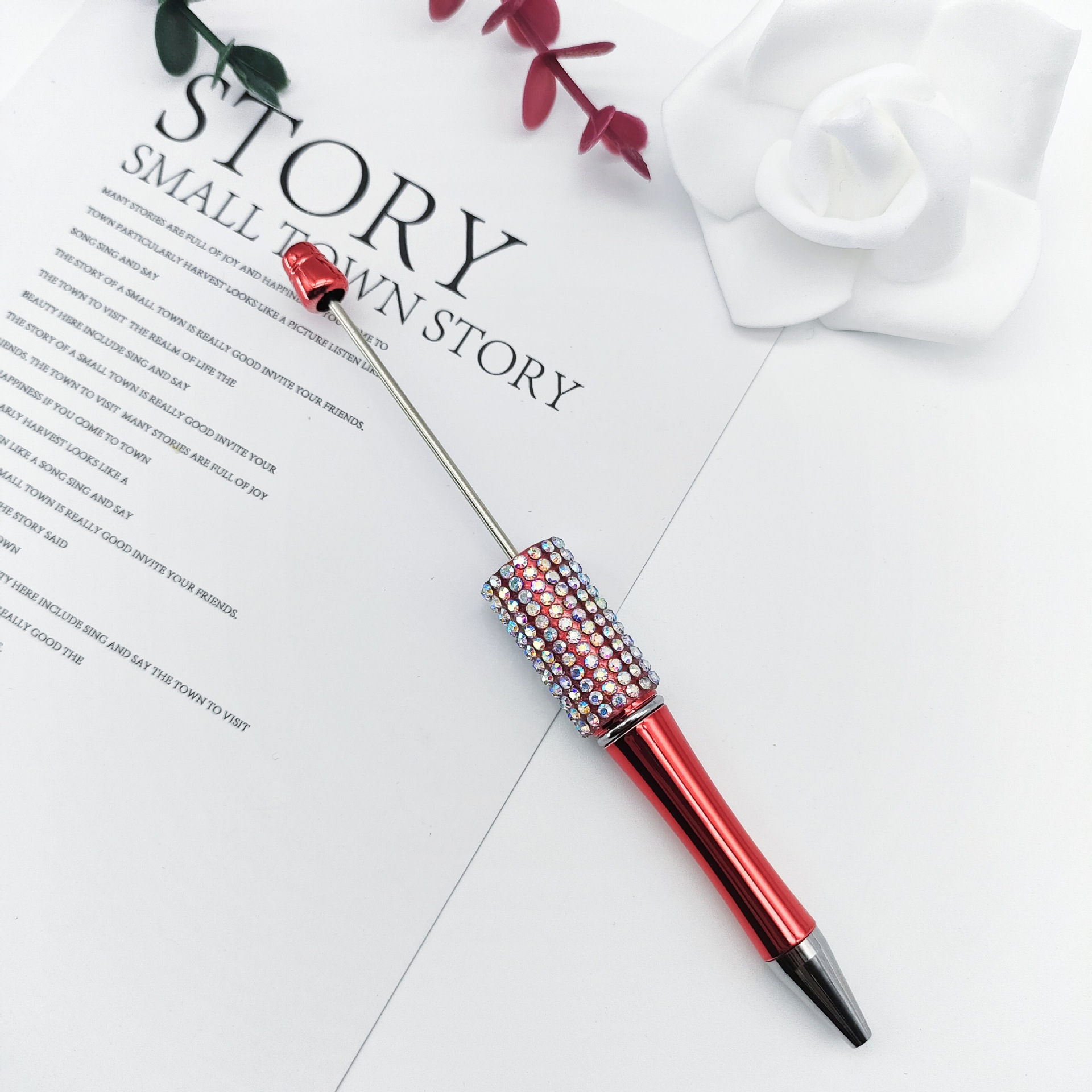 创新DIY钻石串珠笔 UV电镀彩钻串珠笔多色渐变多彩镶钻串珠圆珠笔