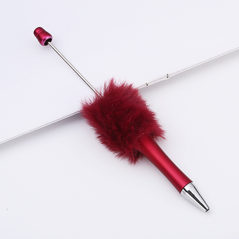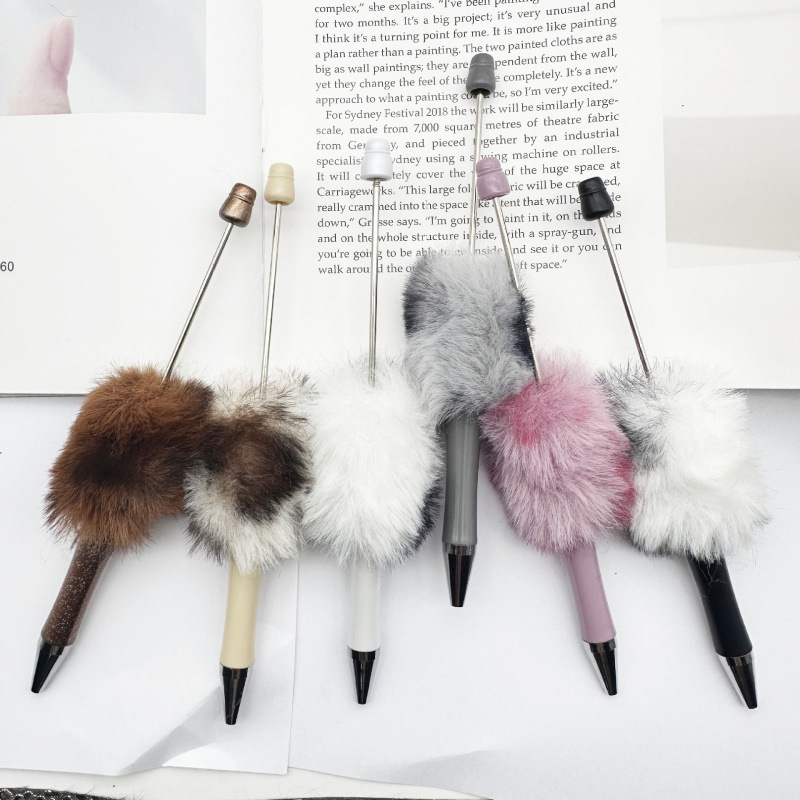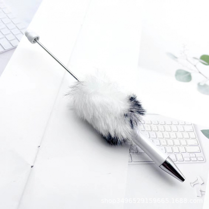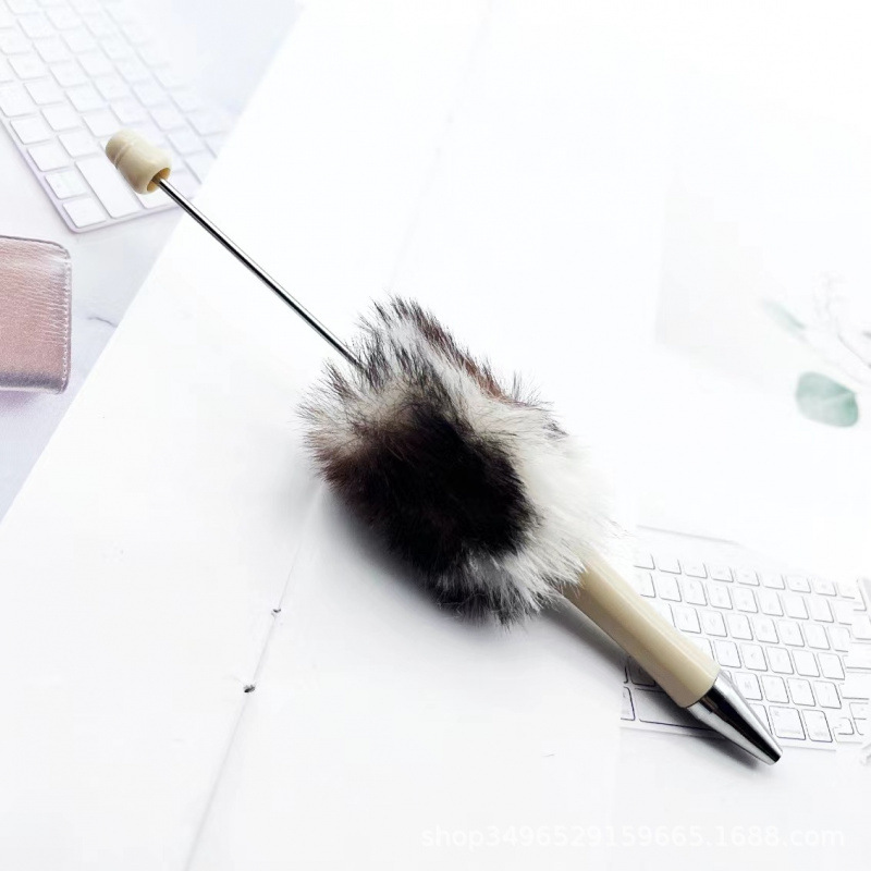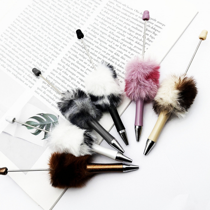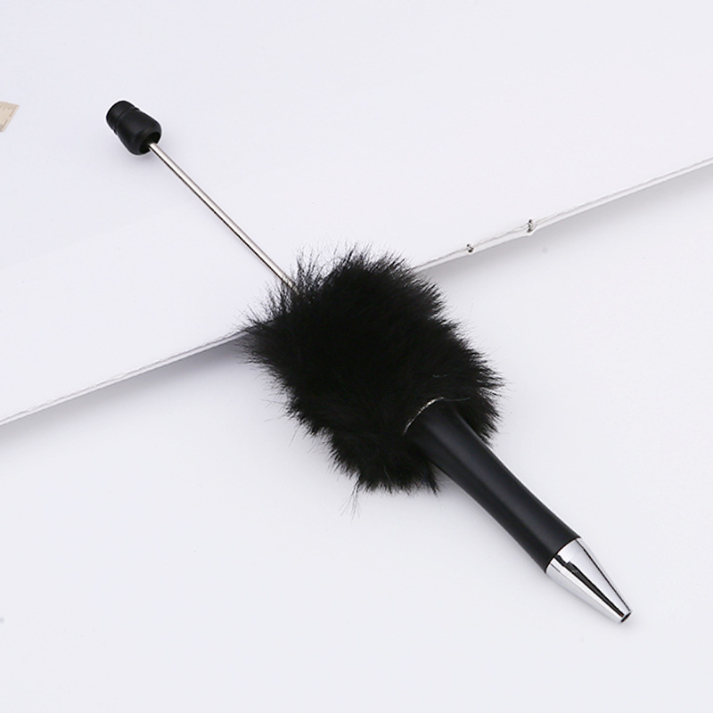 DIY毛绒串珠笔 高颜值毛茸茸礼品文具创意手工毛球圆珠笔现货批发