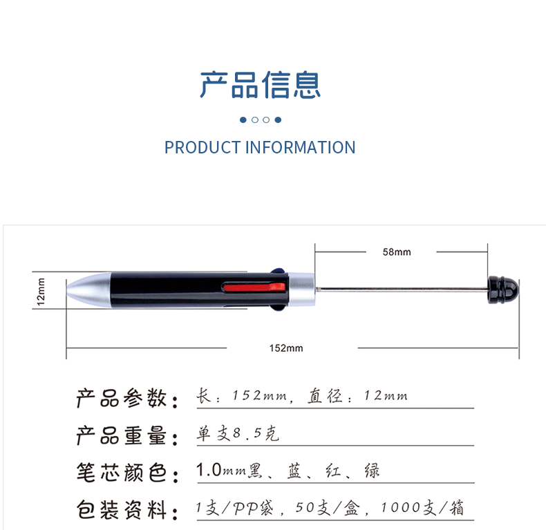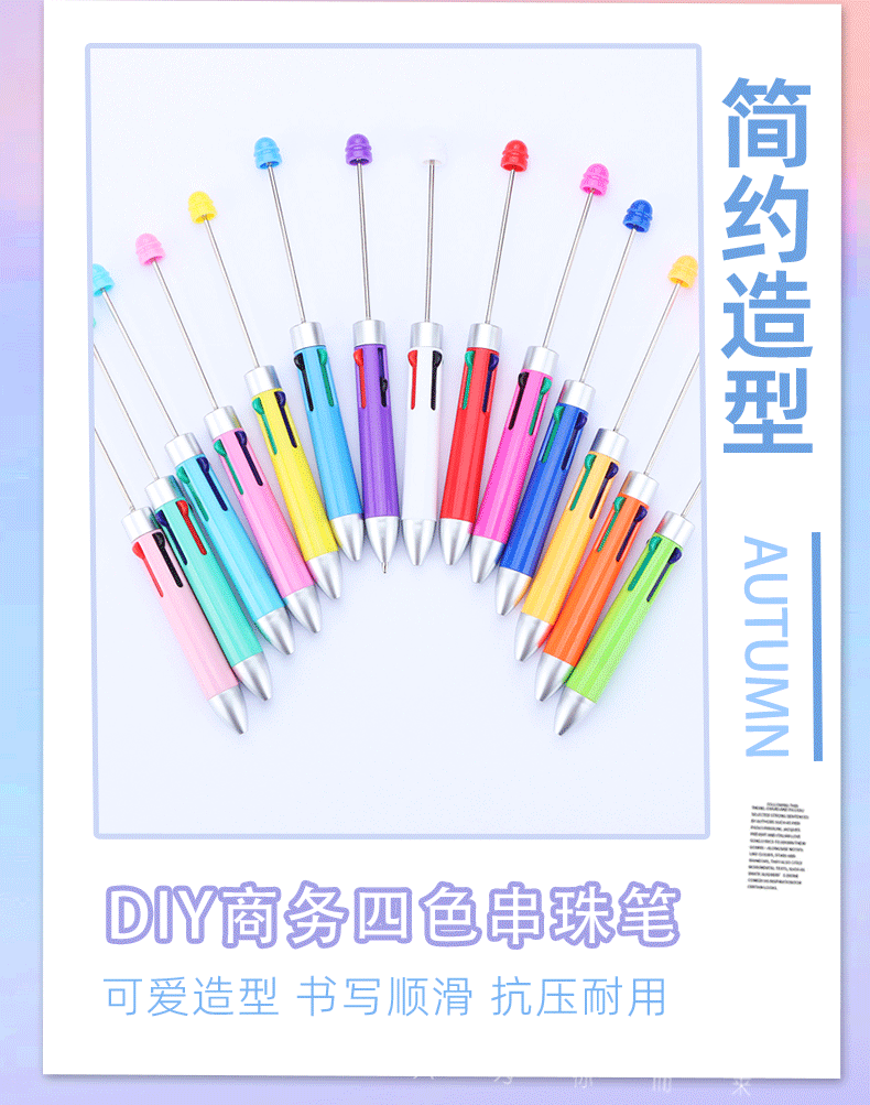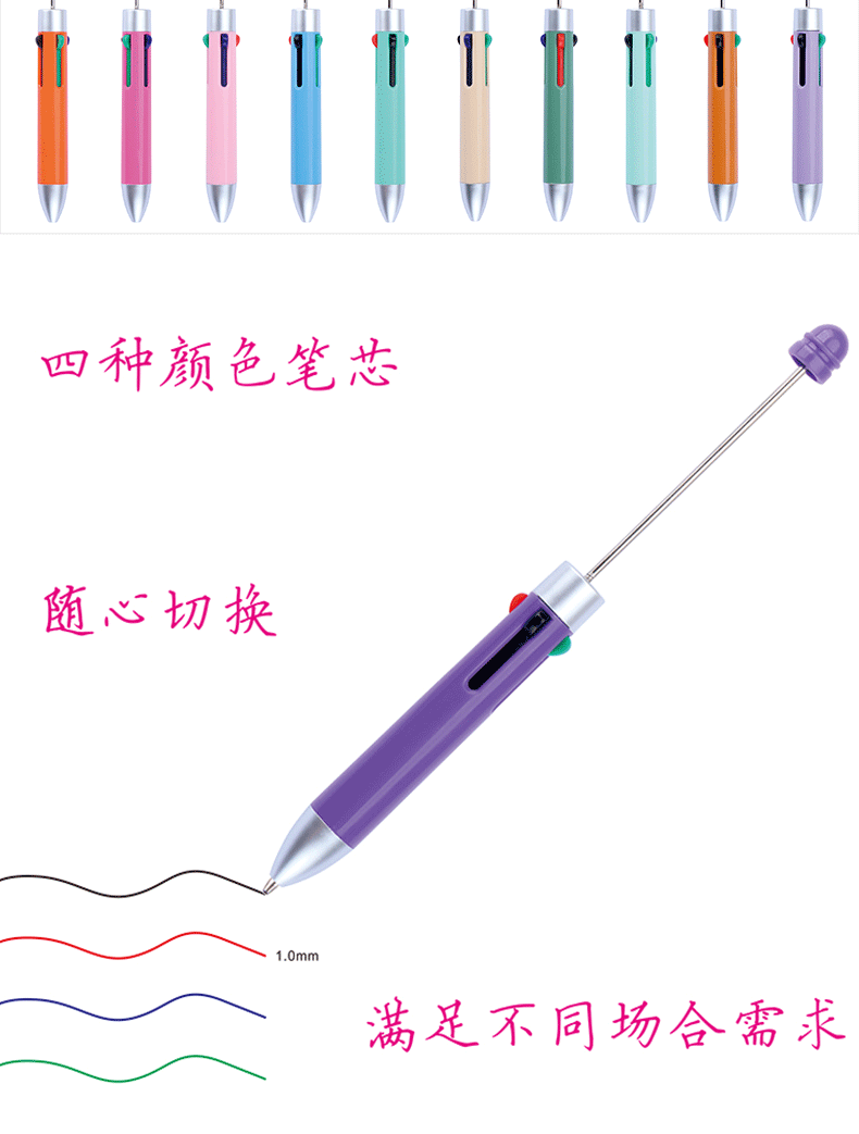 商务四色串珠笔 创意DIY多色手工圆珠笔迷你多色商务串珠笔可LOGO