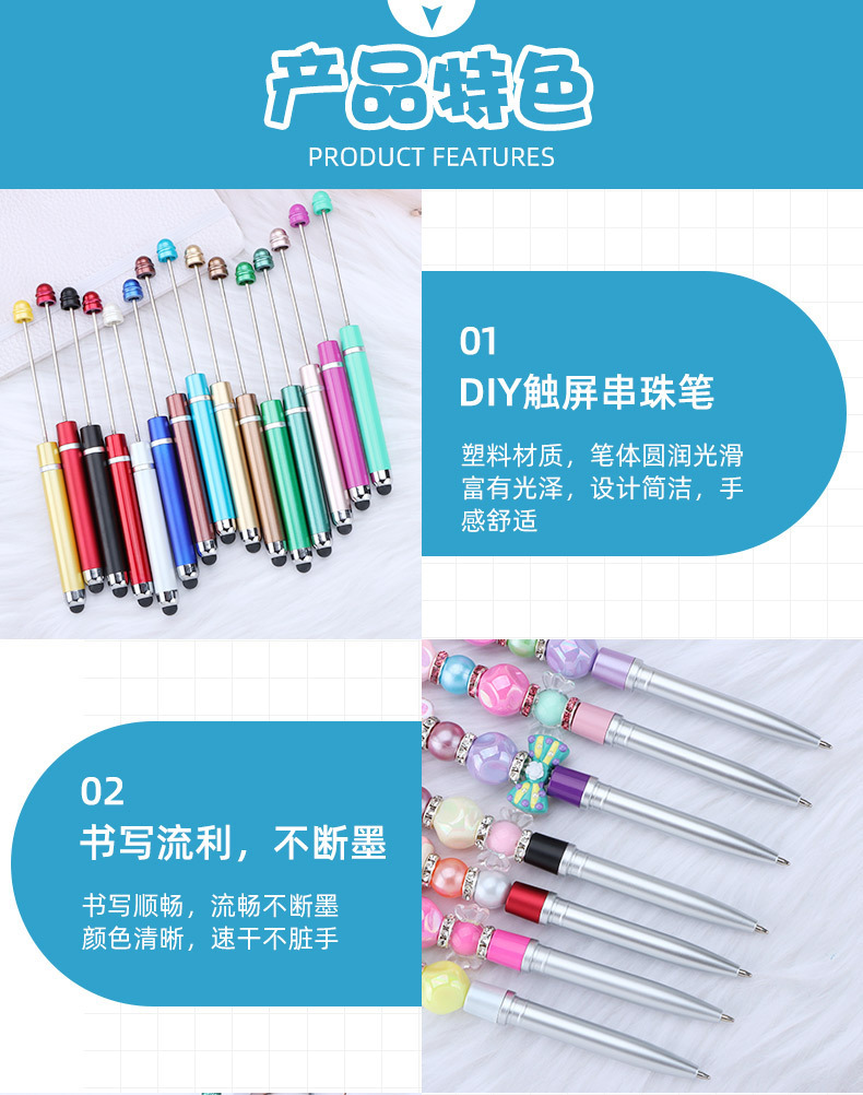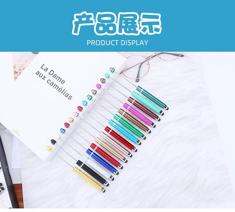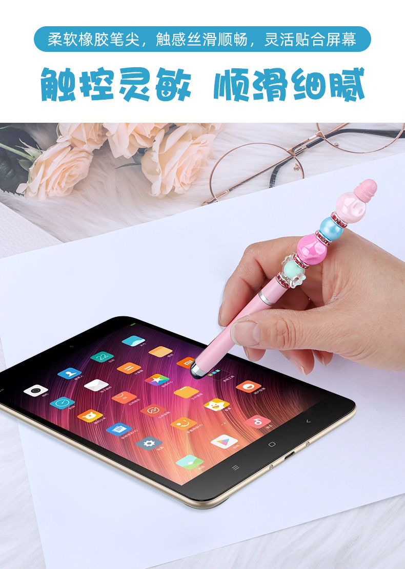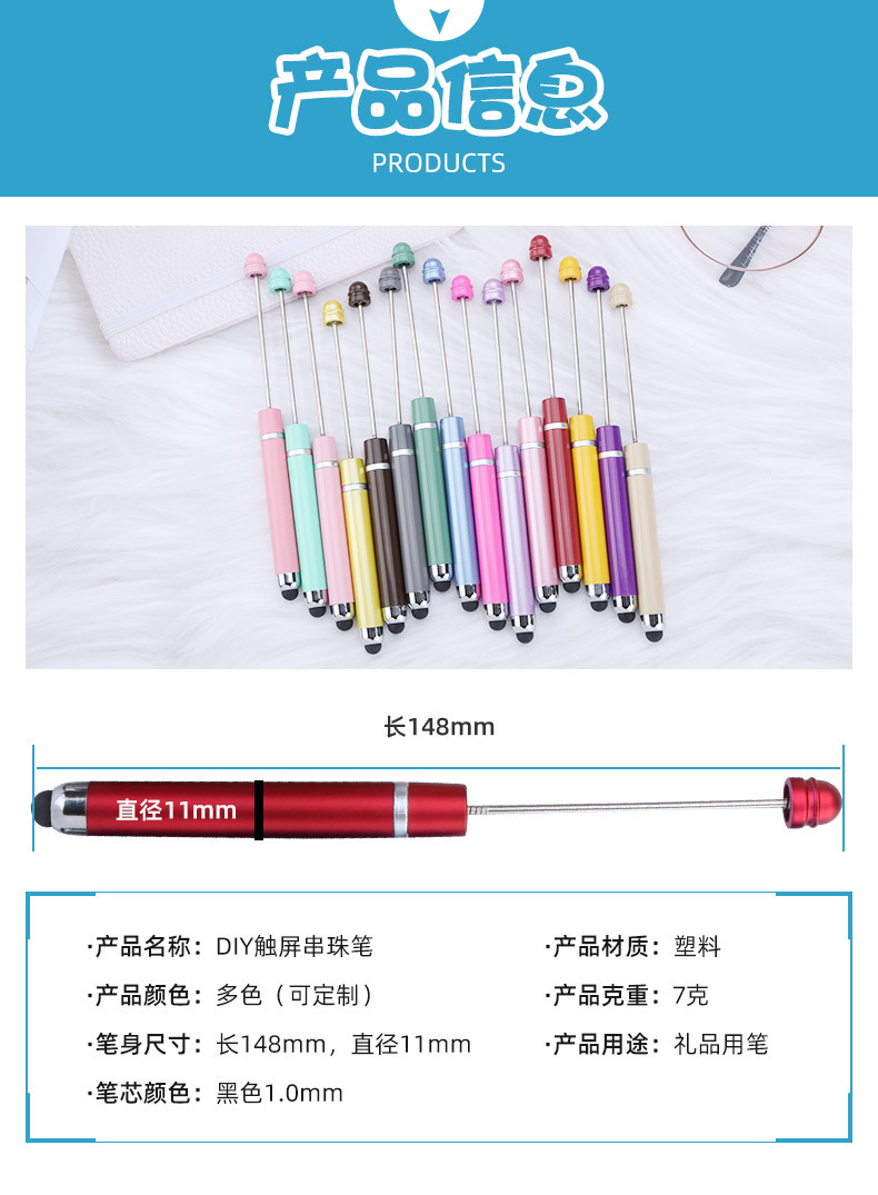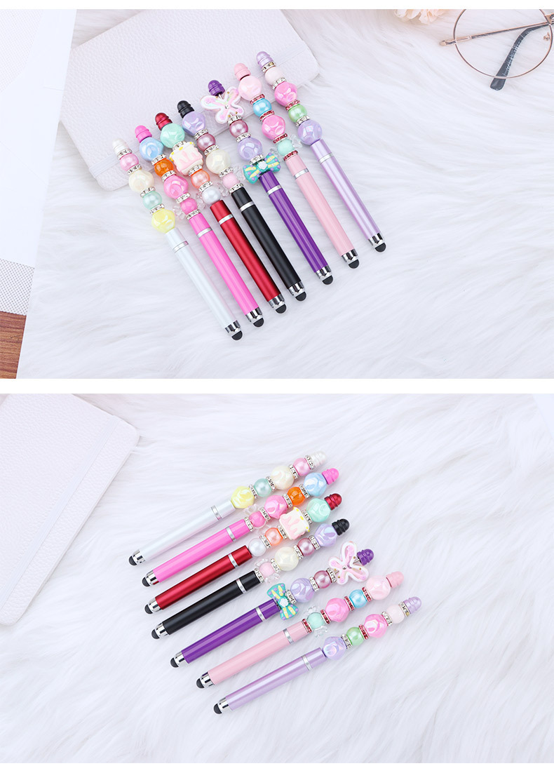 多色触控触屏串珠笔趣味马卡龙色手机平板触屏书写二合一多功能笔