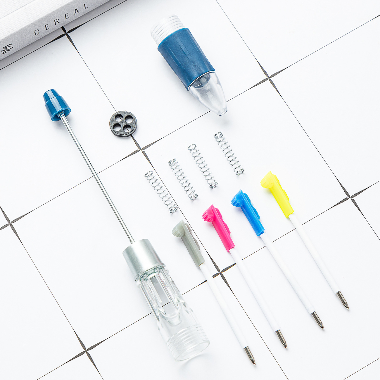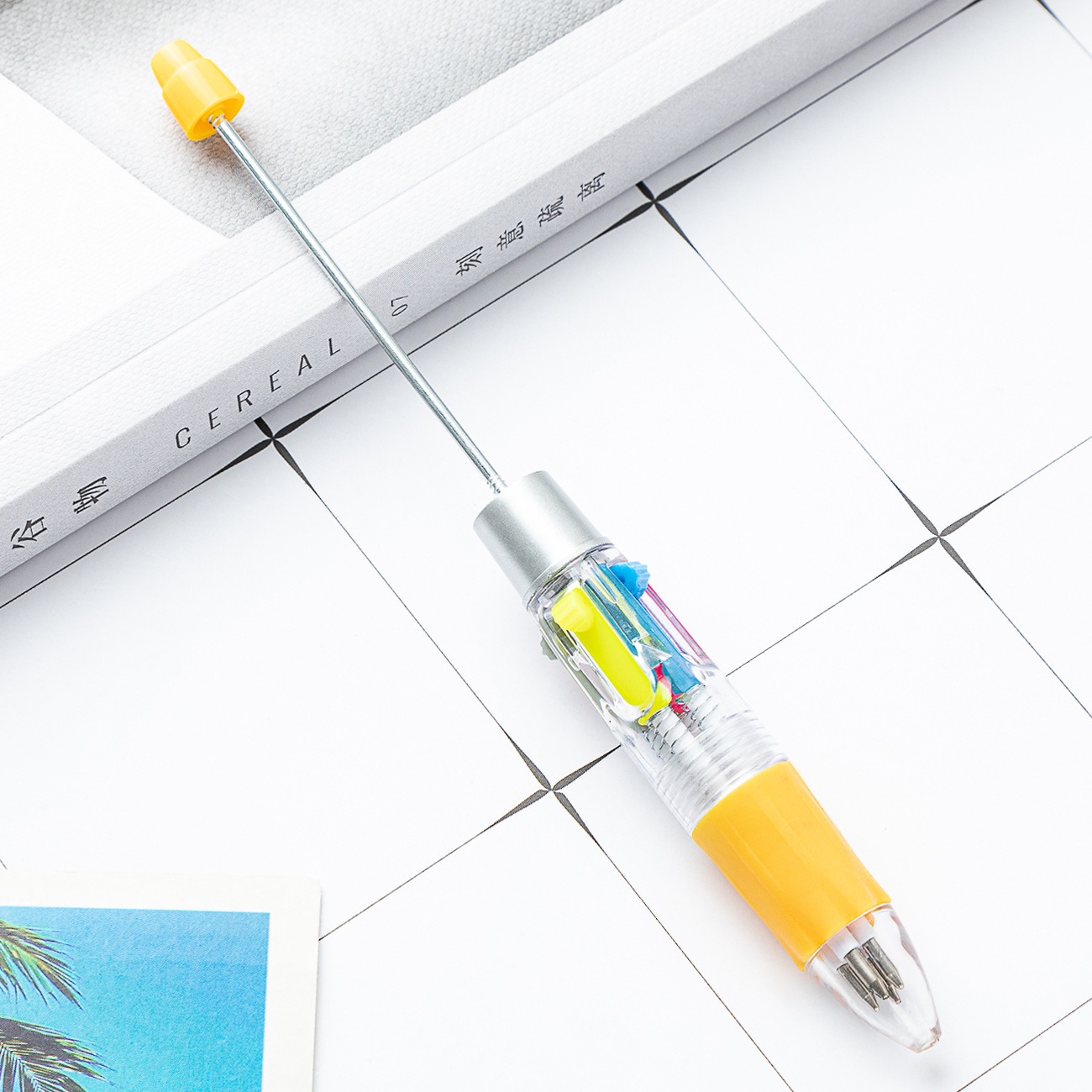 DIY串珠四色圆珠笔可爱学生多色串珠笔划重点划线标记按动塑料笔