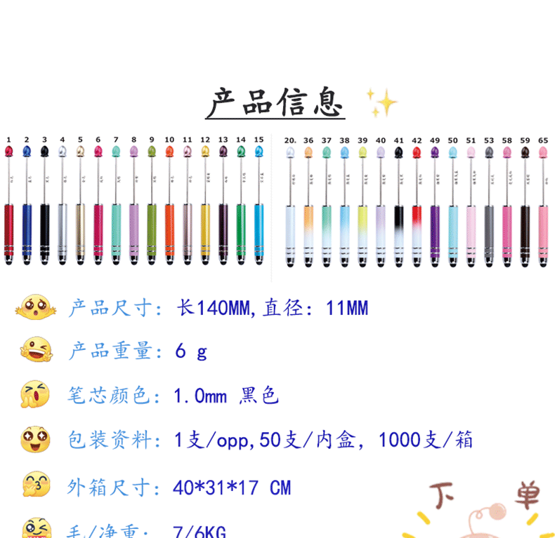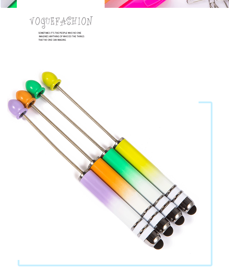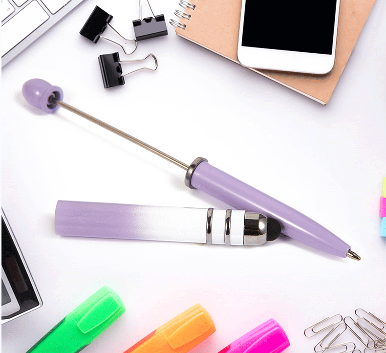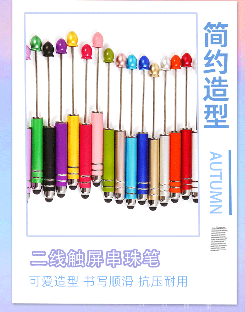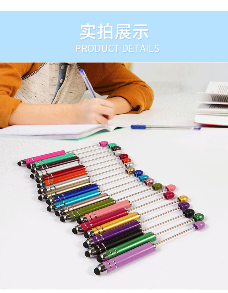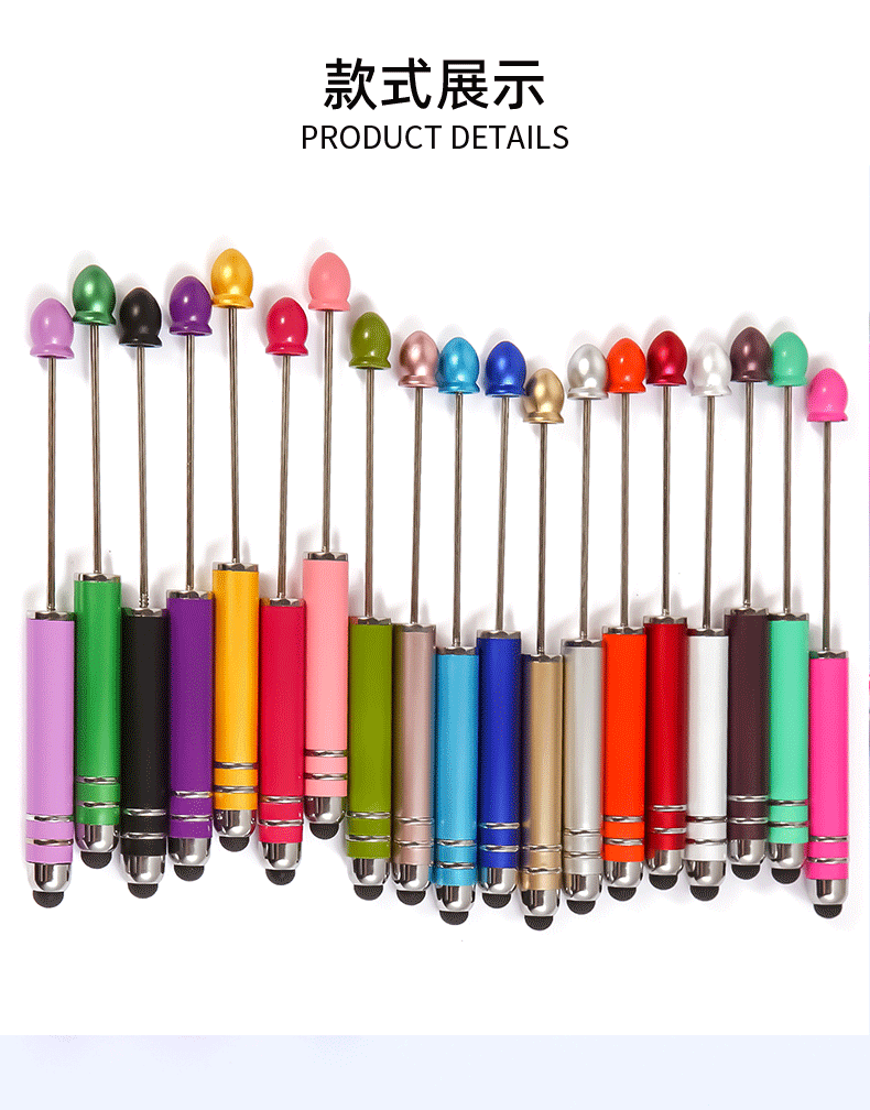 DIY触屏串珠笔 创意可爱益智多色圆珠笔商务串珠礼品文具现货批发