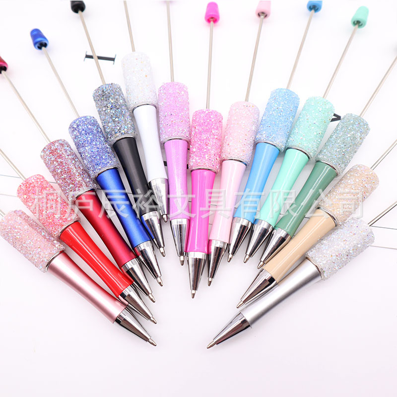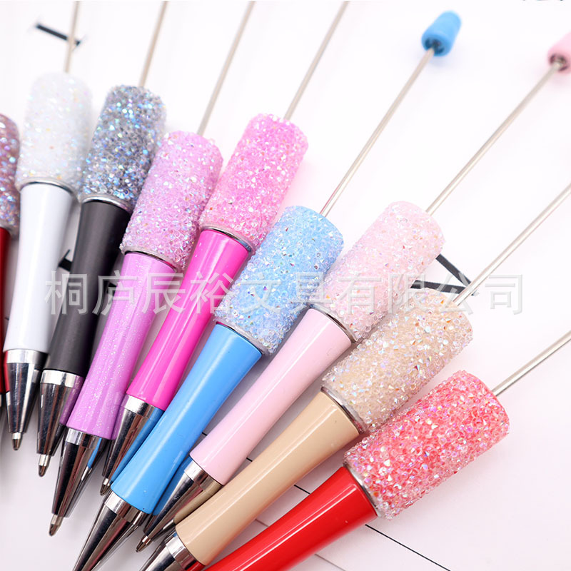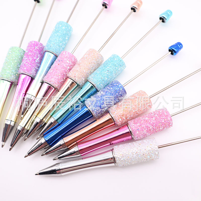跨境新款DIY满天星砂糖钻串珠笔高颜值手工贴DIY砂糖钻礼品圆珠笔