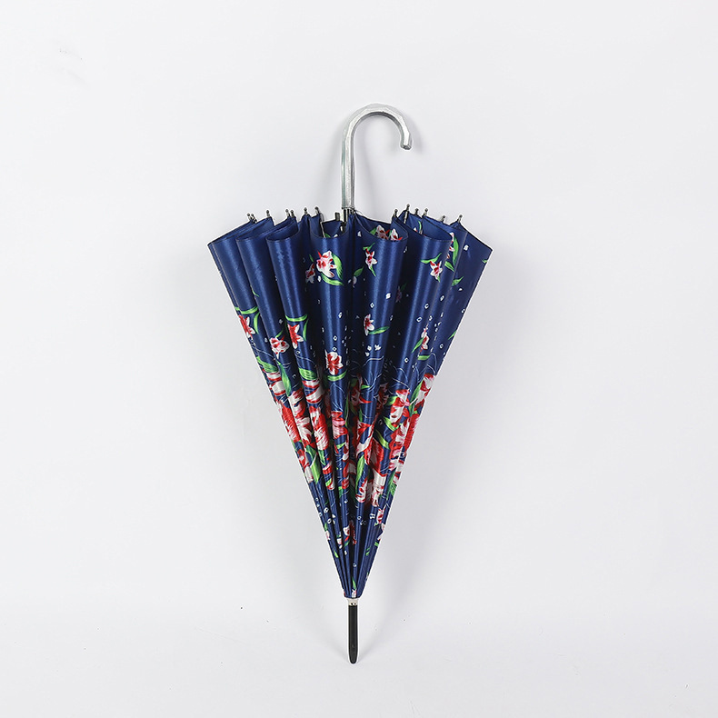 厂家现货批发16骨色丁外贸雨伞自动直杆伞花色绸缎性价比高长柄伞