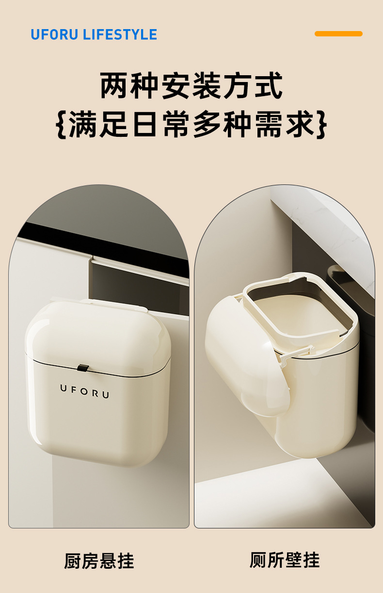 垃圾桶家用高级感大号免打孔轻奢可爱风厨房卫生间夹缝壁挂垃圾桶