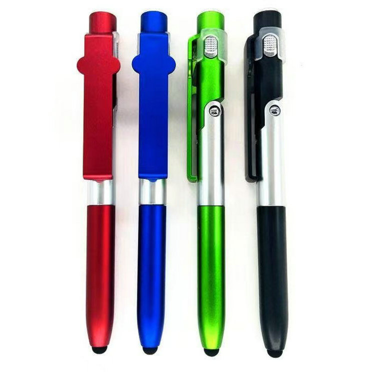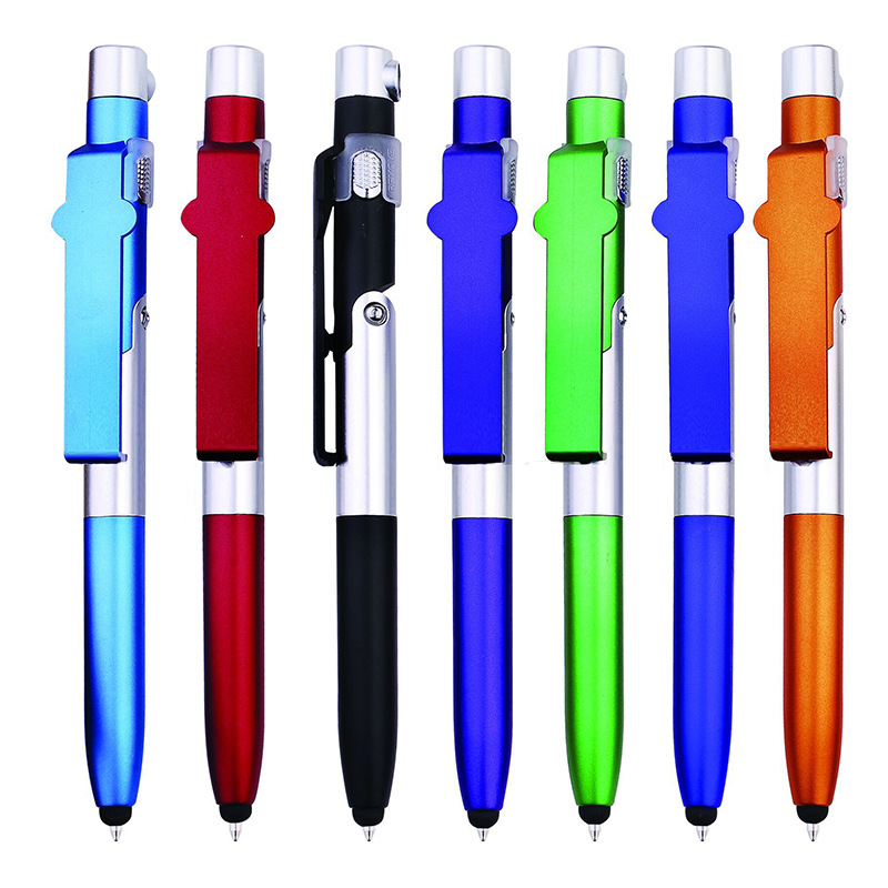 新款折叠扭动LED灯笔 多功能触控电容触屏笔 照明发光手机支架笔