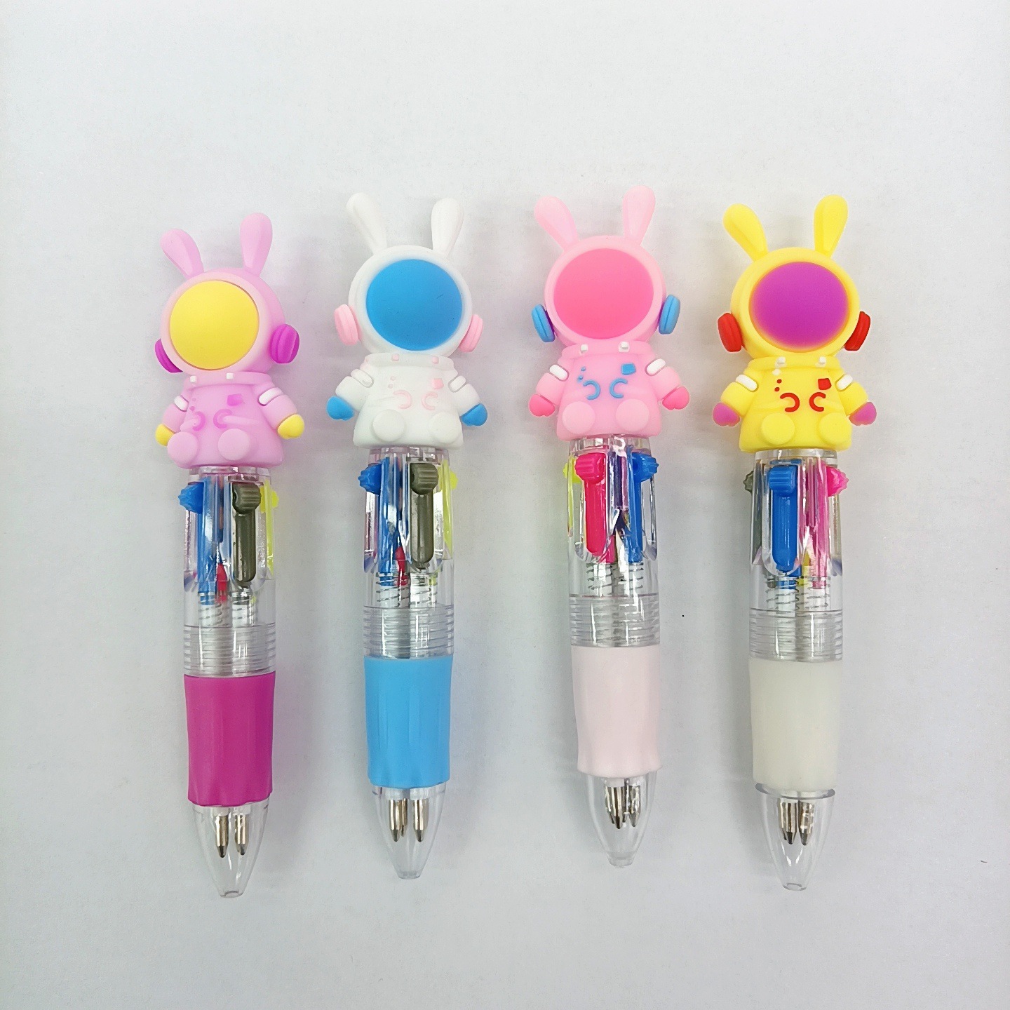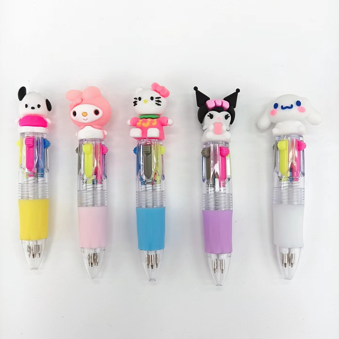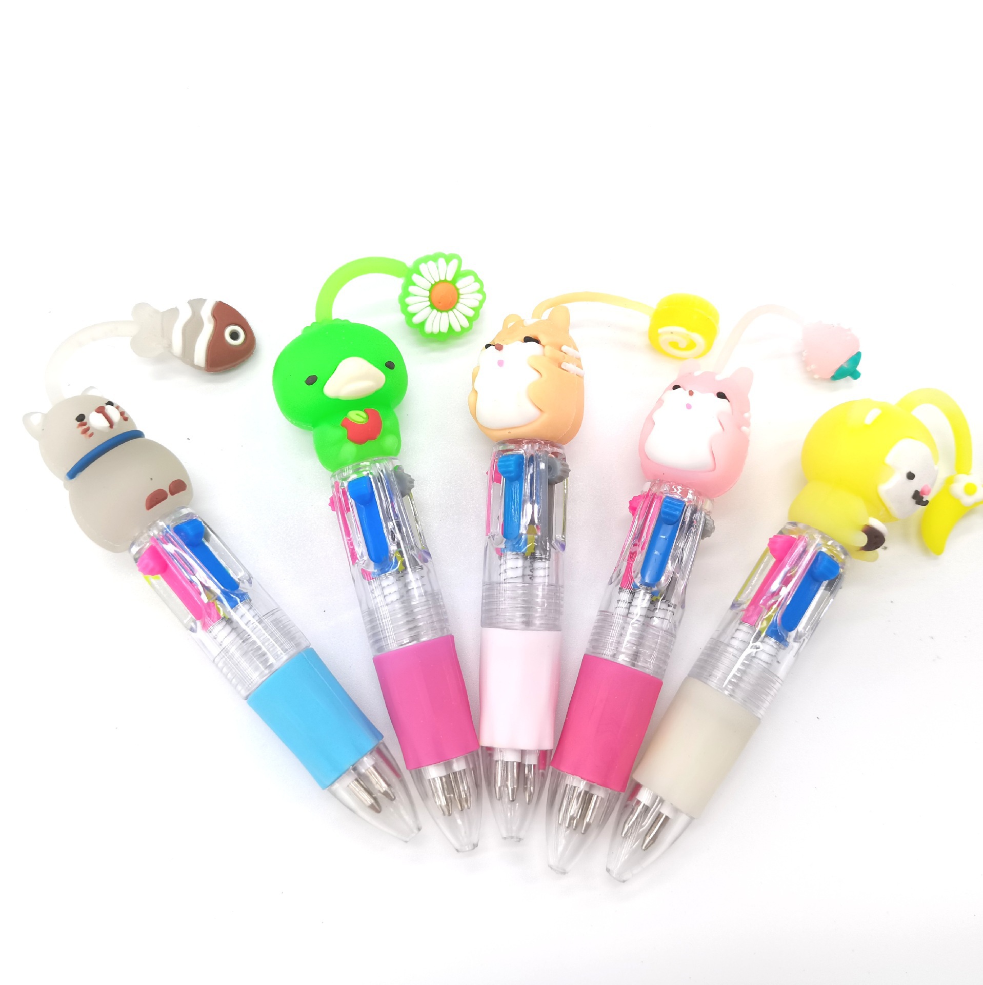 厂家批发外贸四色按动圆珠笔硅胶超多款卡通头便携学生手账多色笔