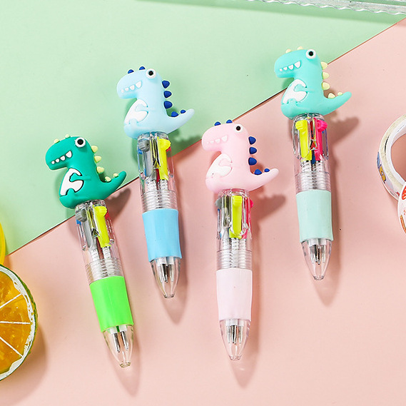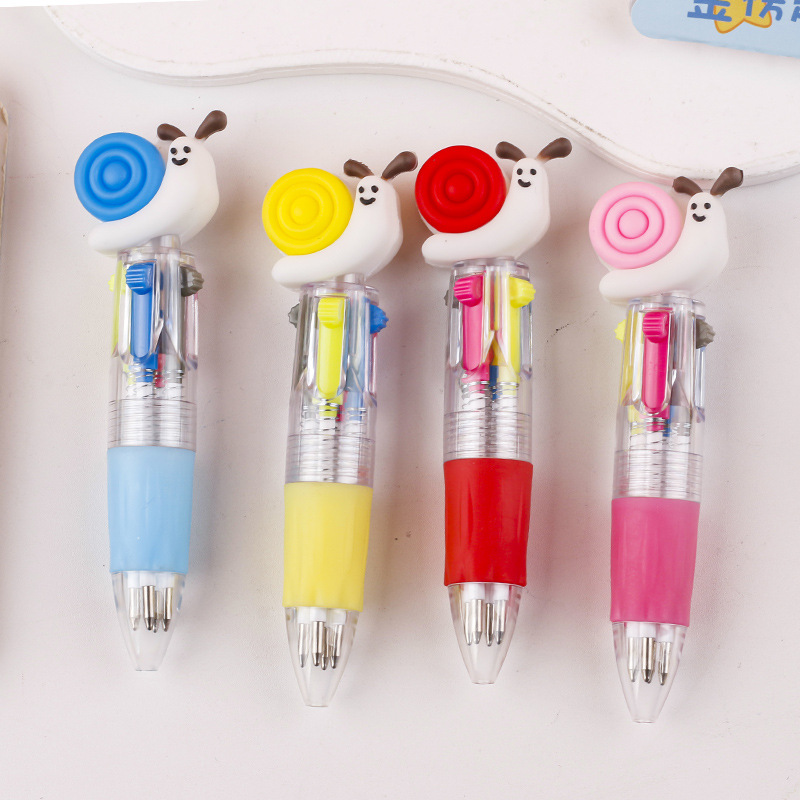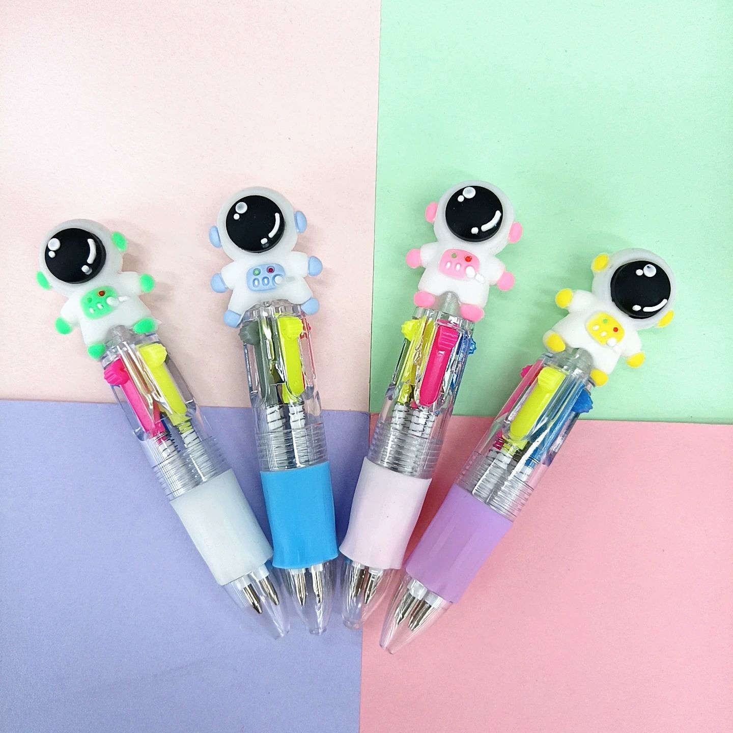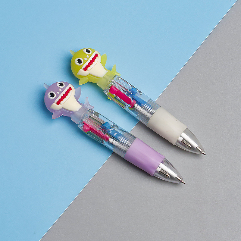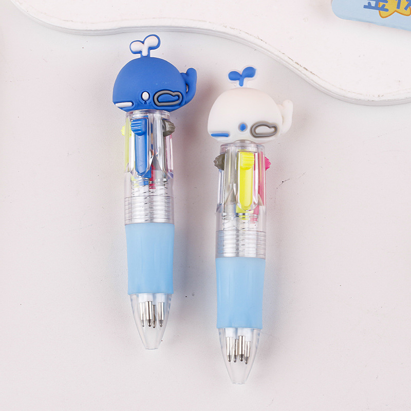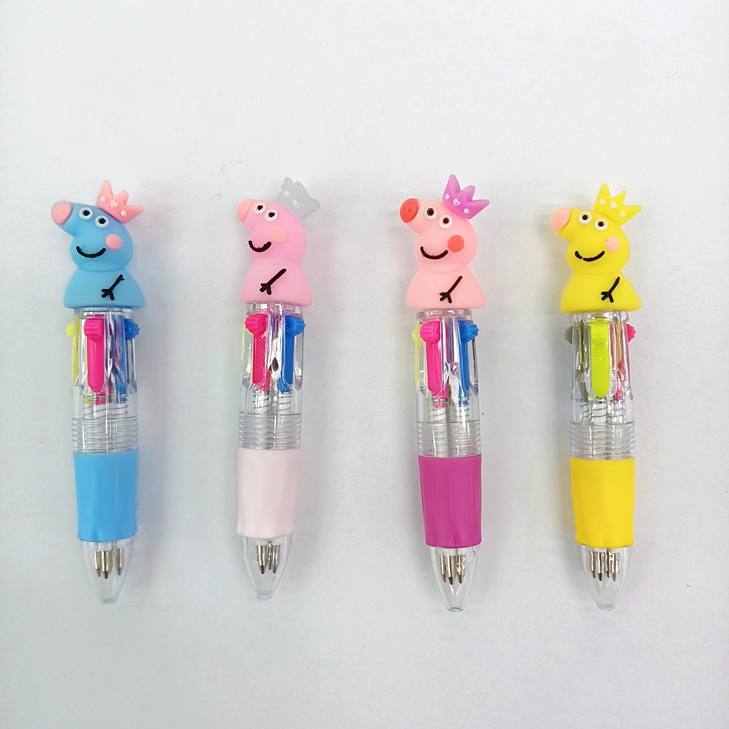 厂家批发外贸四色按动圆珠笔硅胶超多款卡通头便携学生手账多色笔