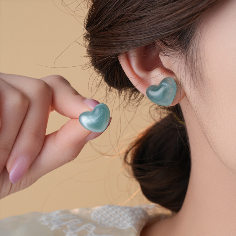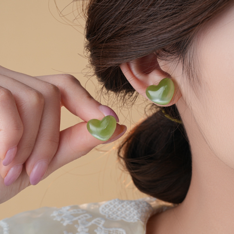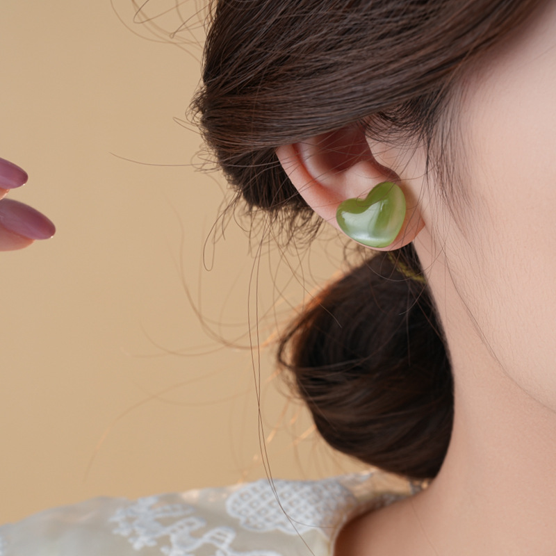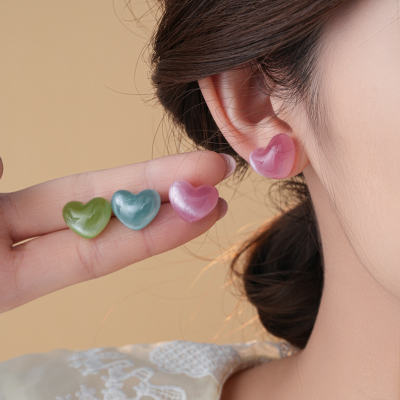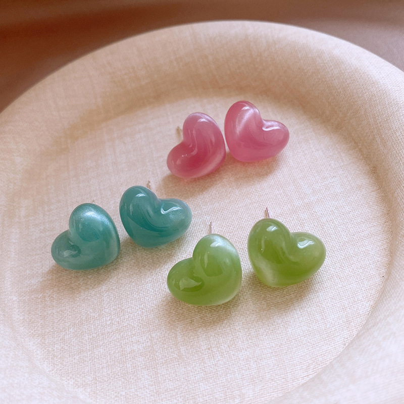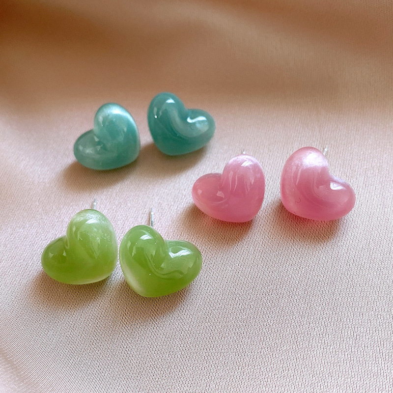 银针甜美亚克力晕染爱心耳钉时尚新款小清新耳环轻奢高级感耳饰女