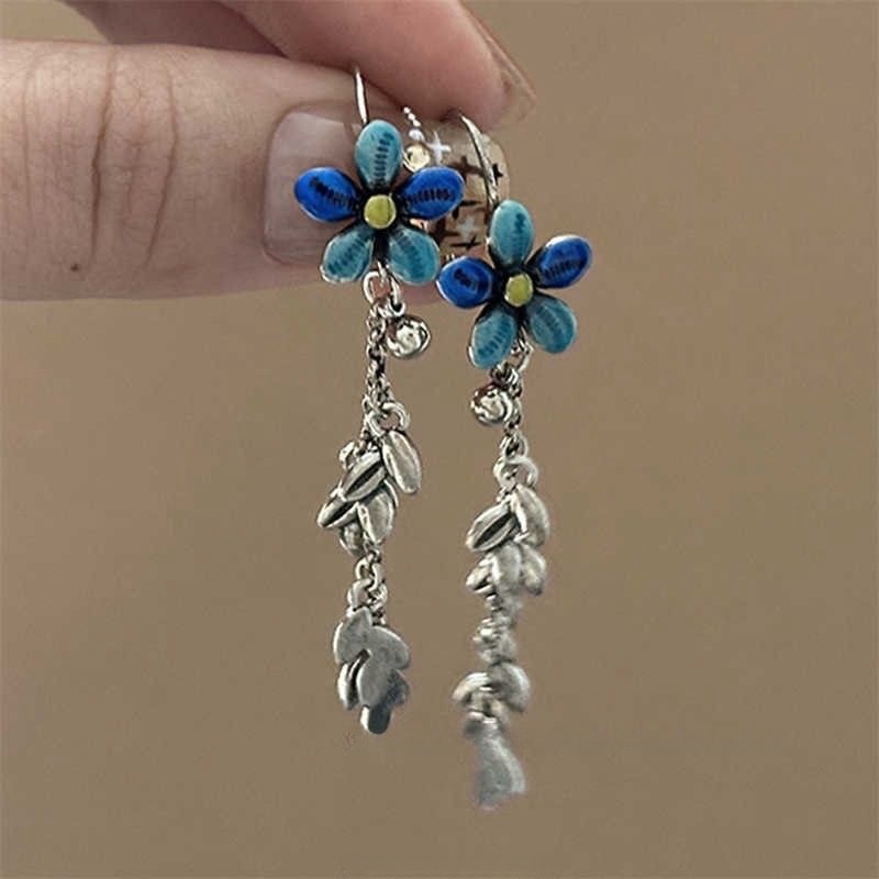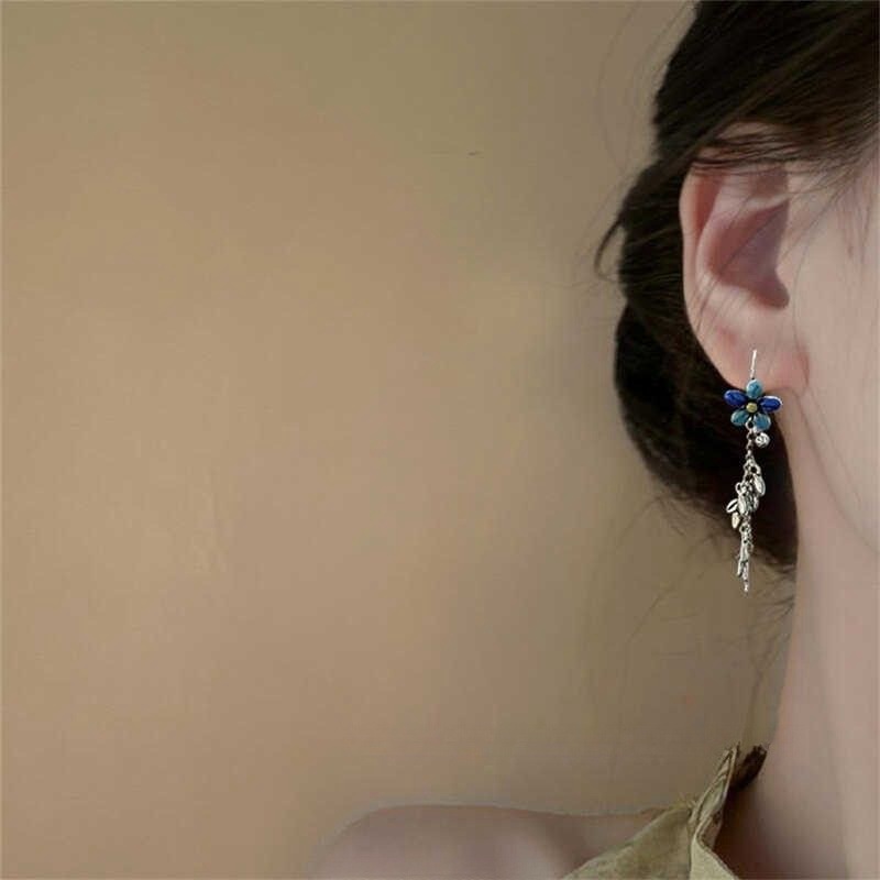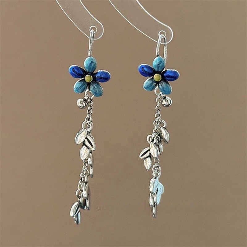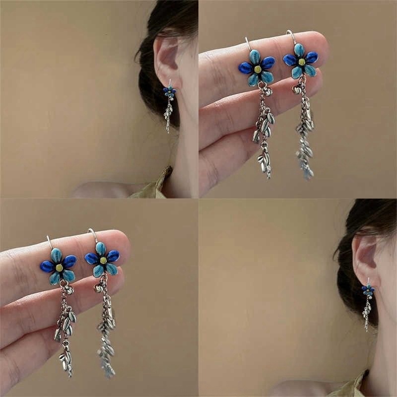 跨境滴油花朵树叶流苏耳环时尚气质通勤百搭耳坠轻奢高级感耳饰女