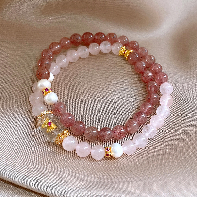 黄水晶草莓晶花朵流苏水晶手链轻奢复古气质手串新中式高级感手饰