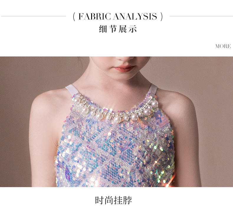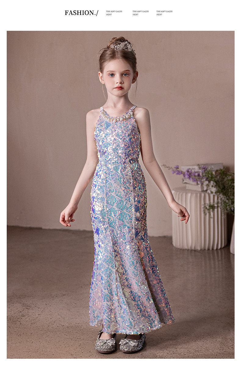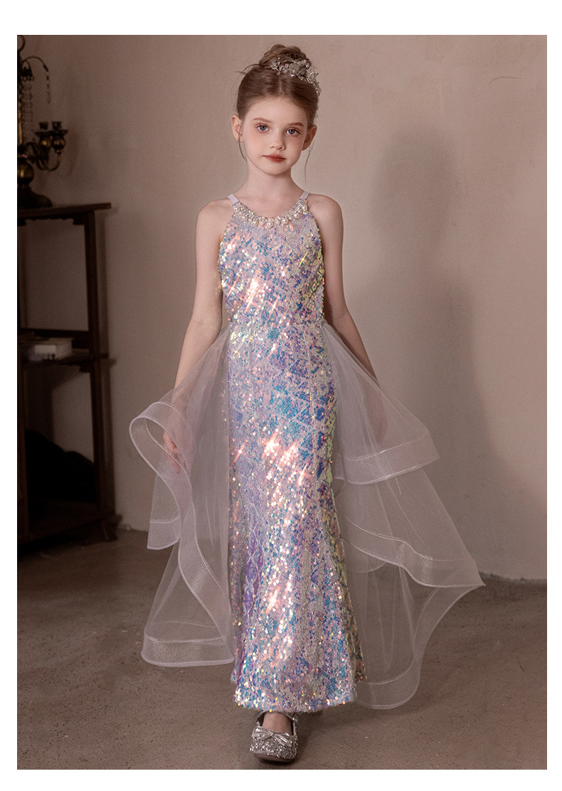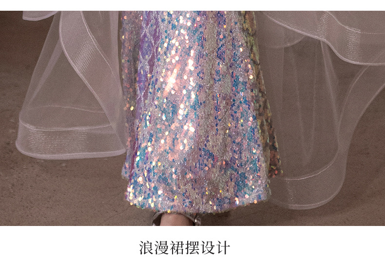 儿童礼服主持人亮片生日女童鱼尾公主裙模特走秀钢琴演出服高级感