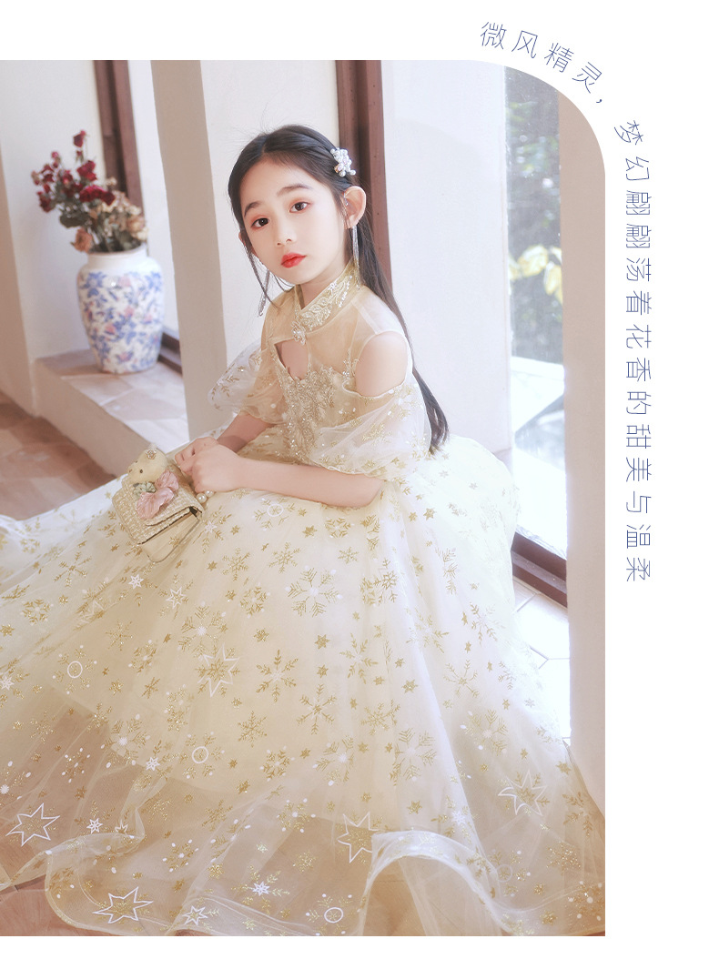 女童礼服花童公主裙2025春走秀儿童主持人钢琴演出服小女孩蓬蓬纱