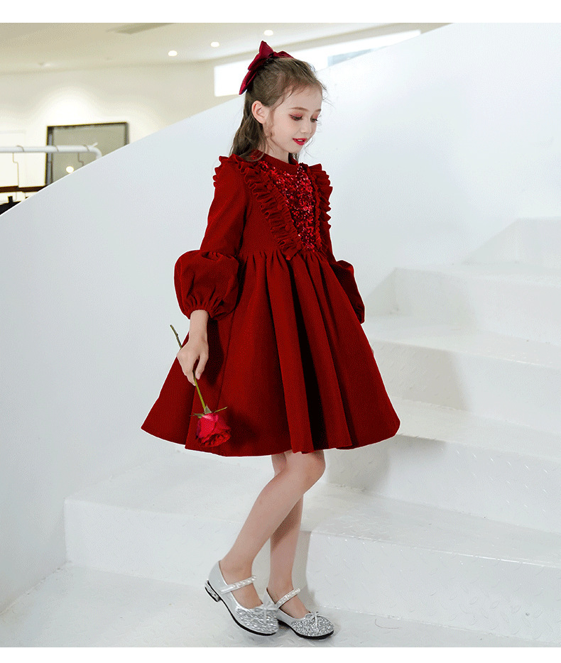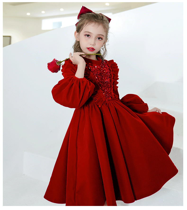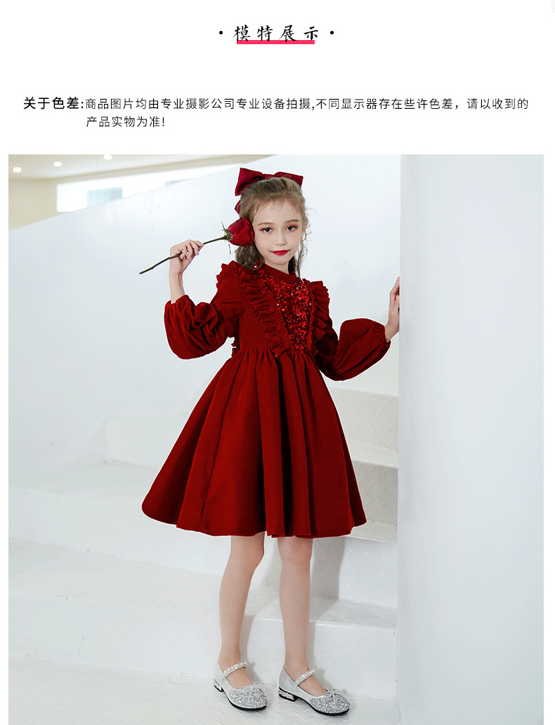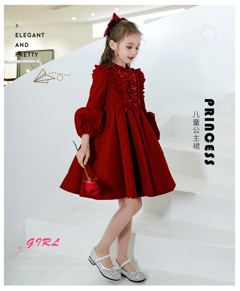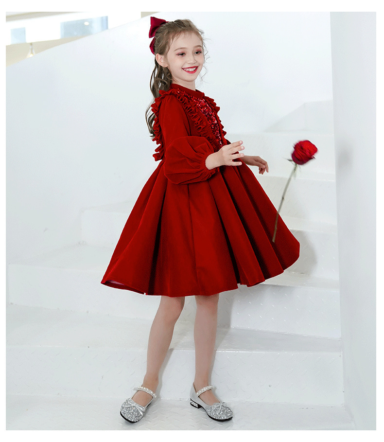 儿童礼服公主裙女童钢琴演奏演出服花童小主持人新年晚礼服红色春