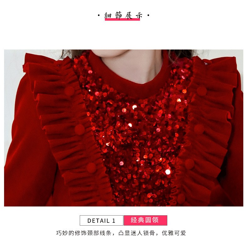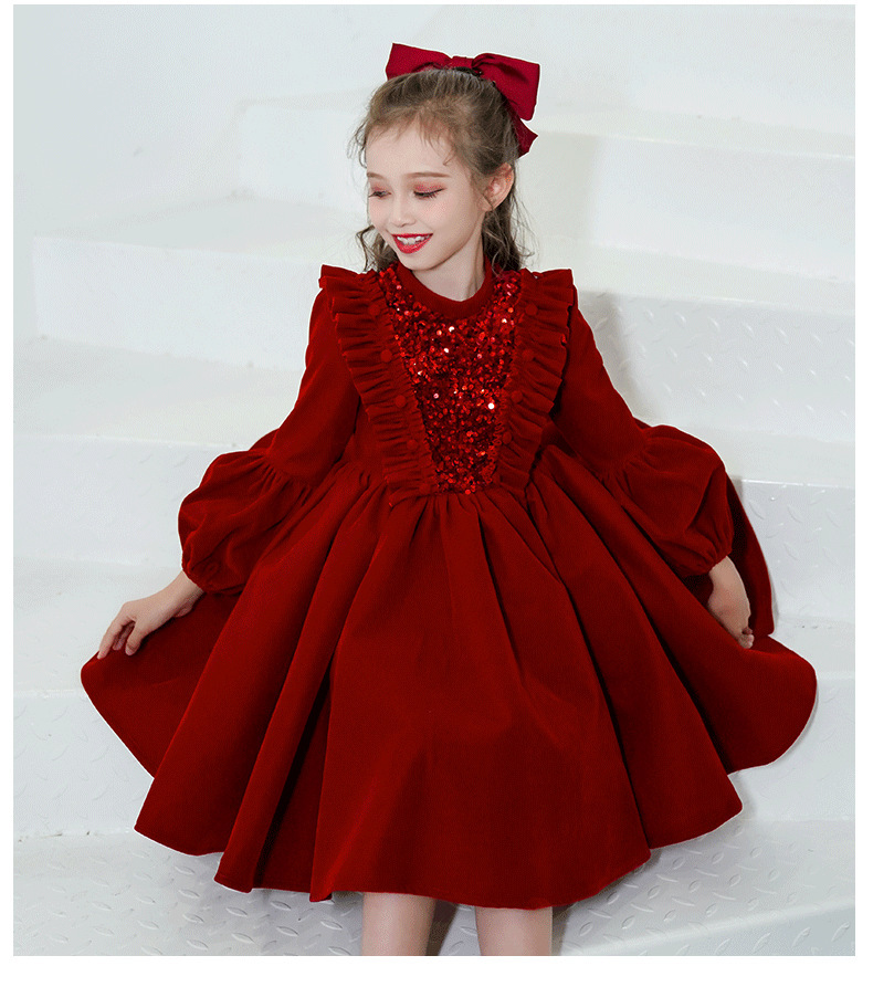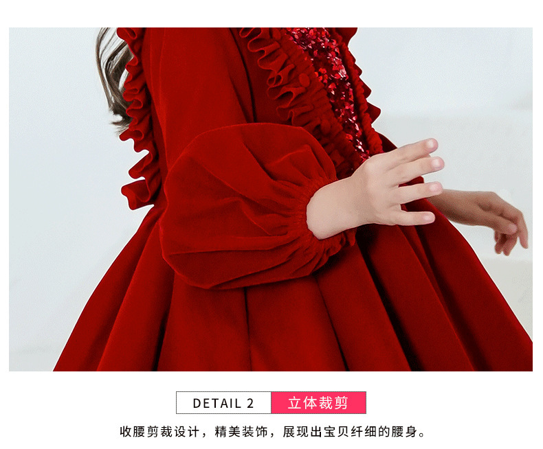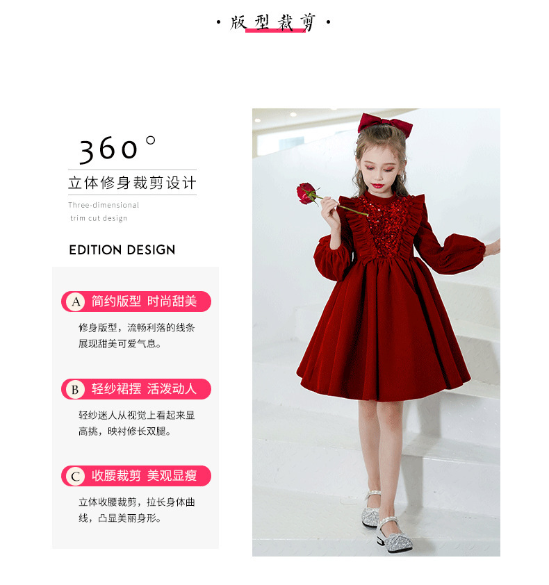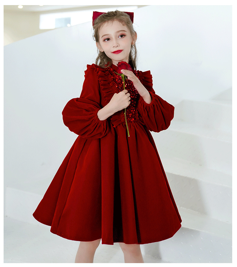 儿童礼服公主裙女童钢琴演奏演出服花童小主持人新年晚礼服红色春